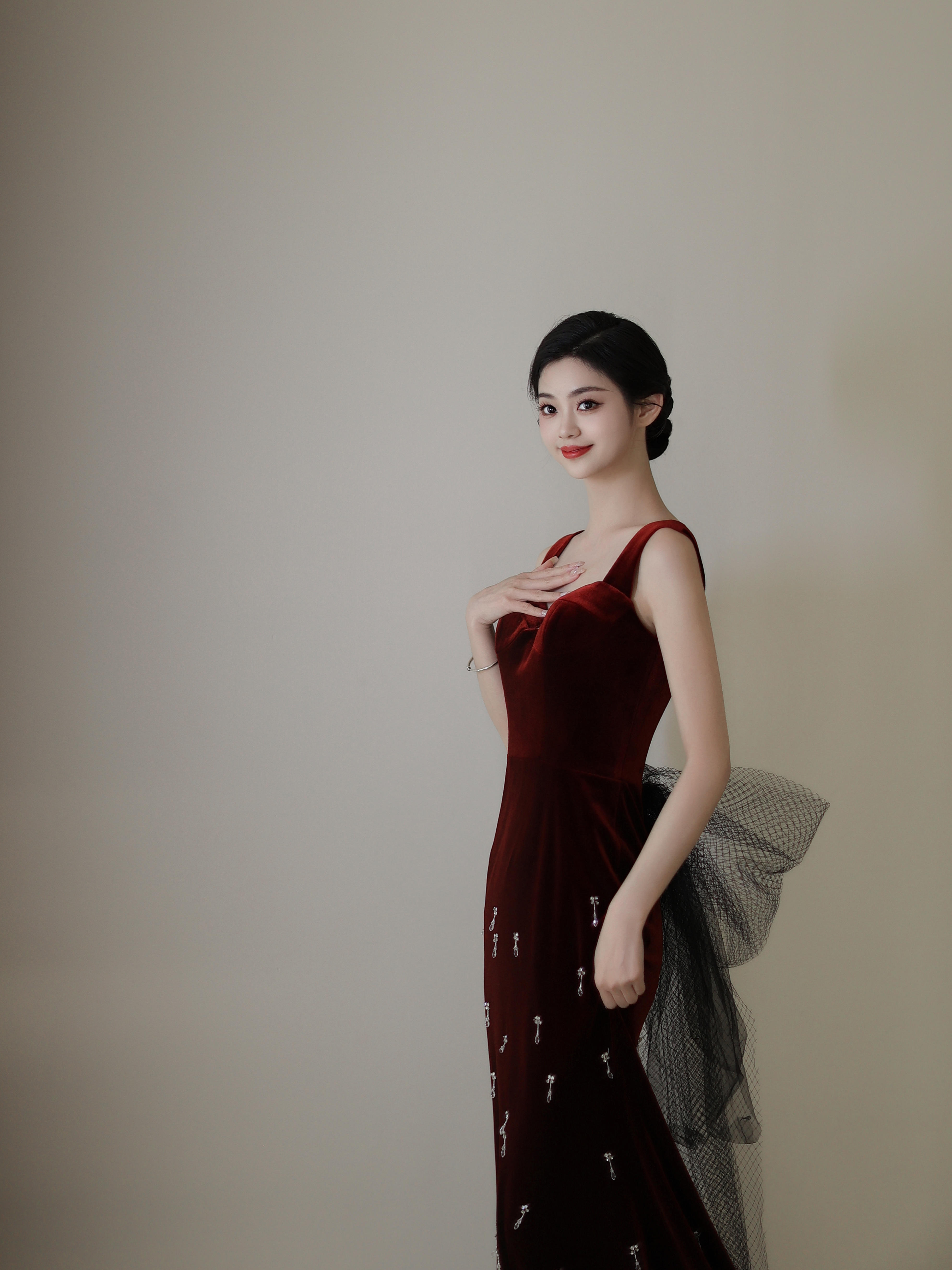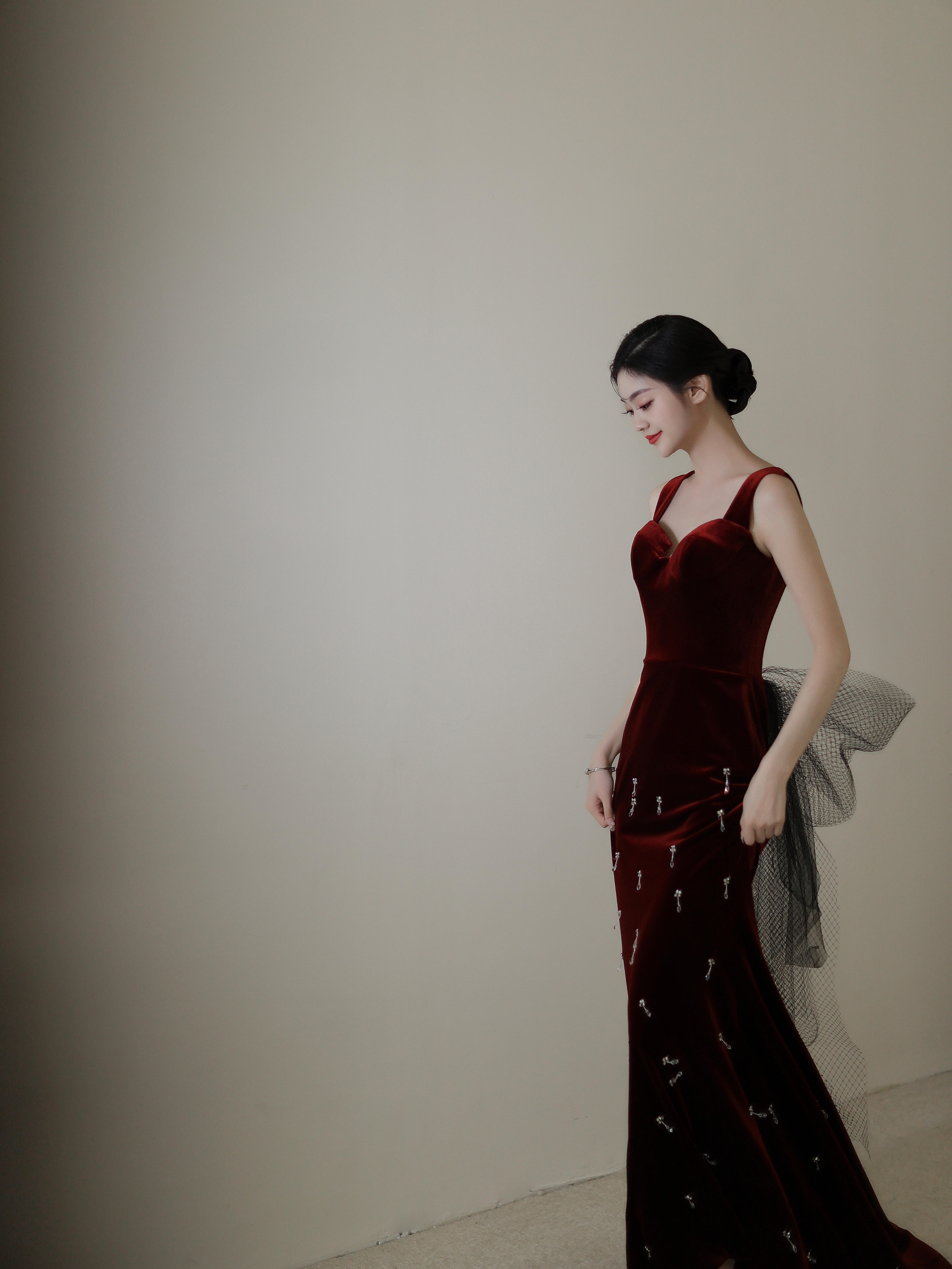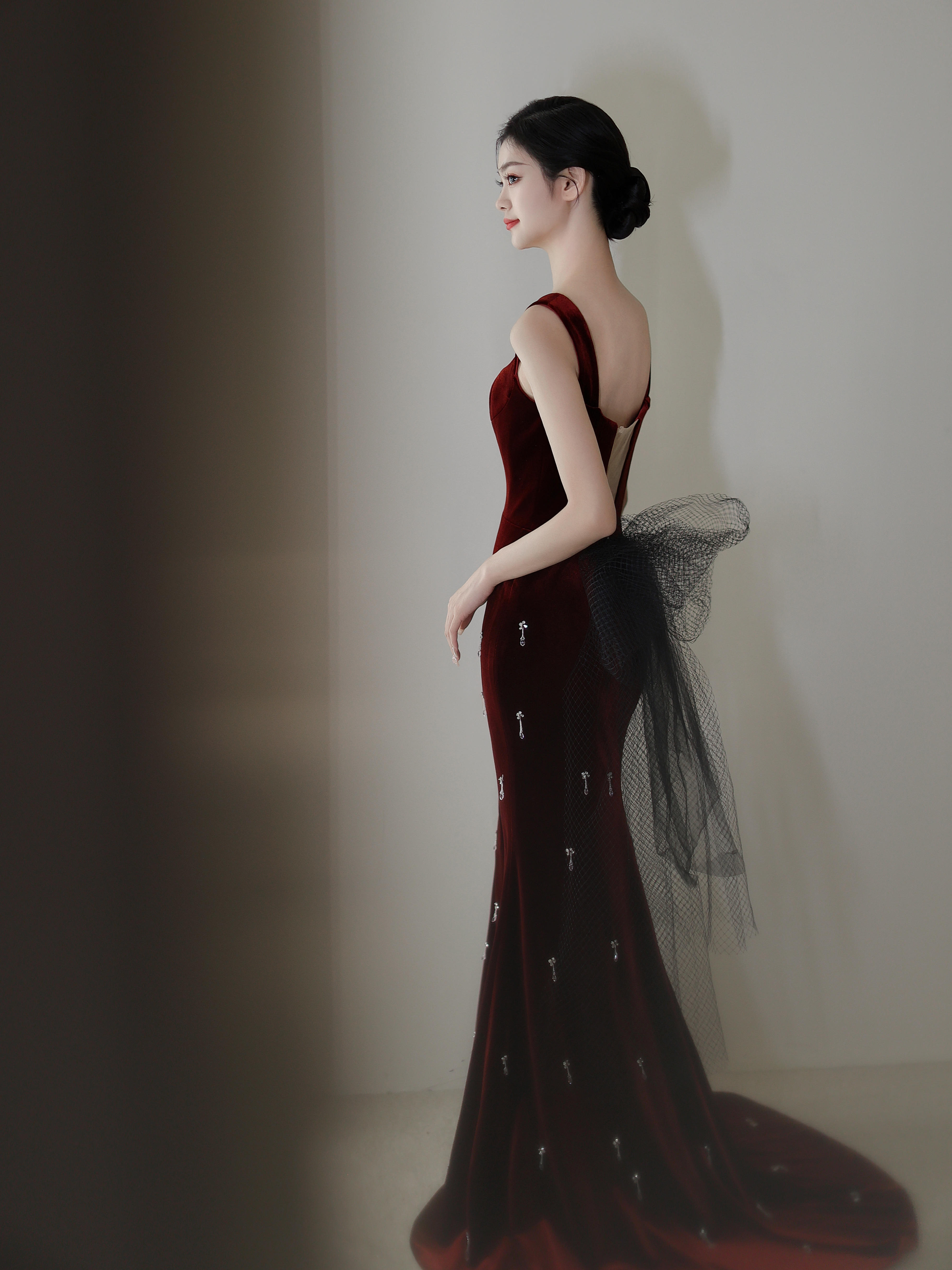 红丝绒鱼尾礼服