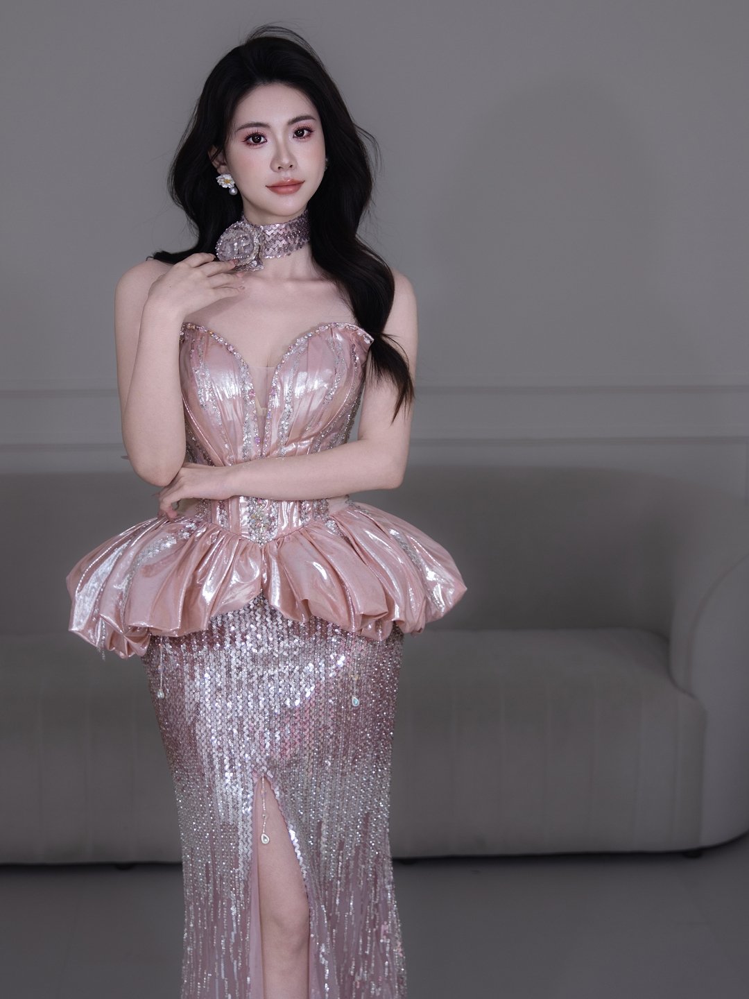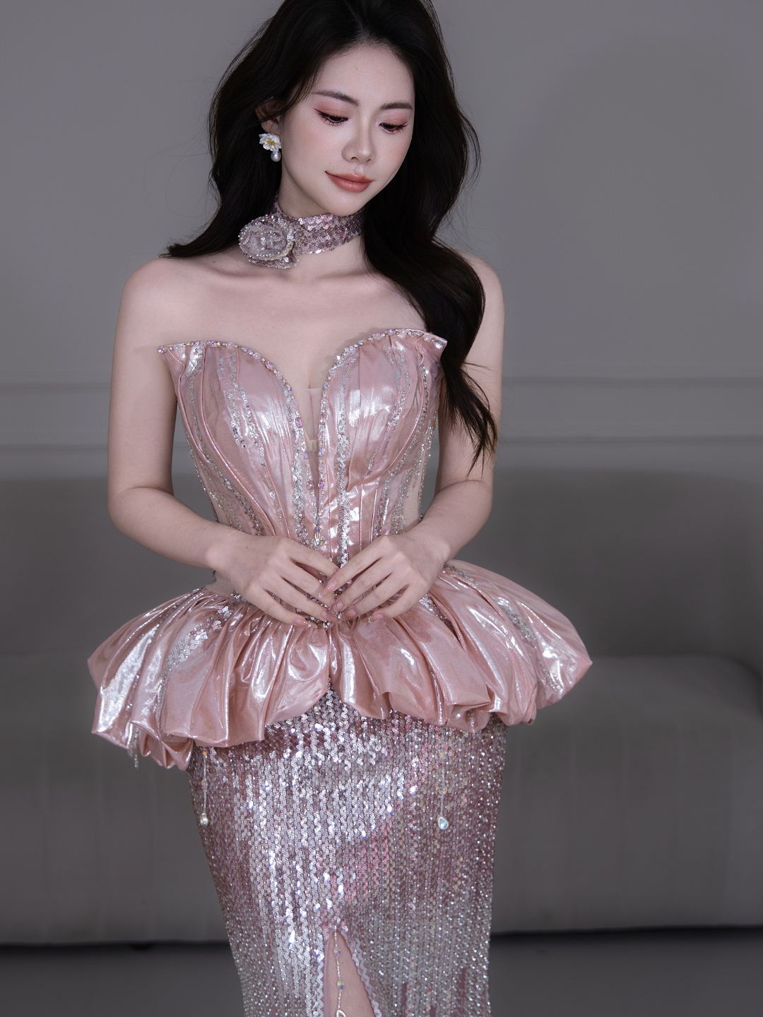 美出圈的粉色鱼尾礼服