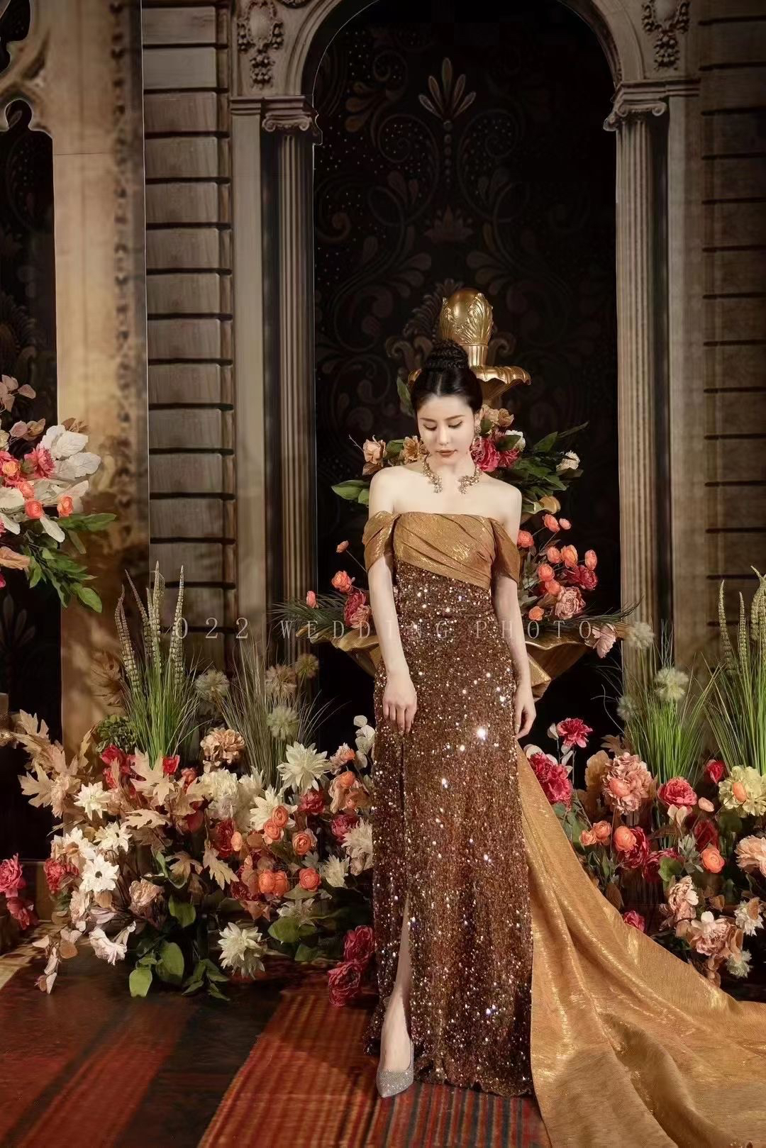 高级感金咖色女主角礼服