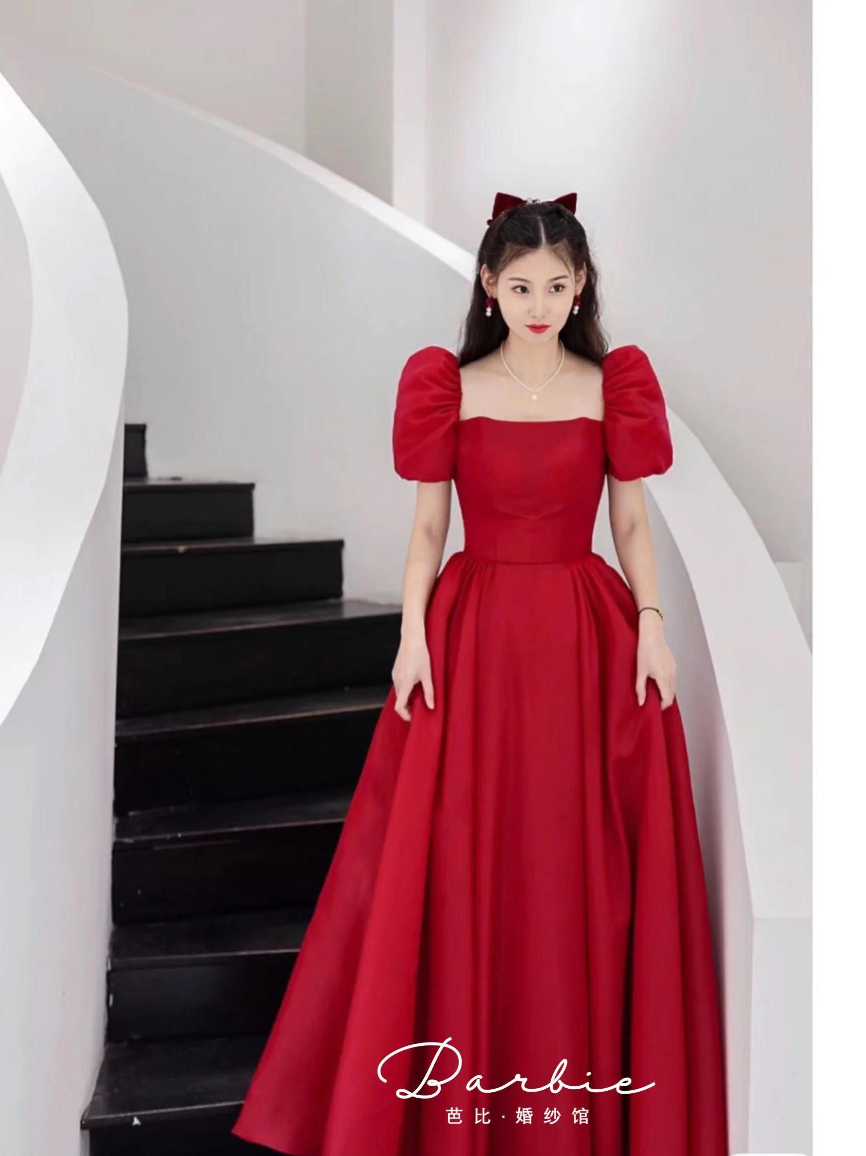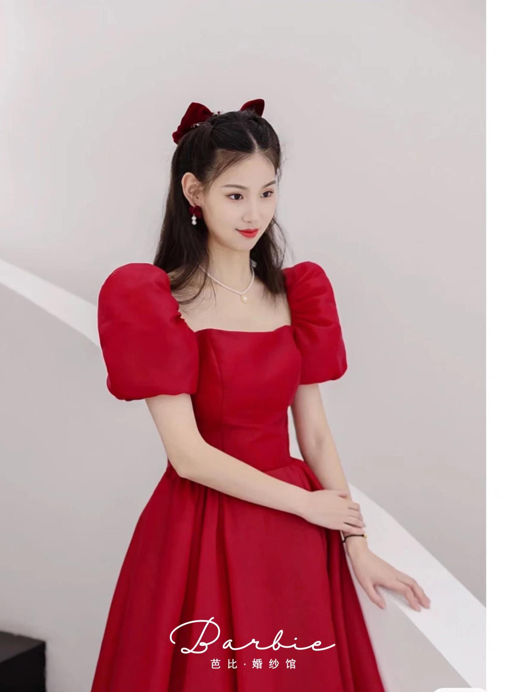 泡泡袖敬酒服