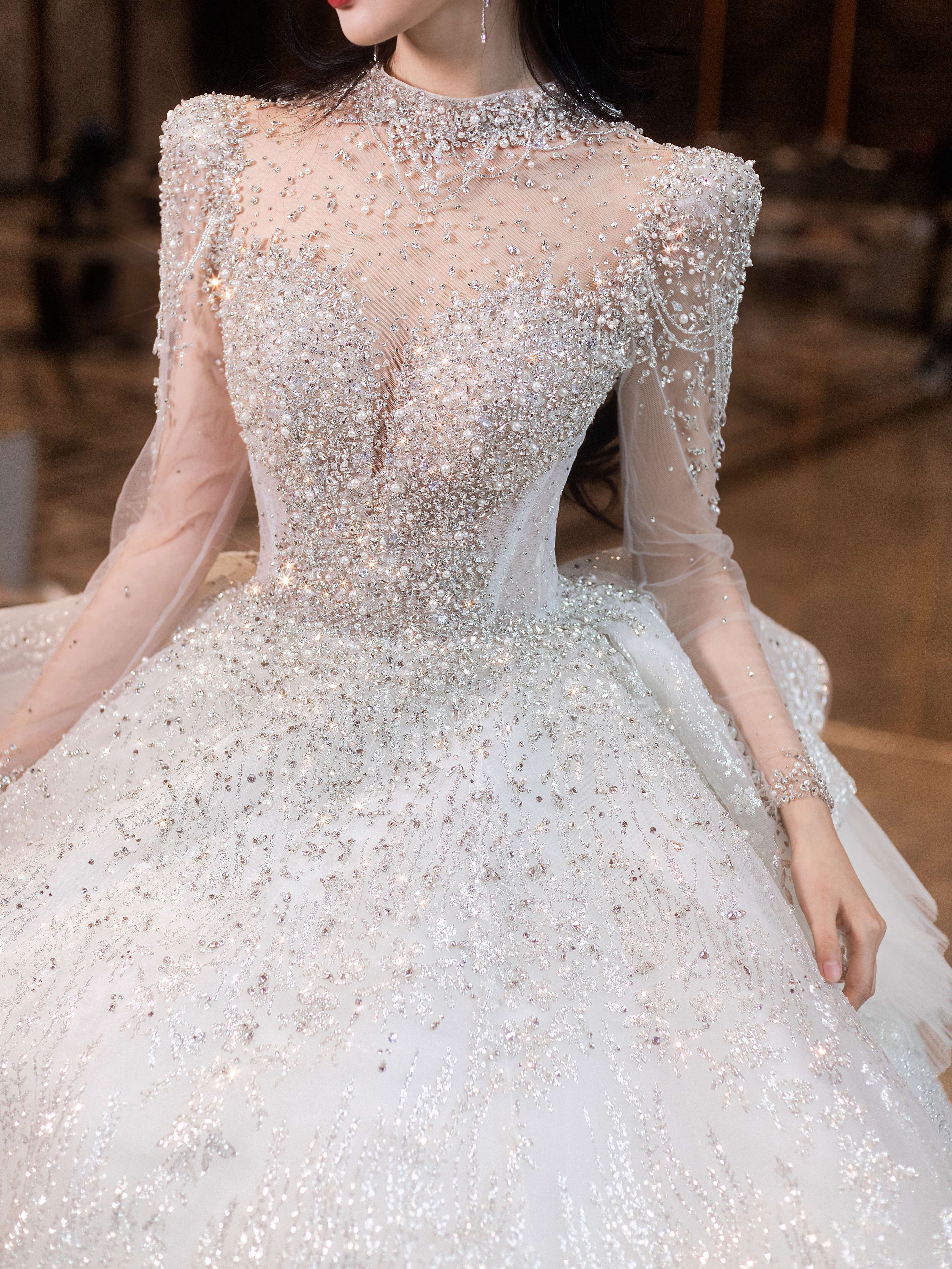 梦幻蓝色大拖尾婚纱