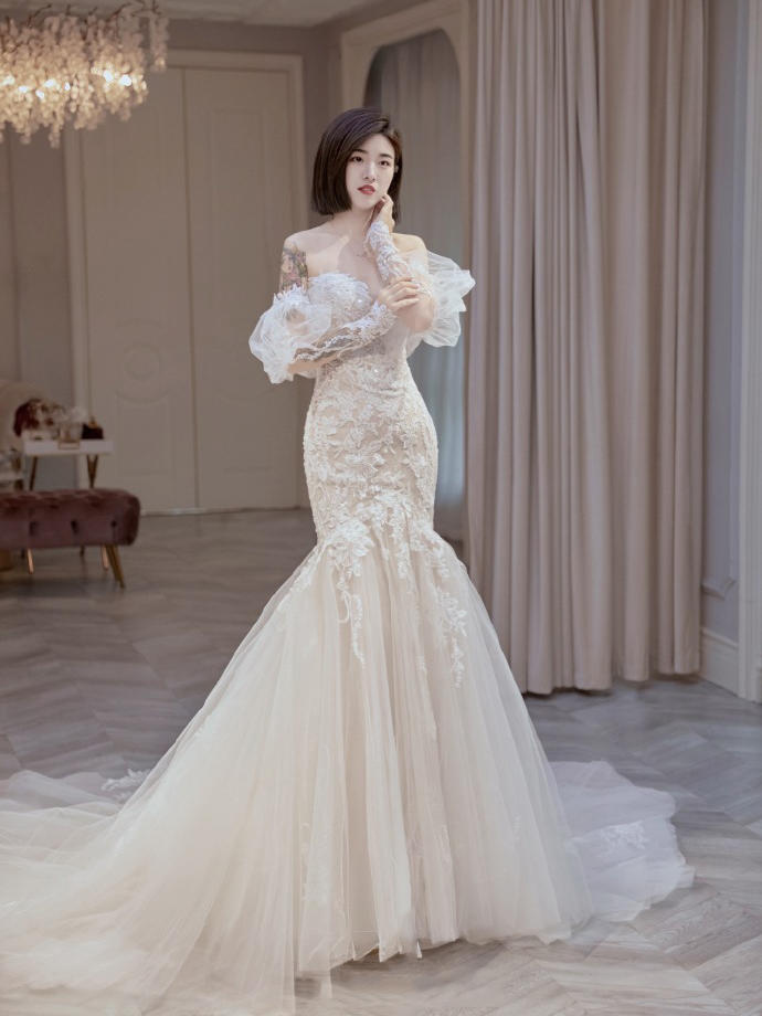 经典隆重感的全蕾丝仪式纱美爆