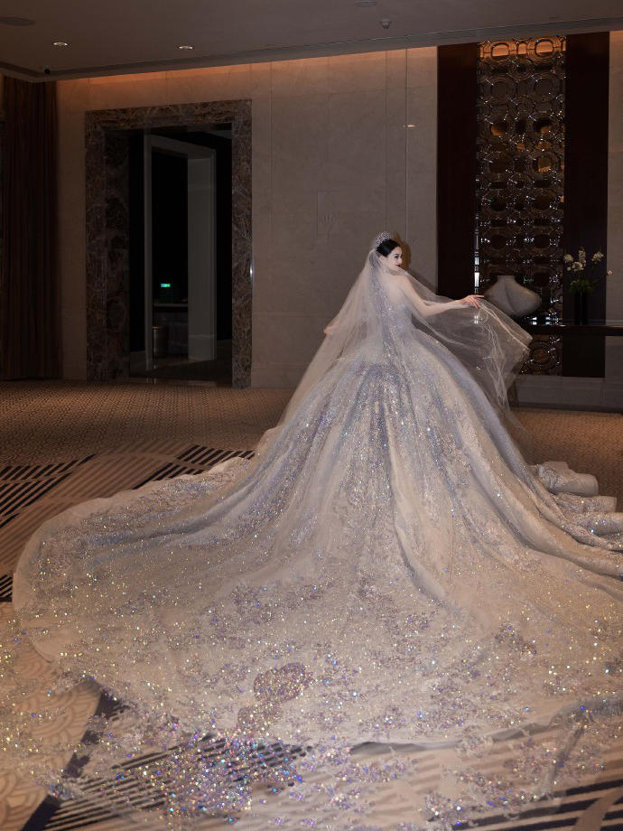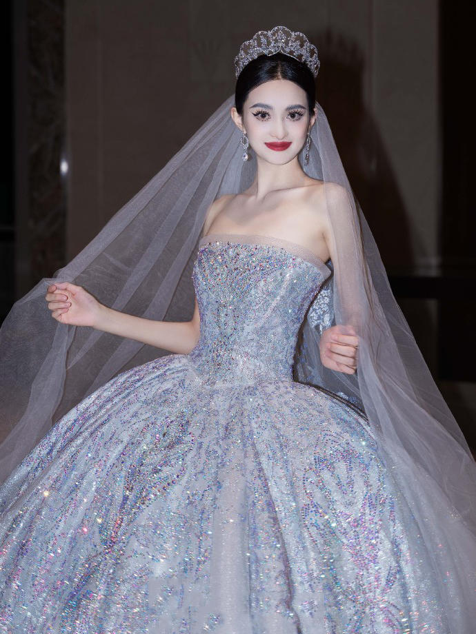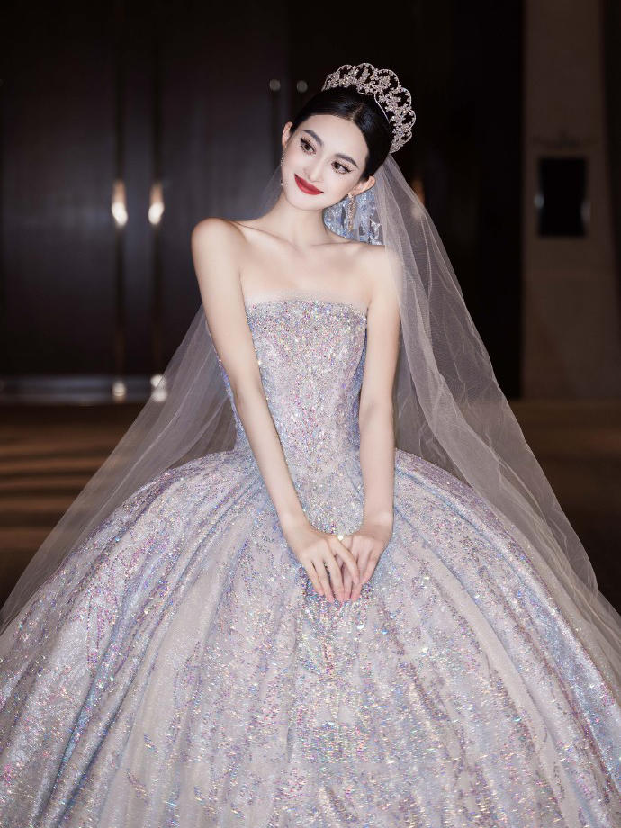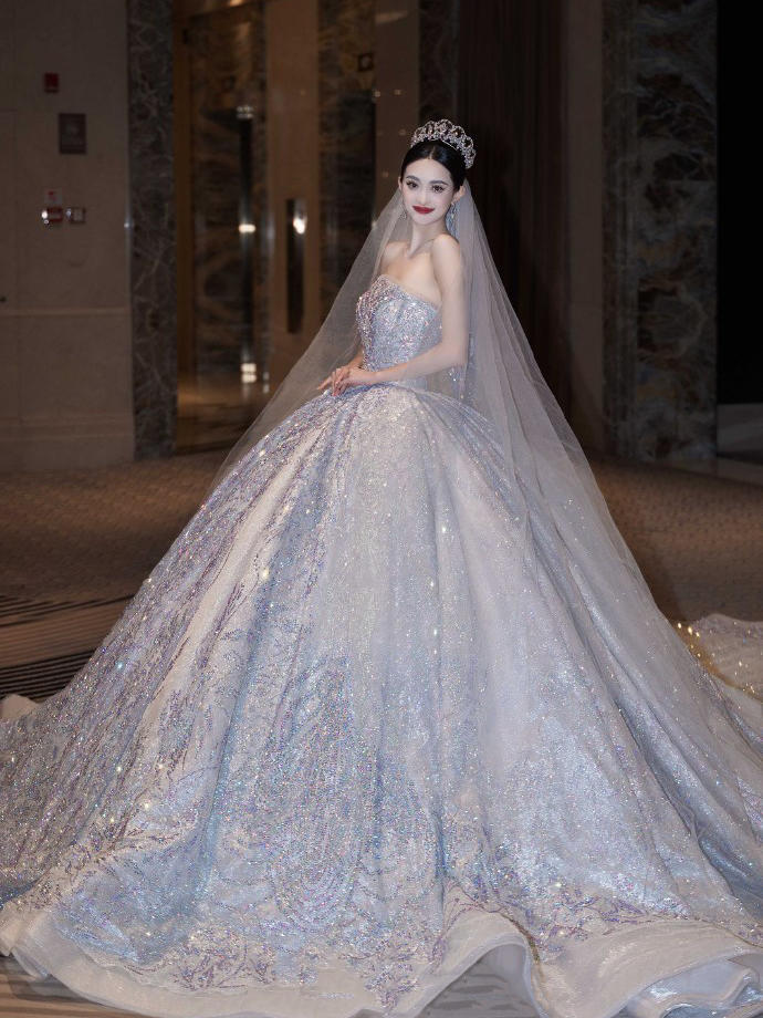 一眼心动的缎面婚纱超美的公主裙