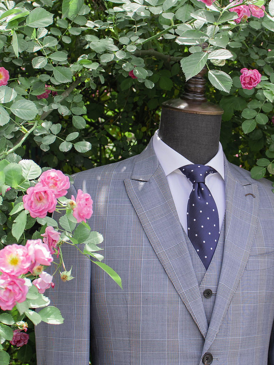 盛夏年轻气质深灰格纹商务结婚西服