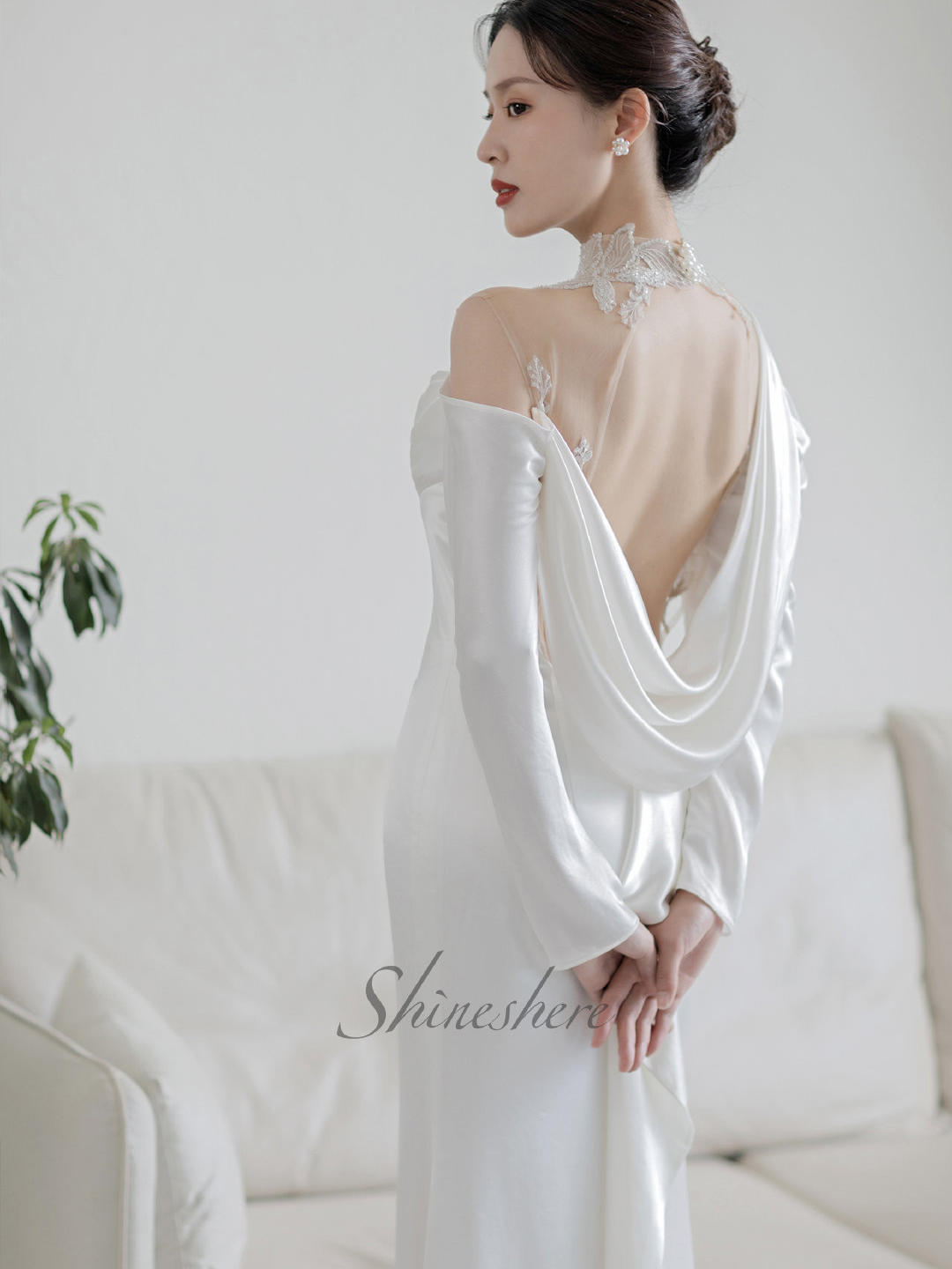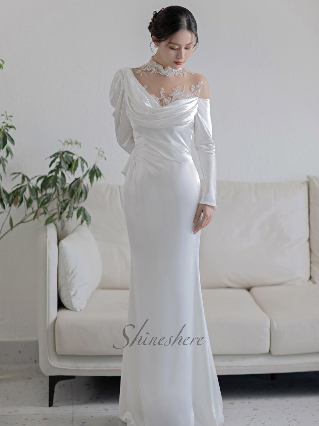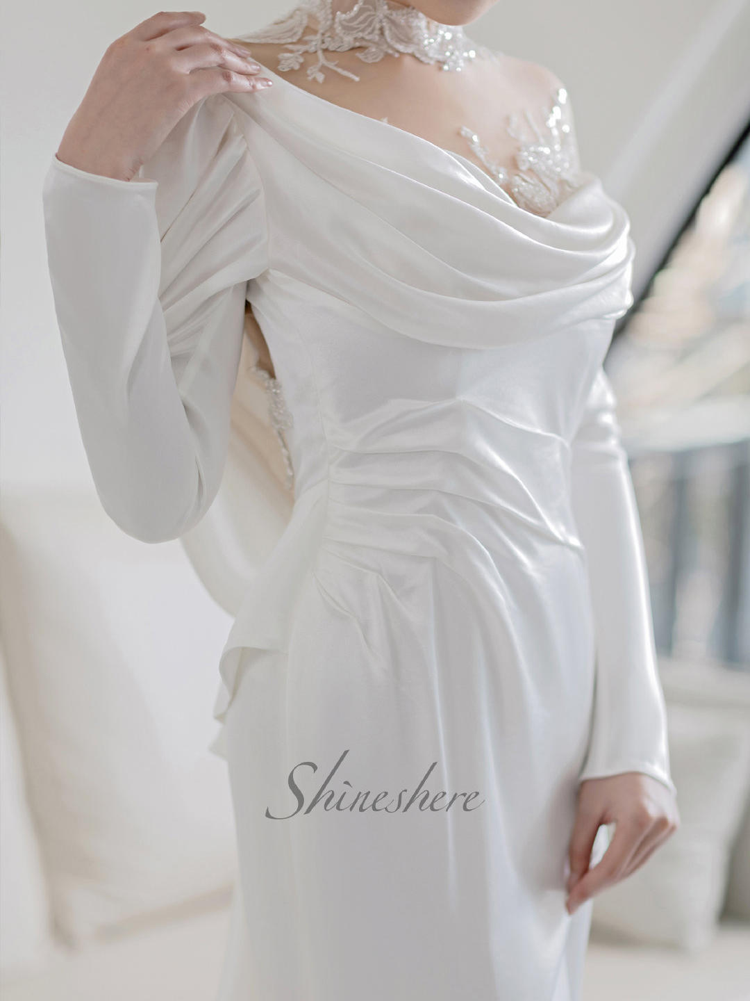 【网红款】长袖复古缎面鱼尾婚纱