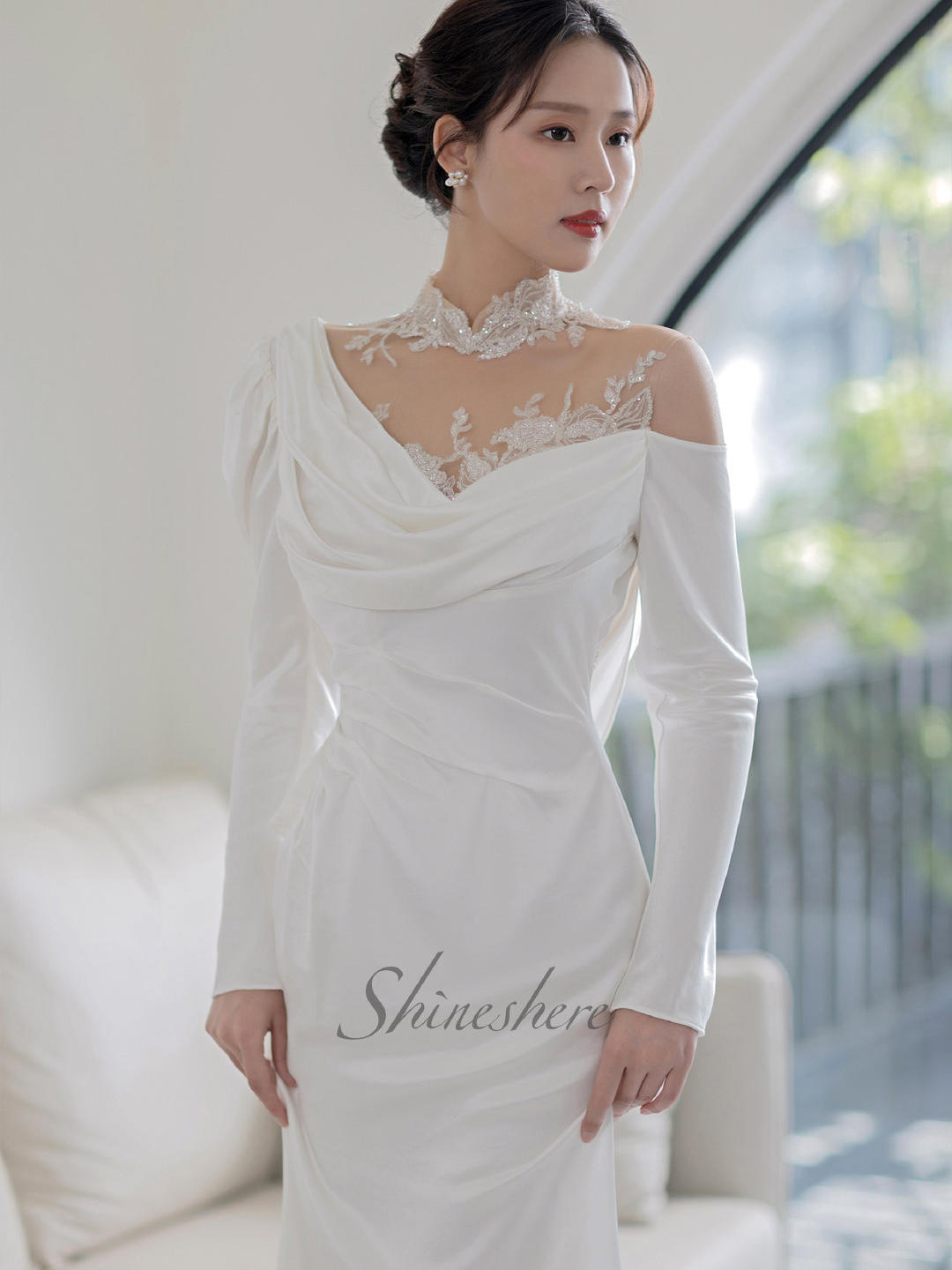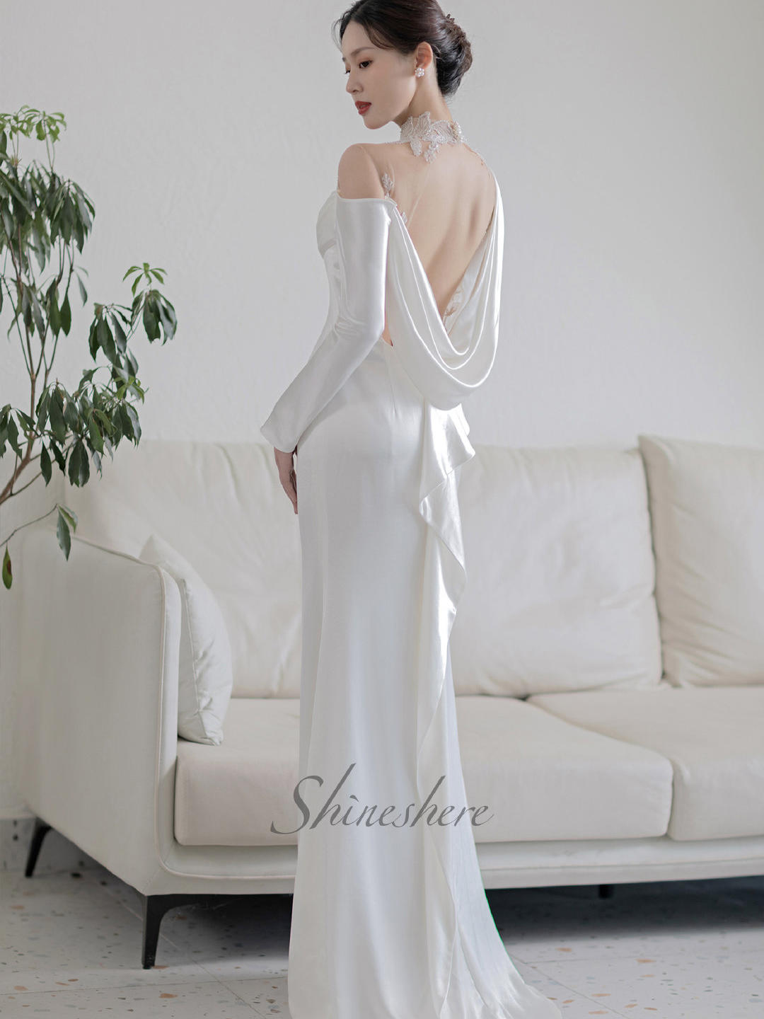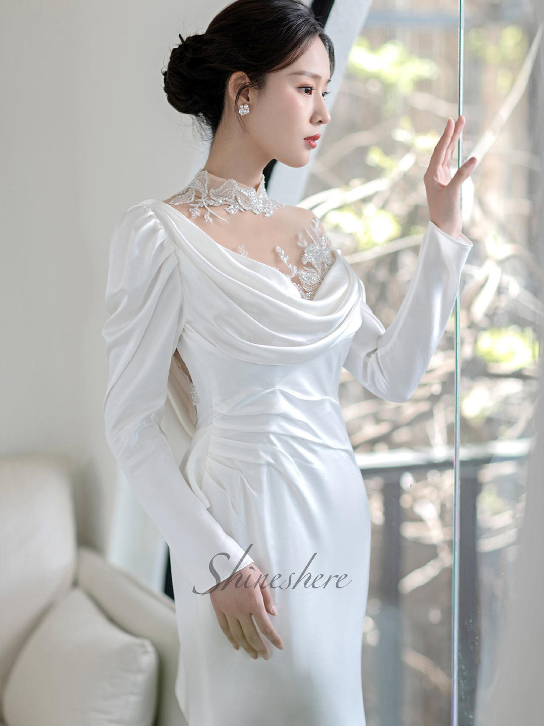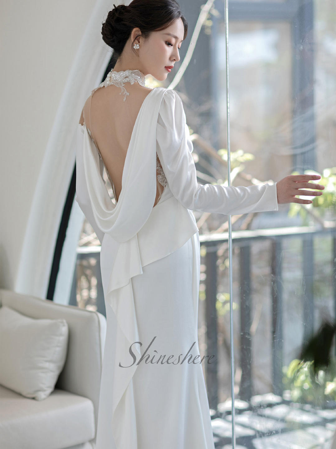 【网红款】长袖复古缎面鱼尾婚纱