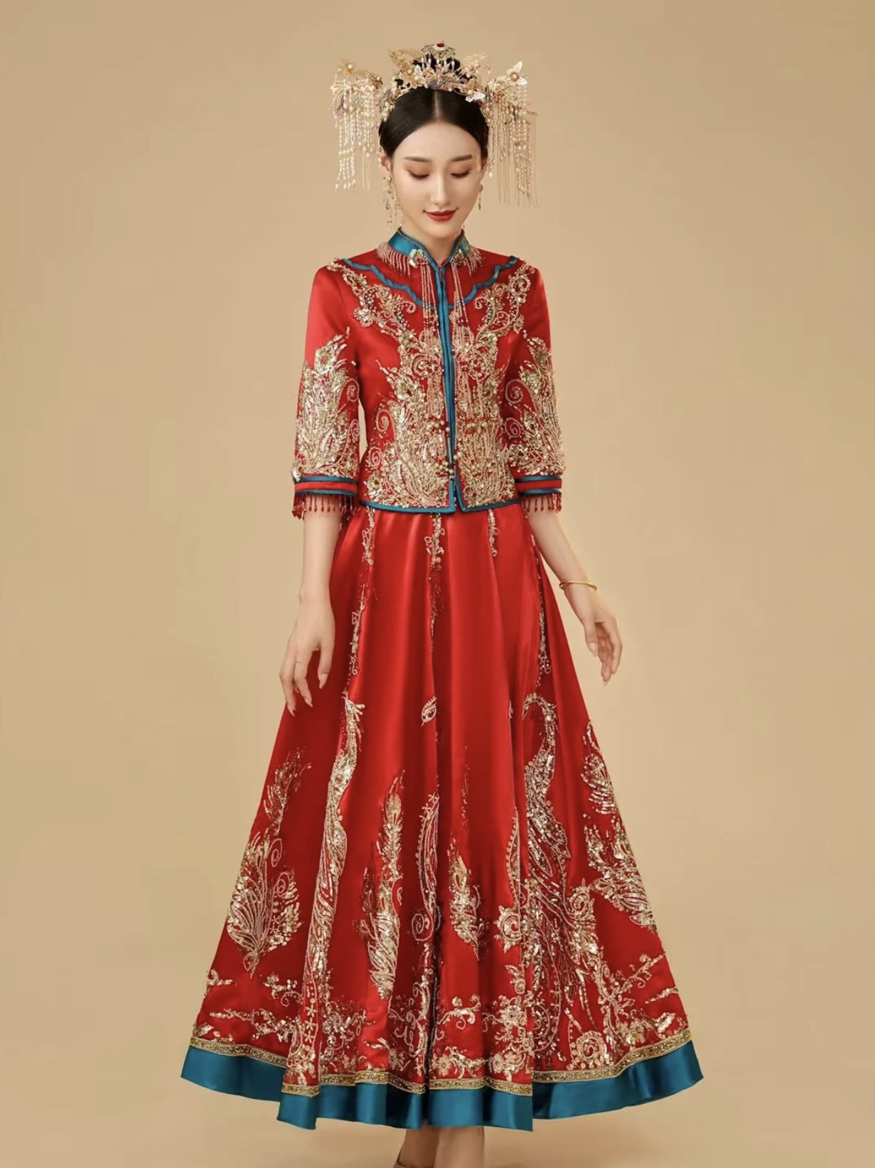【纯白婚纱】红蓝撞色秀禾服