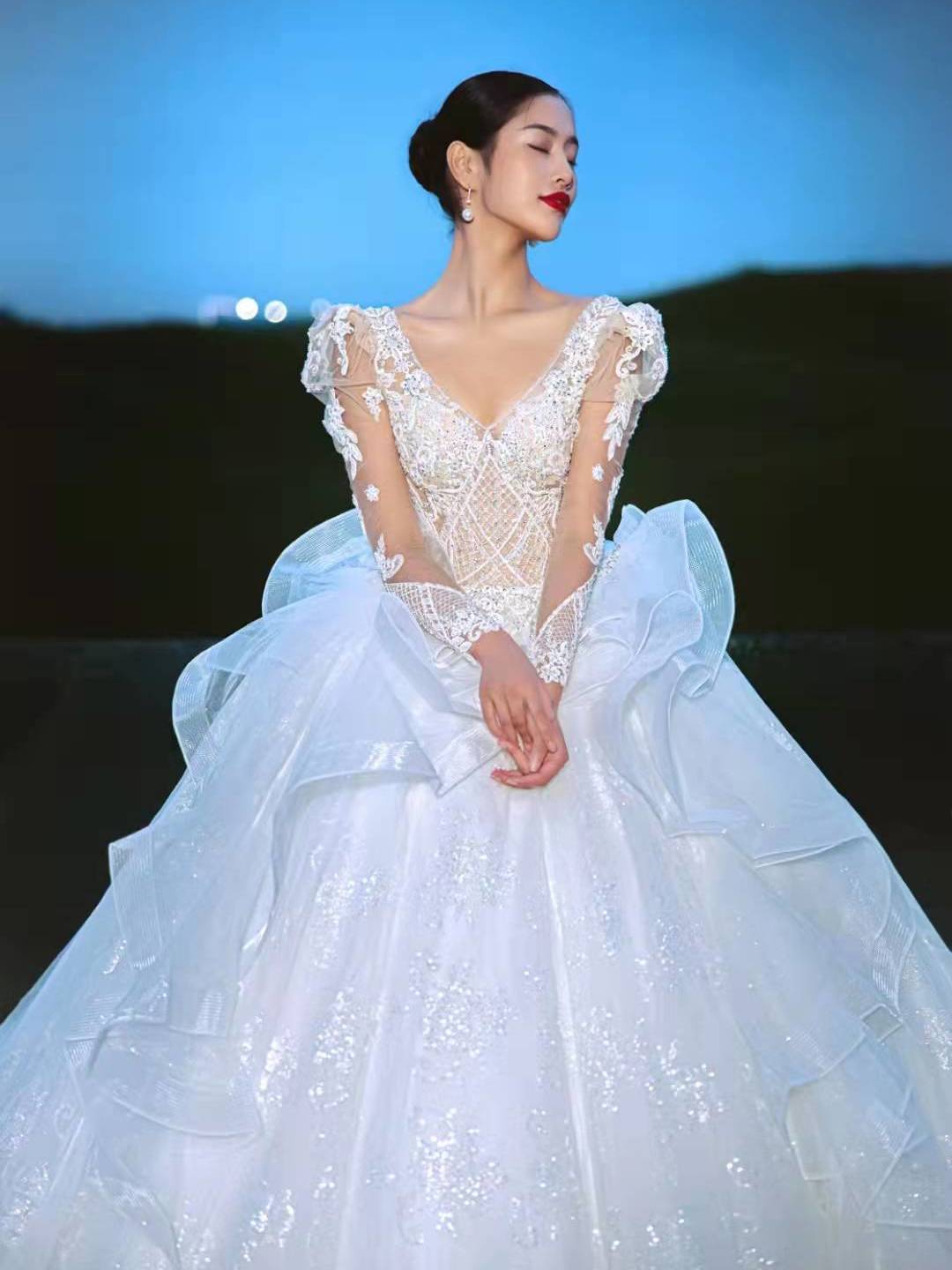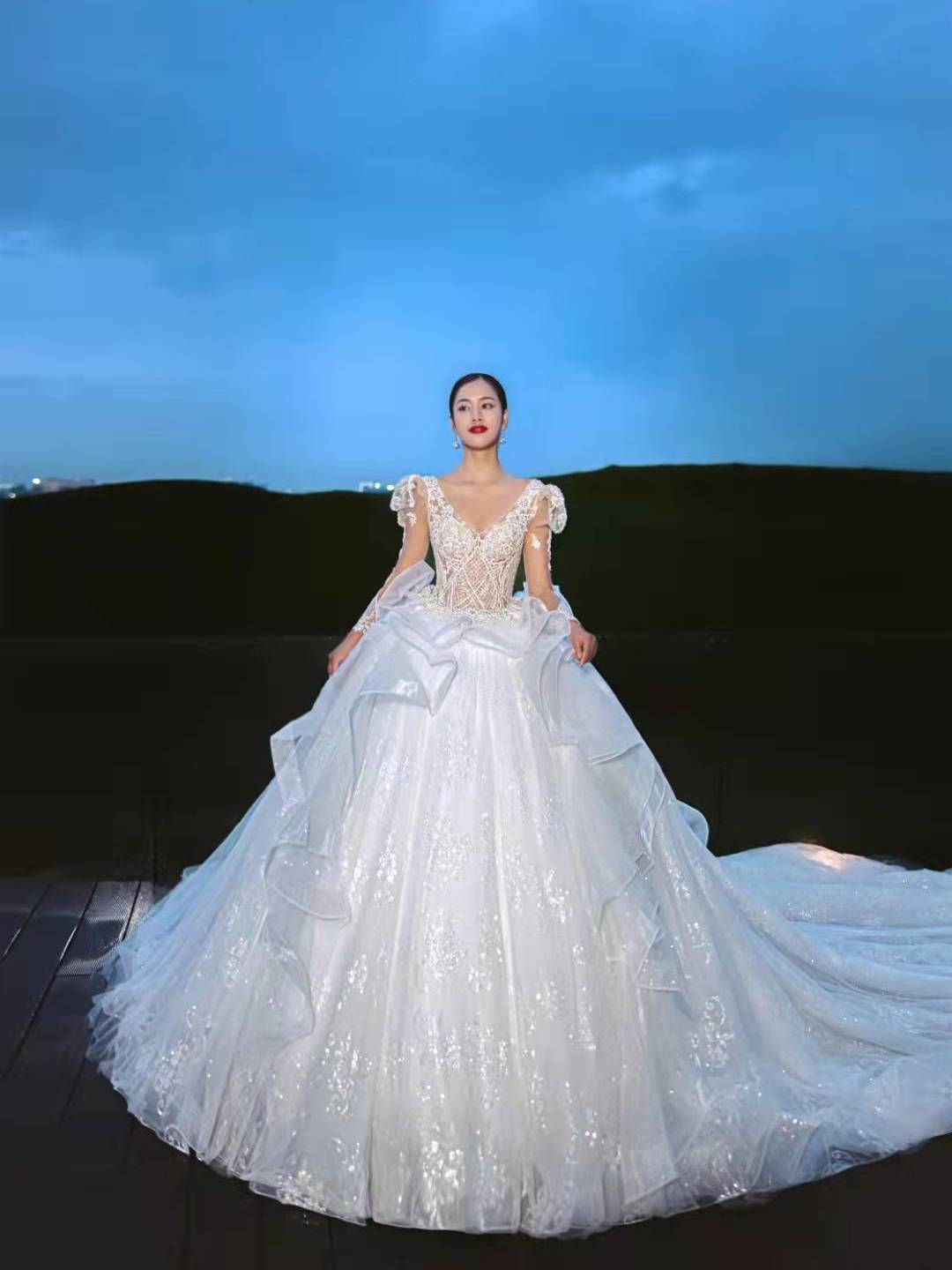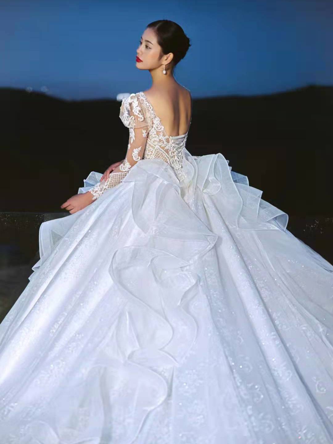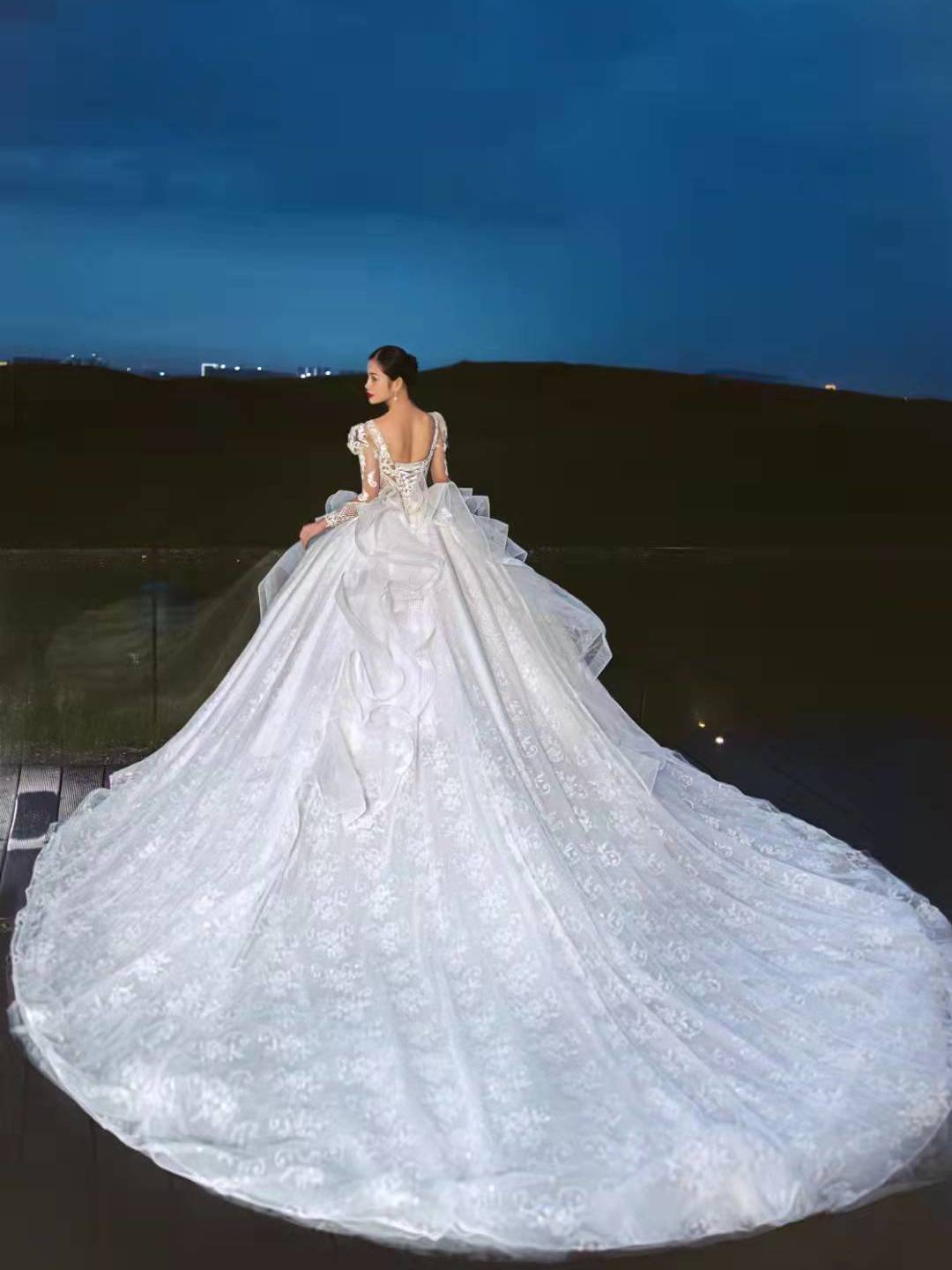 【婚纱礼服】优雅长拖尾婚纱租赁