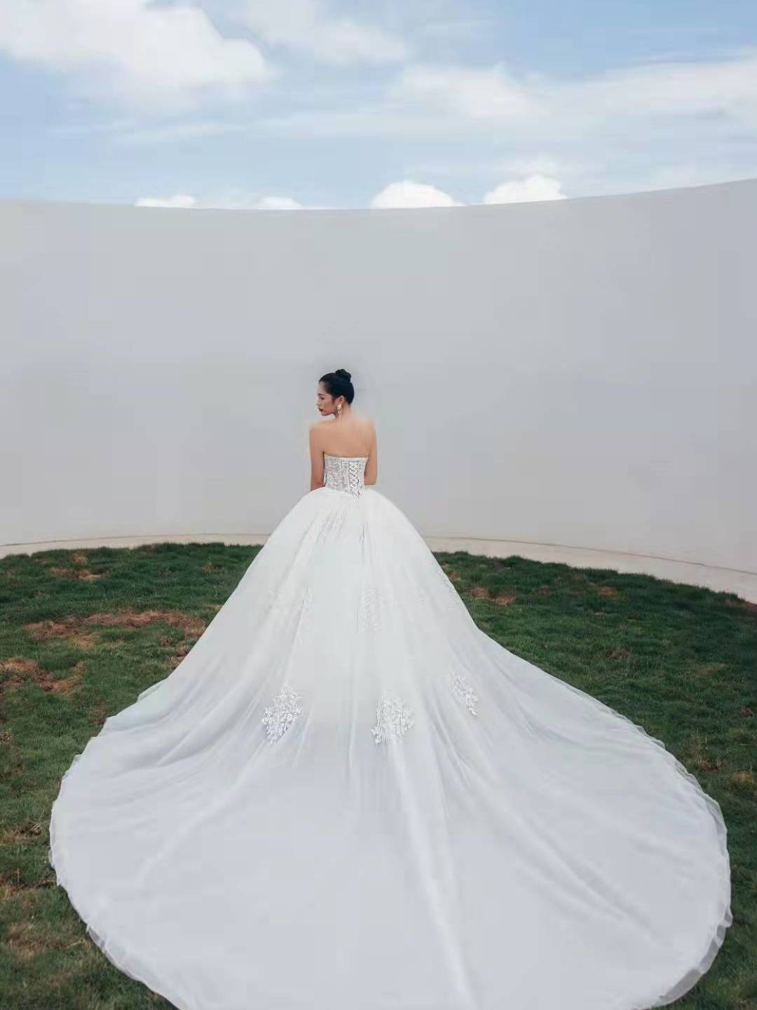 【三亚婚纱】时尚长拖尾婚纱租赁