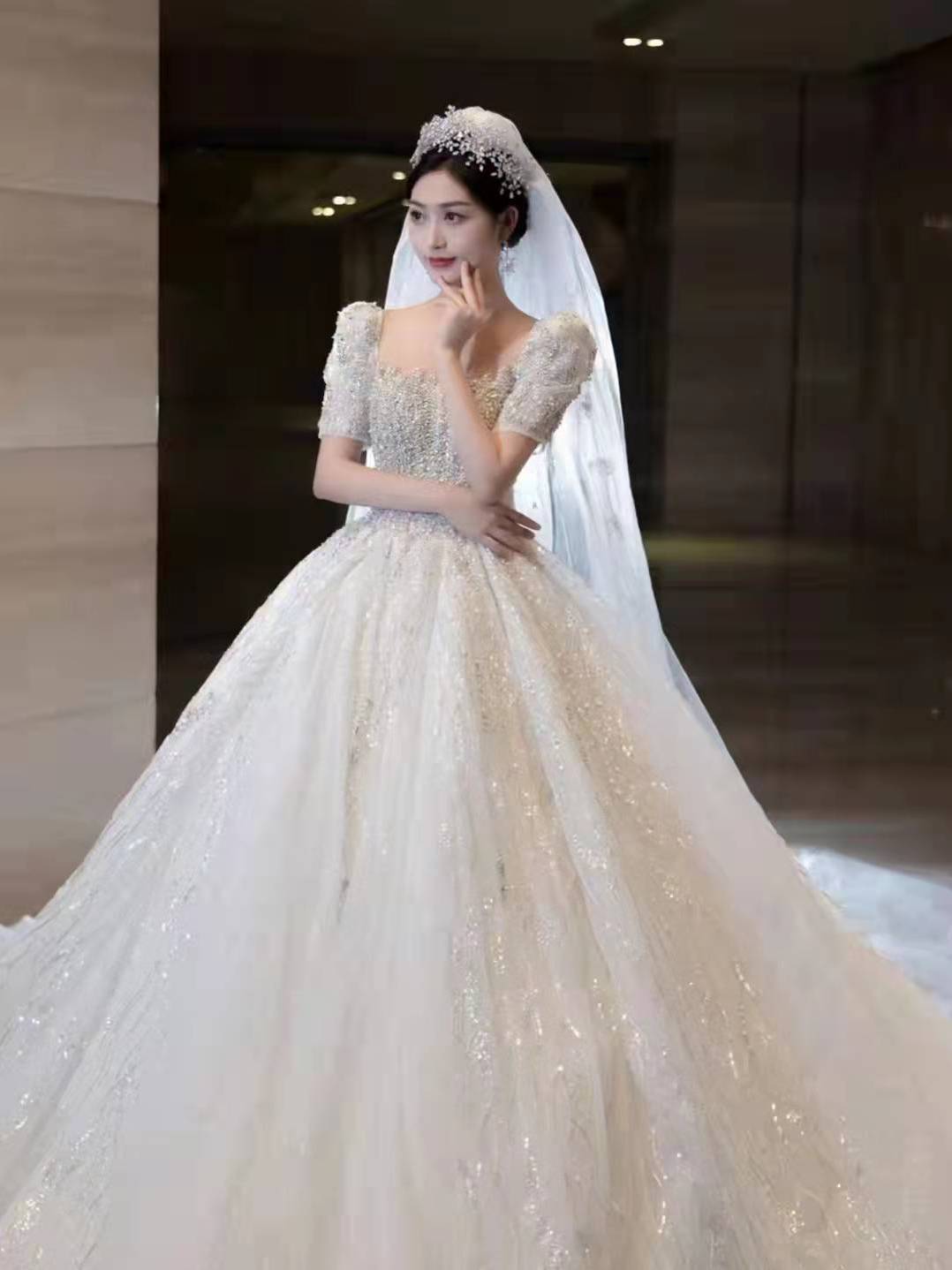【婚纱礼服】优雅长拖尾婚纱租赁