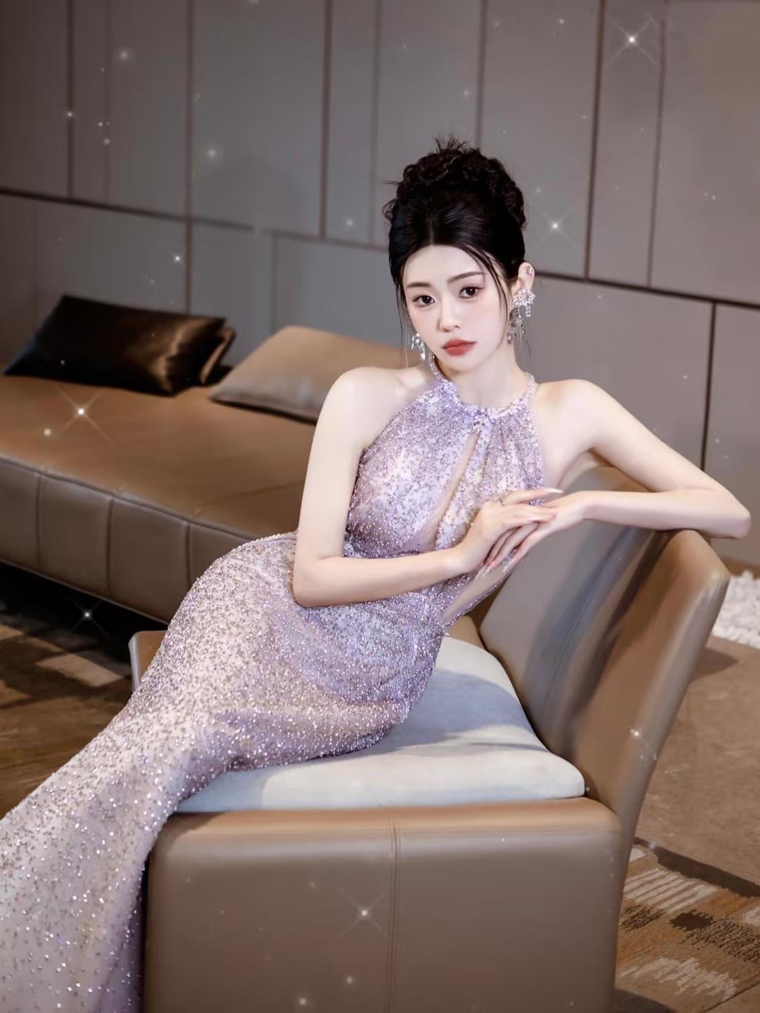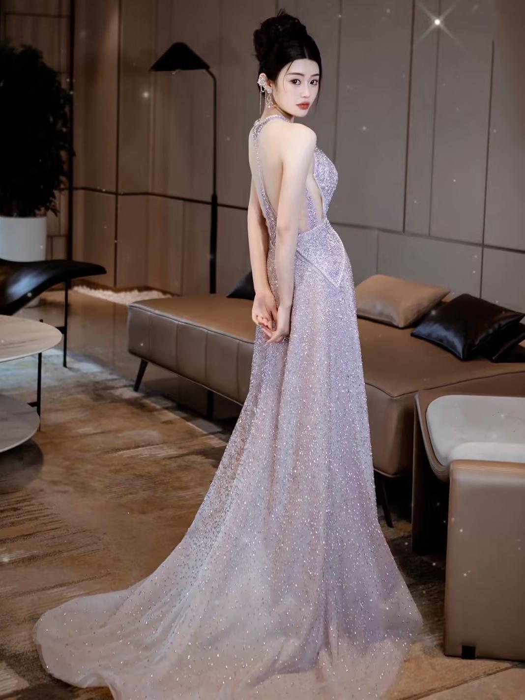 挂脖紫色礼服紫罗兰