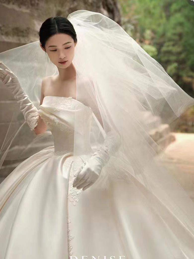 高级感刺绣抹胸缎面婚纱