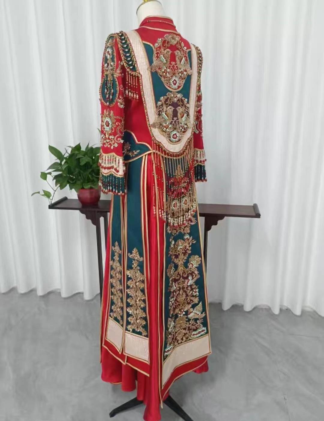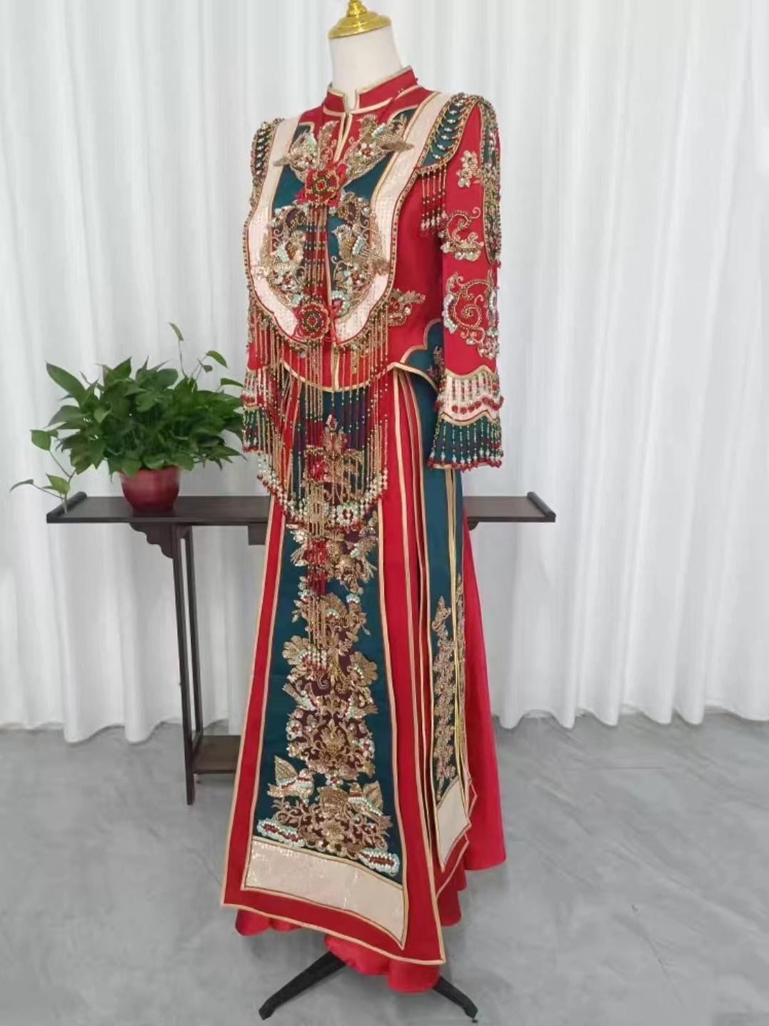 幸福新娘红绿撞色新款中式重工嫁衣