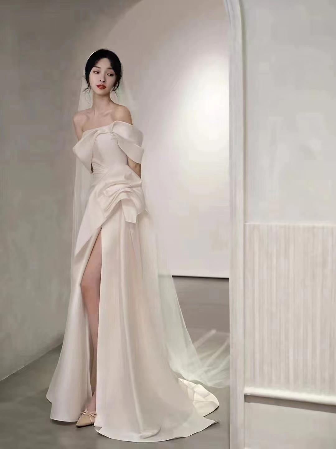 【莫尔婚纱礼服】超重一字肩蝴蝶结