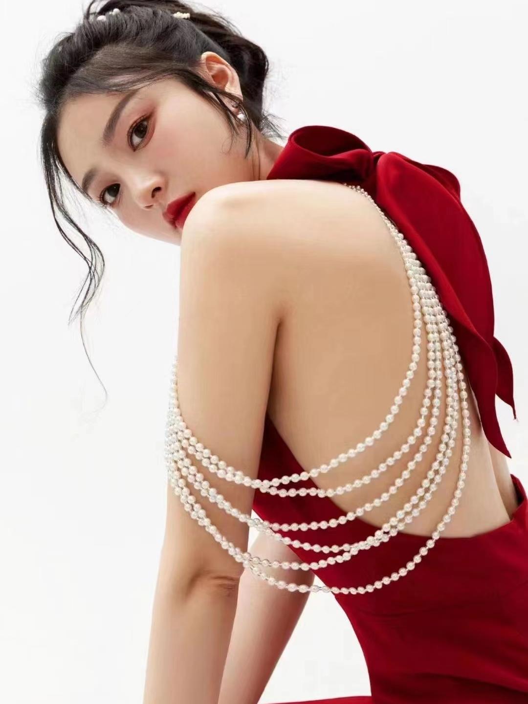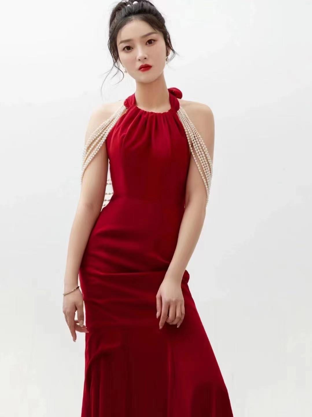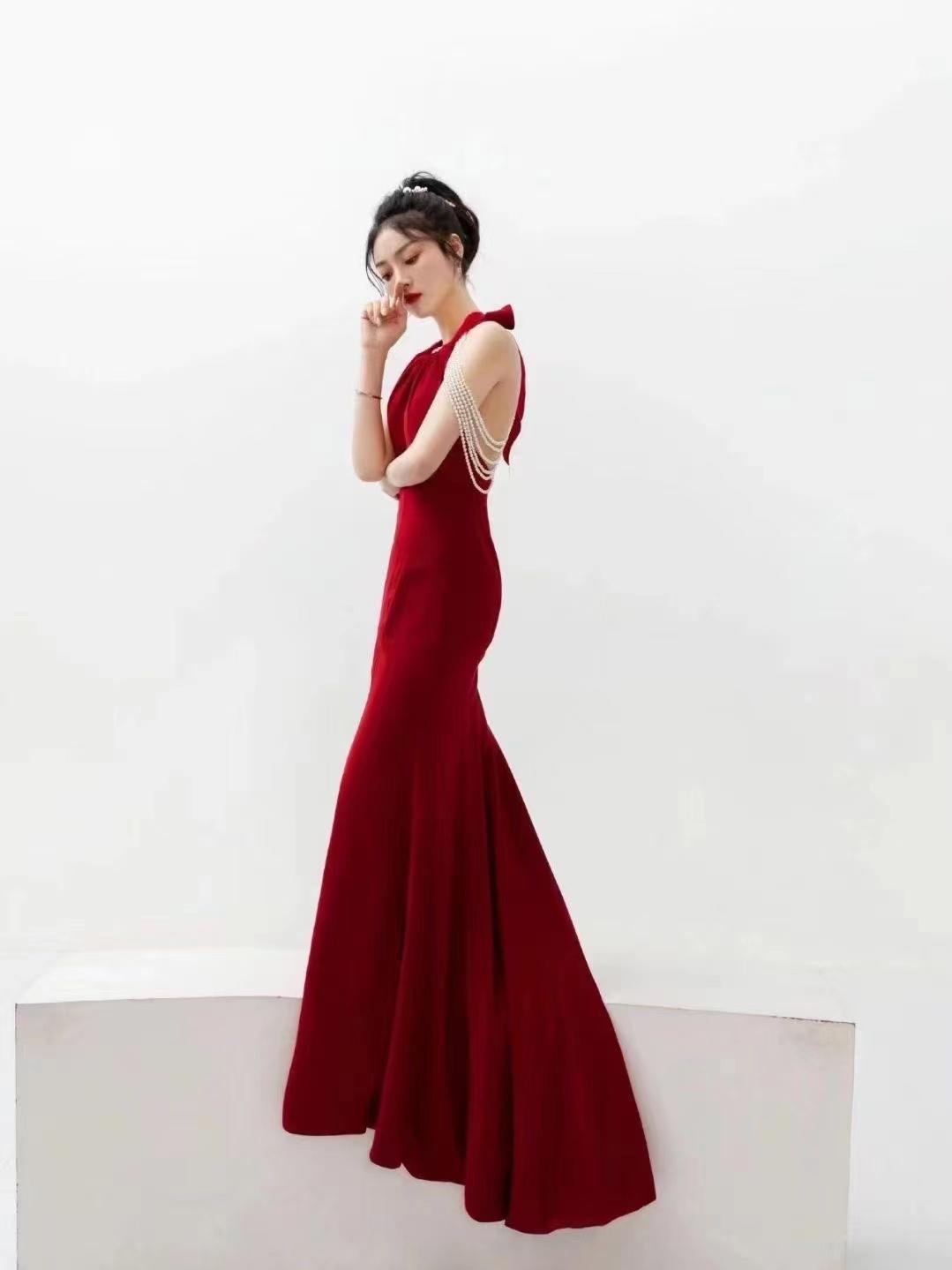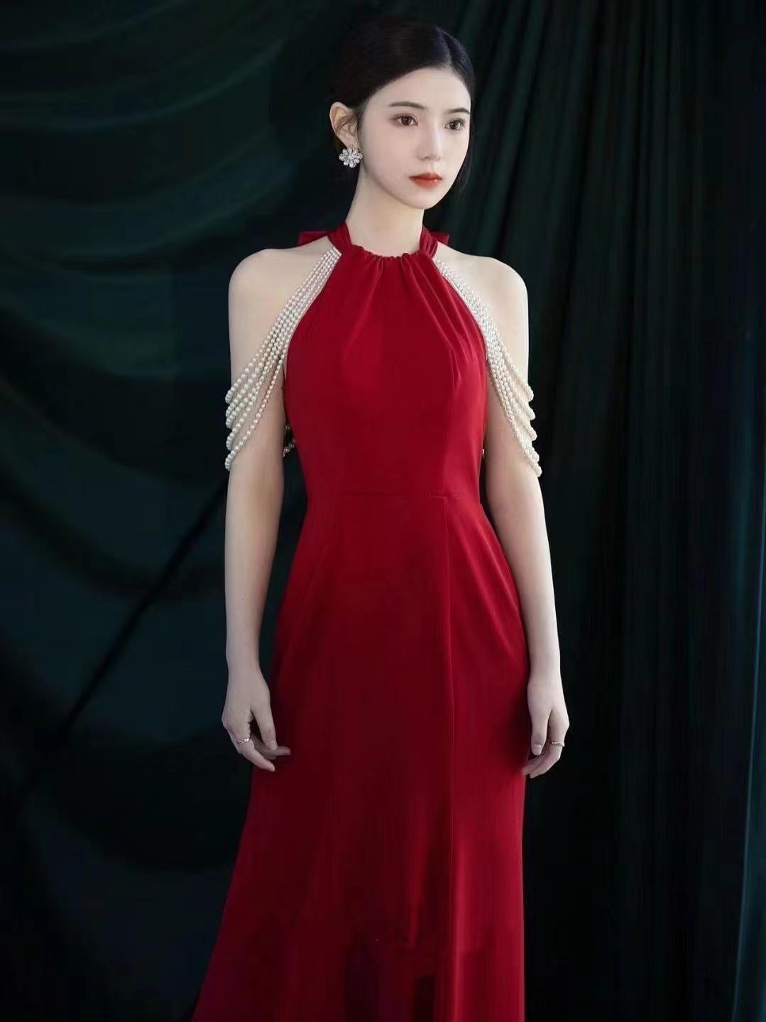 【莫尔婚纱礼服】法式红色珍珠礼服