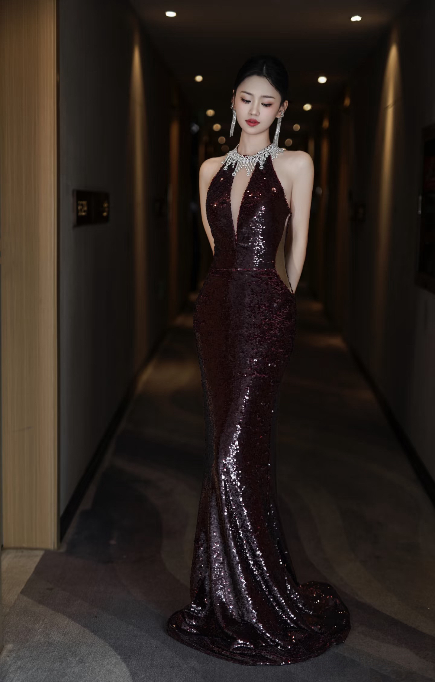红色挂脖礼服
