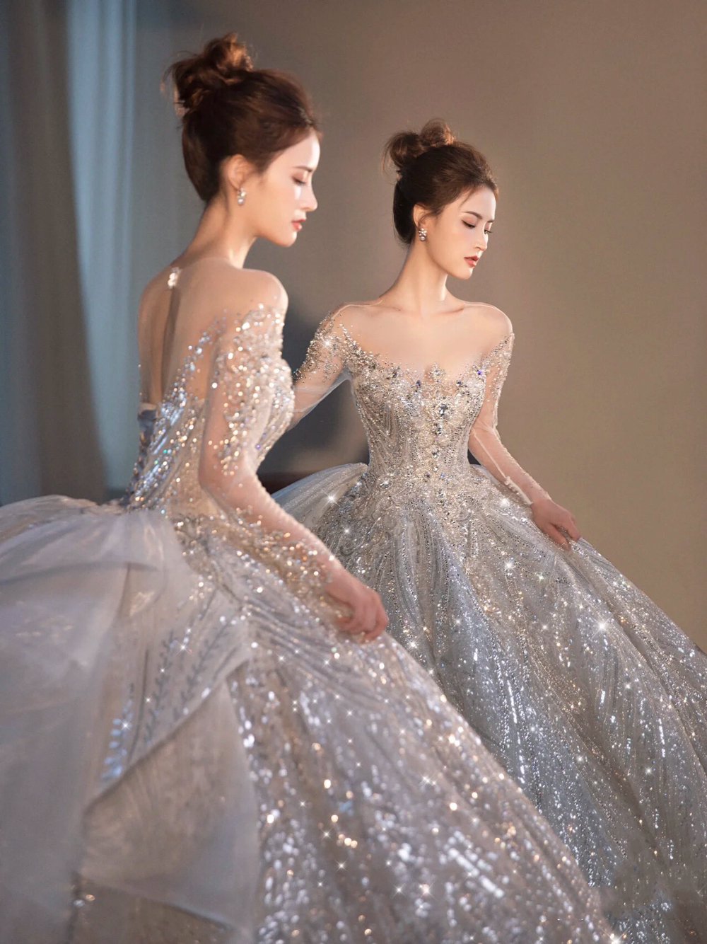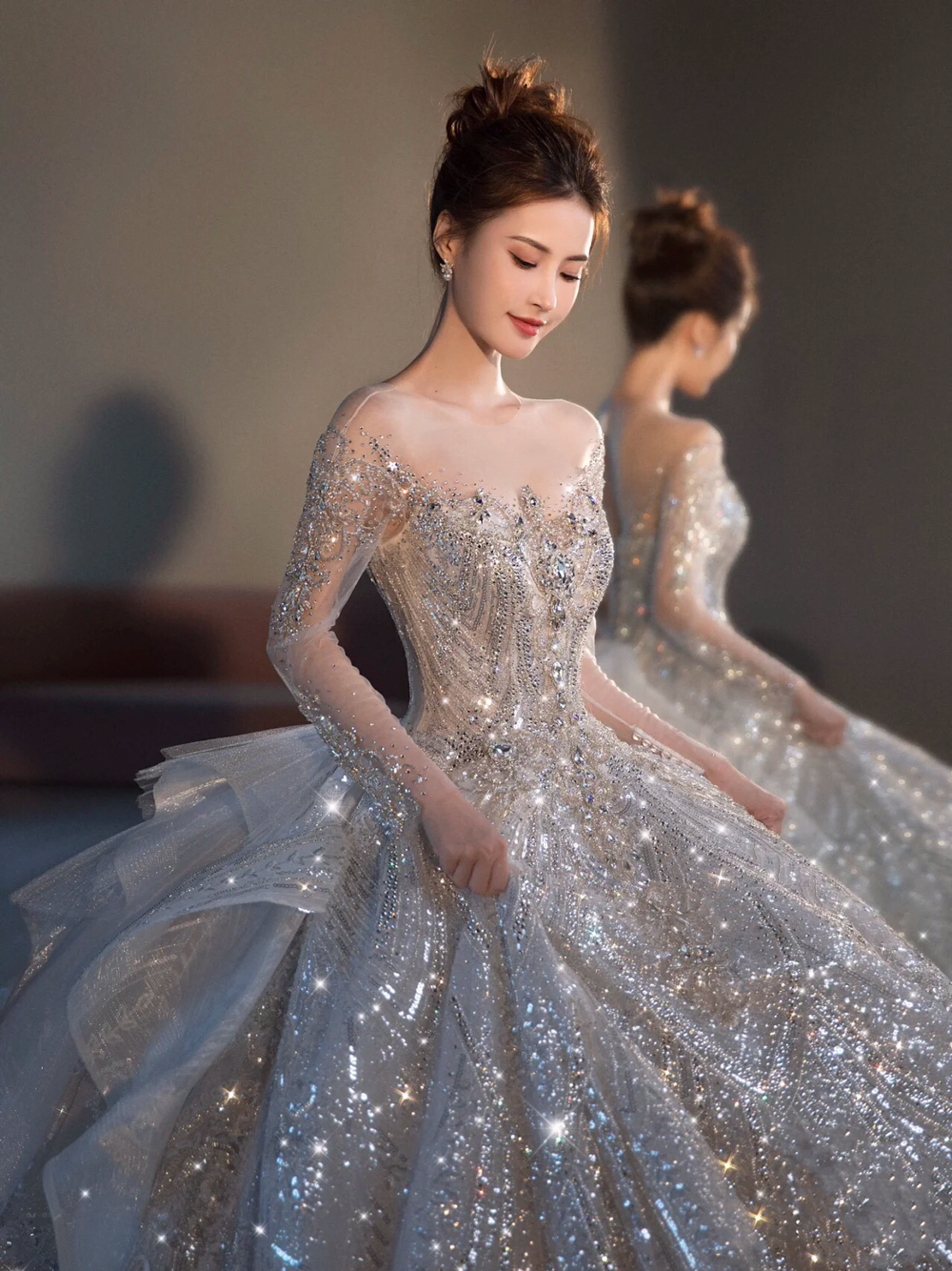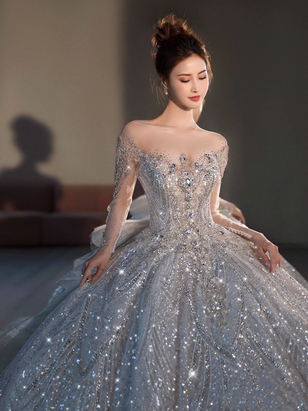 白月光珍珠缎齐地纱