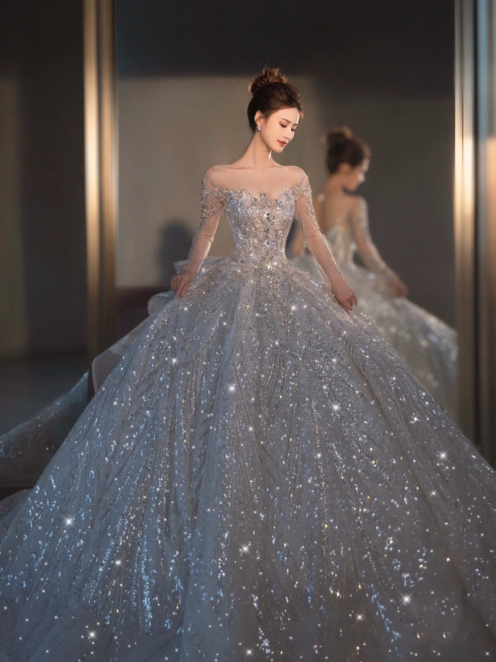 上镜爆闪的星河瀑布婚纱