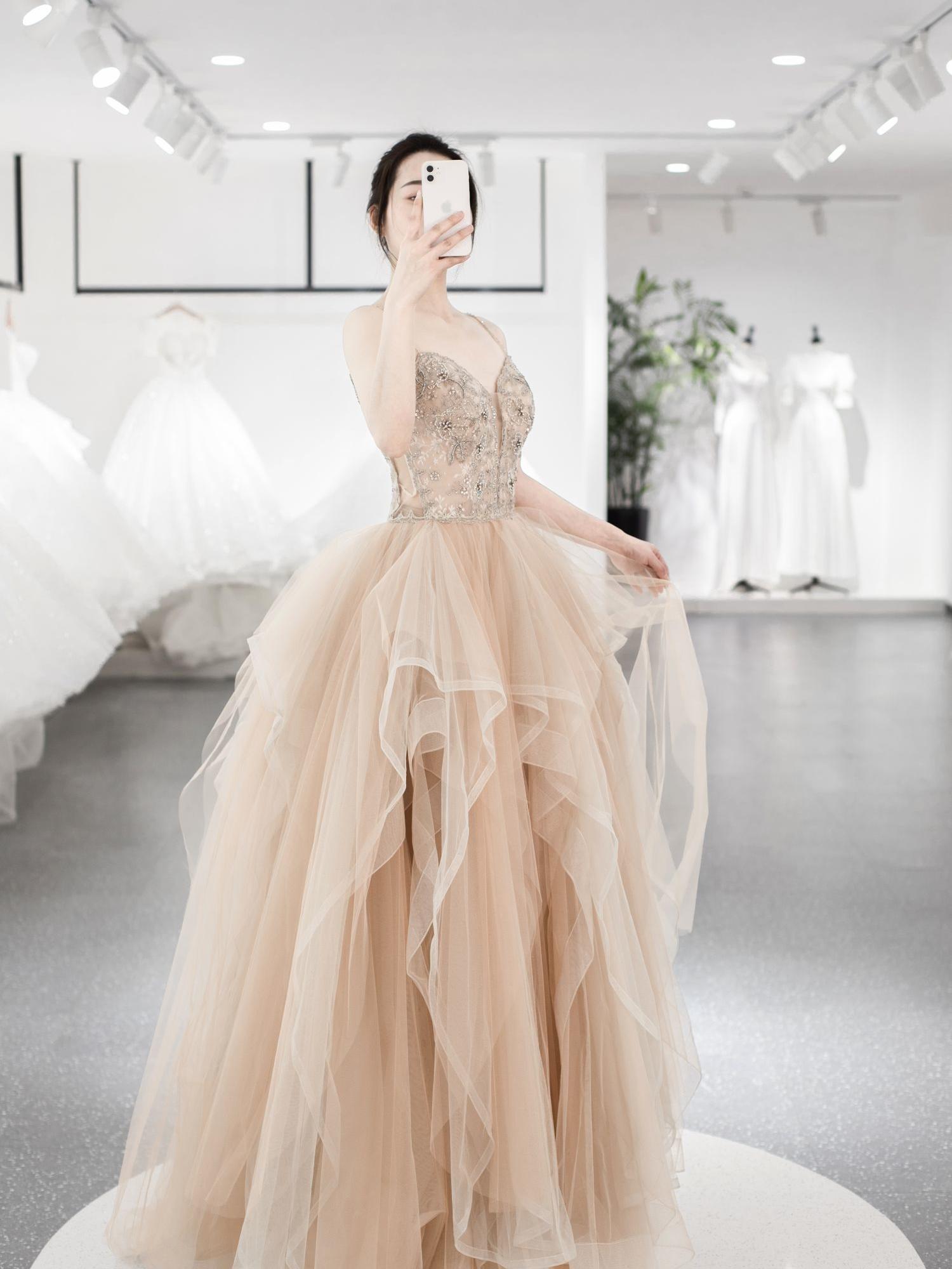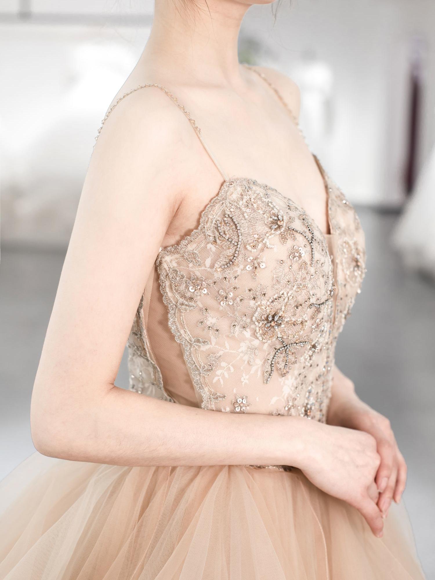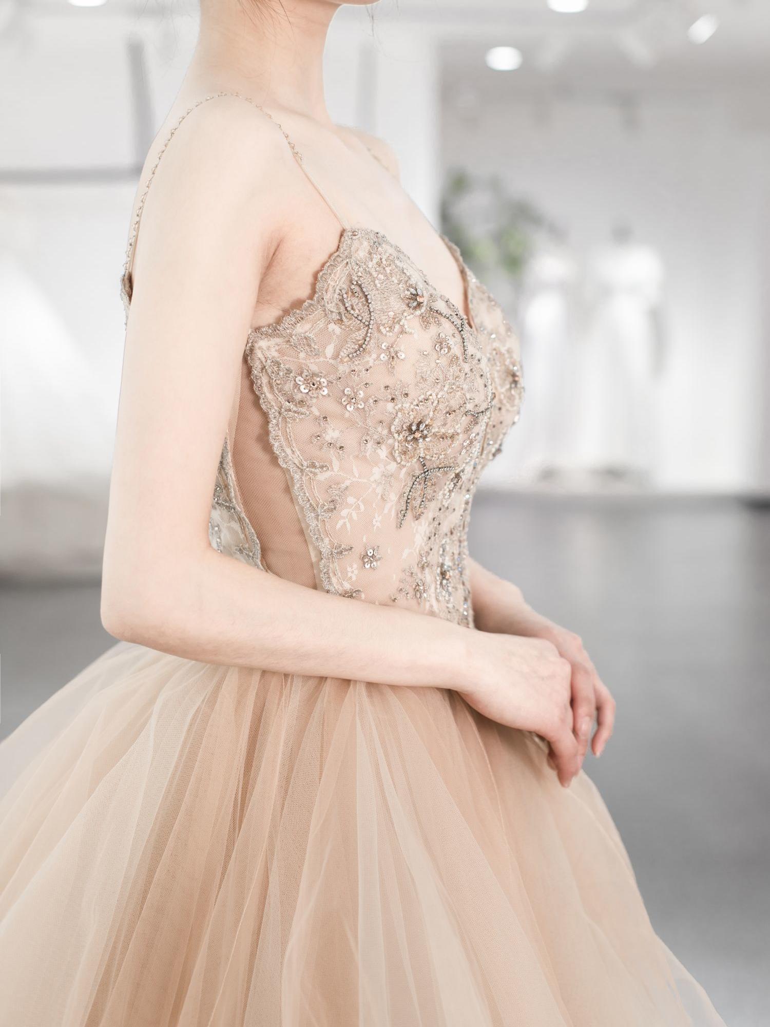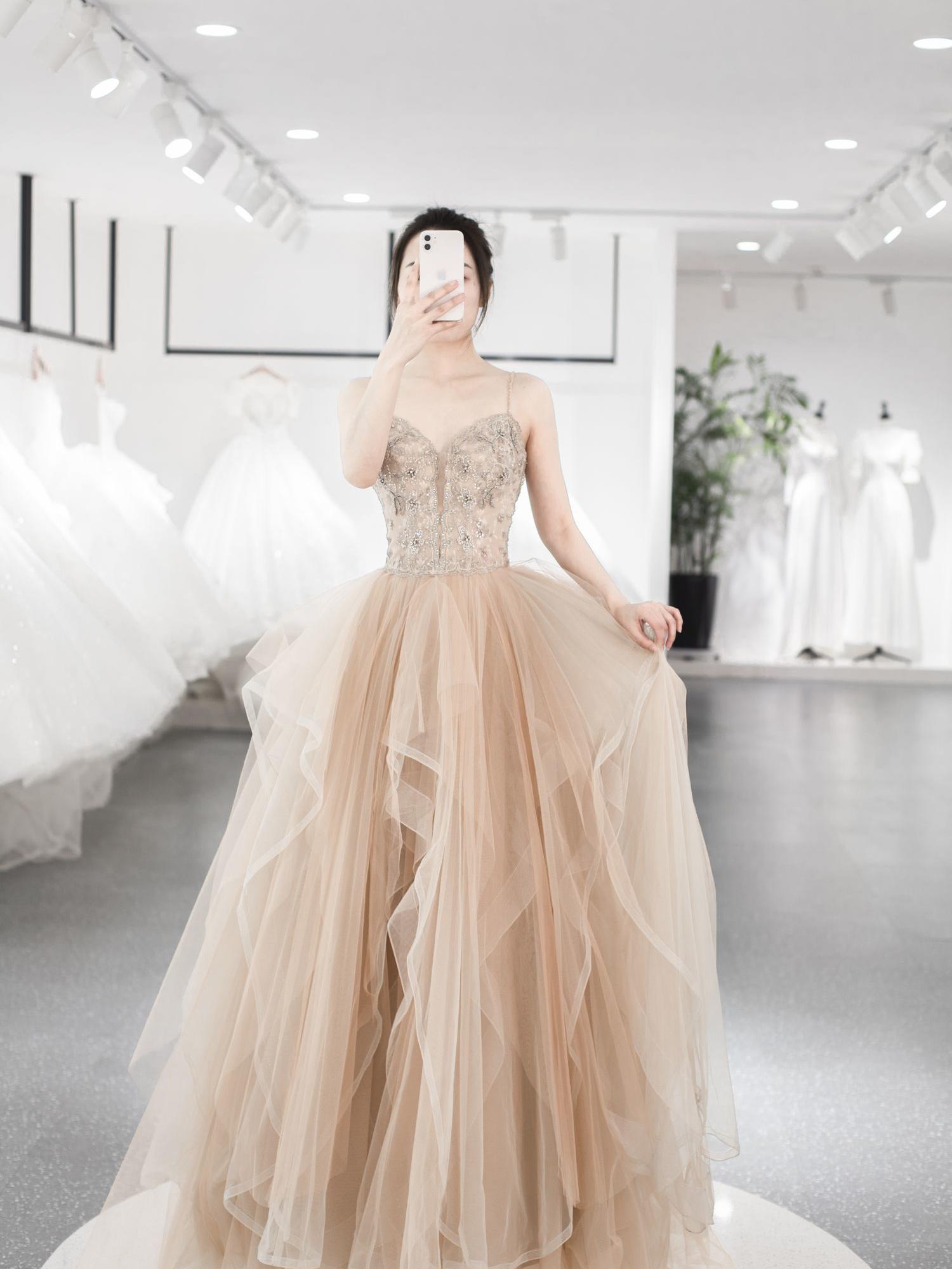 香槟色长拖尾主纱