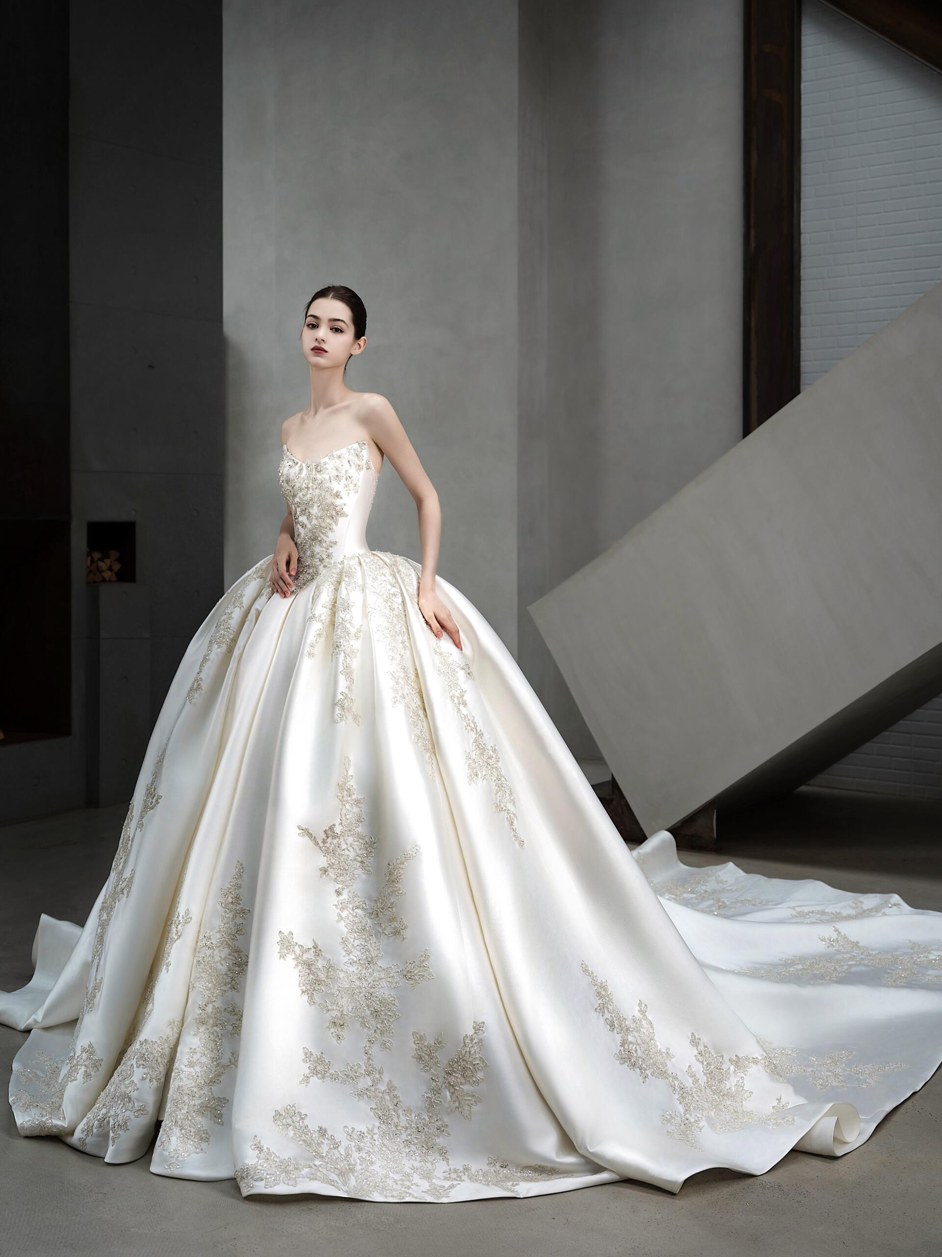 重磅缎闪婚纱