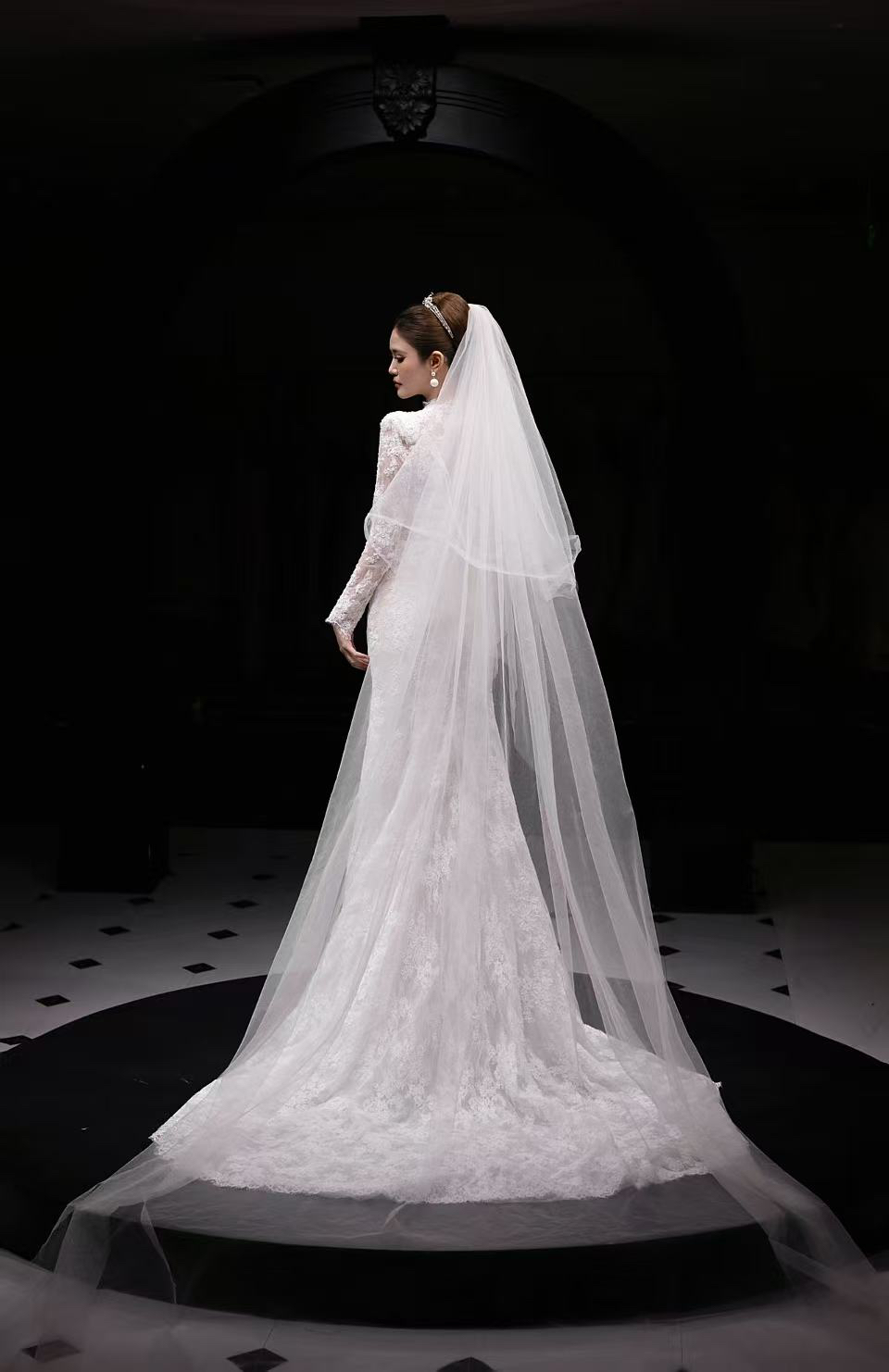 复古赫本风蕾丝鱼尾婚纱