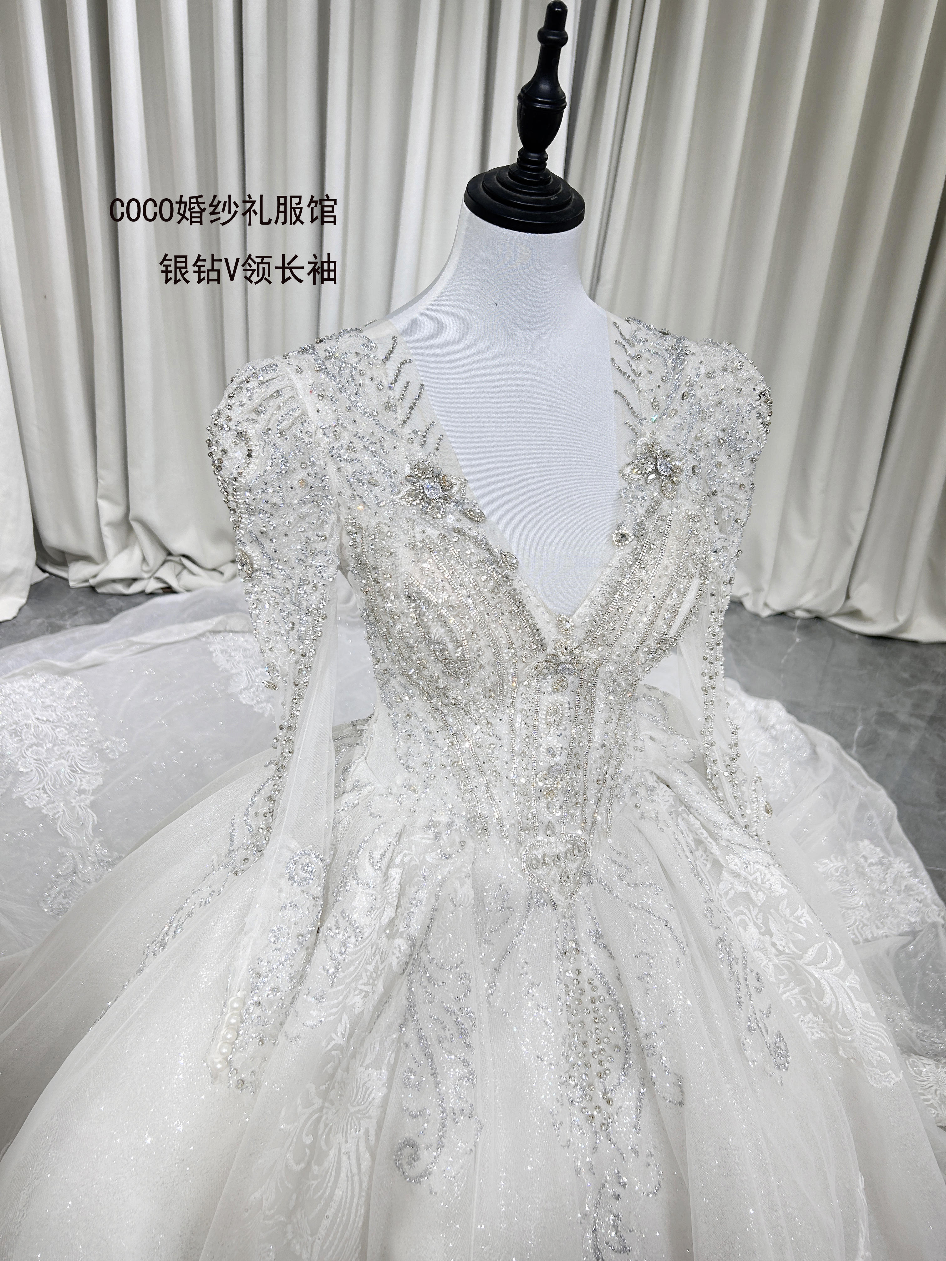 COCO拖尾银钻V领