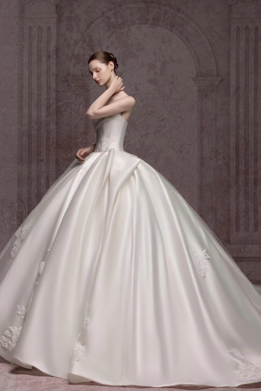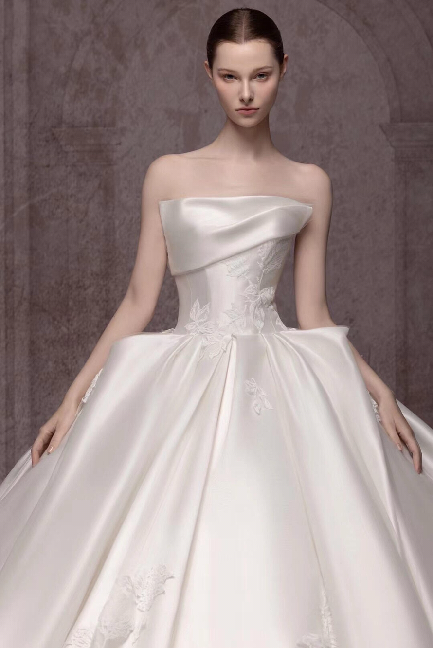 高级感满满的一字肩缎钻主纱