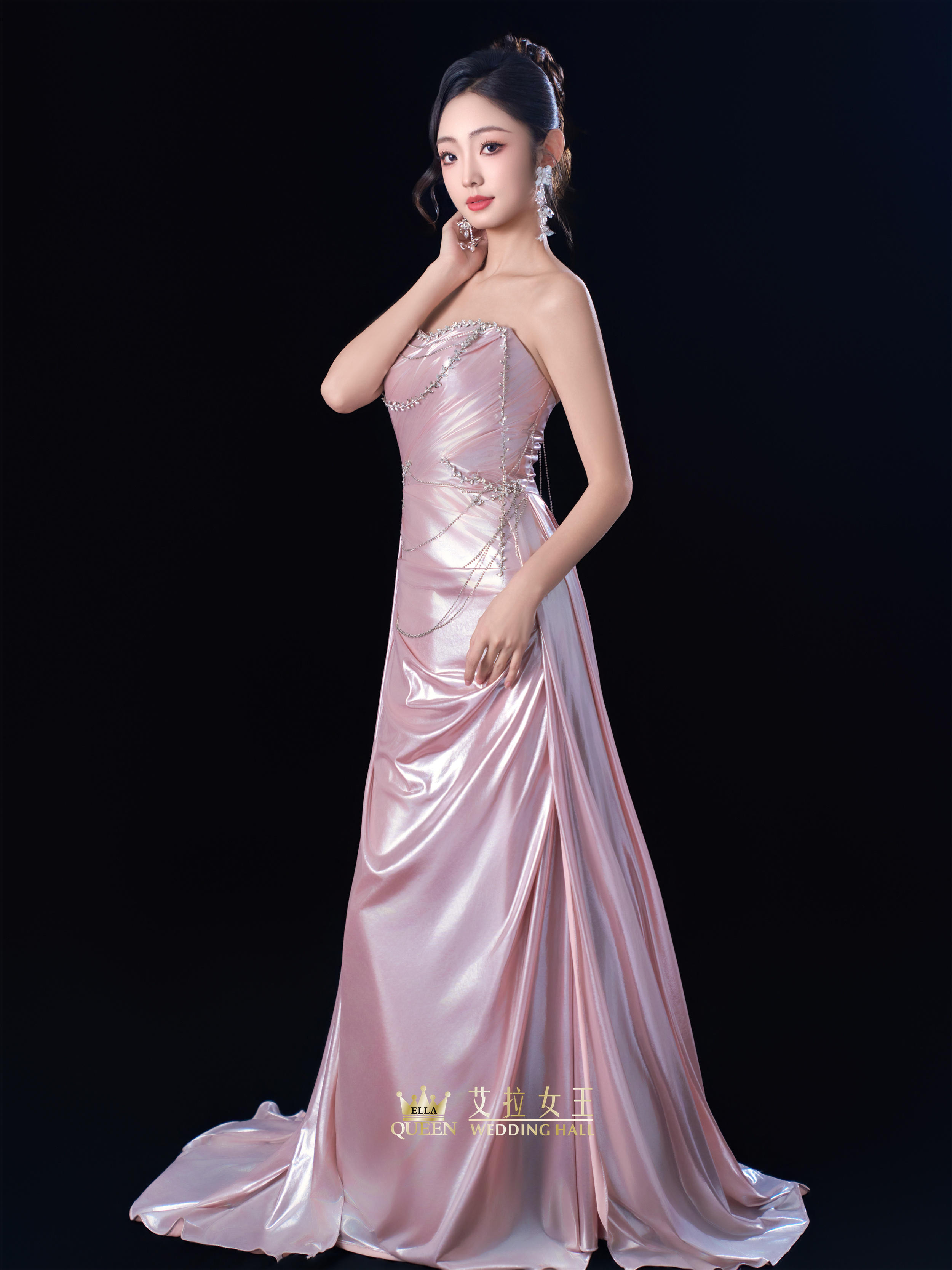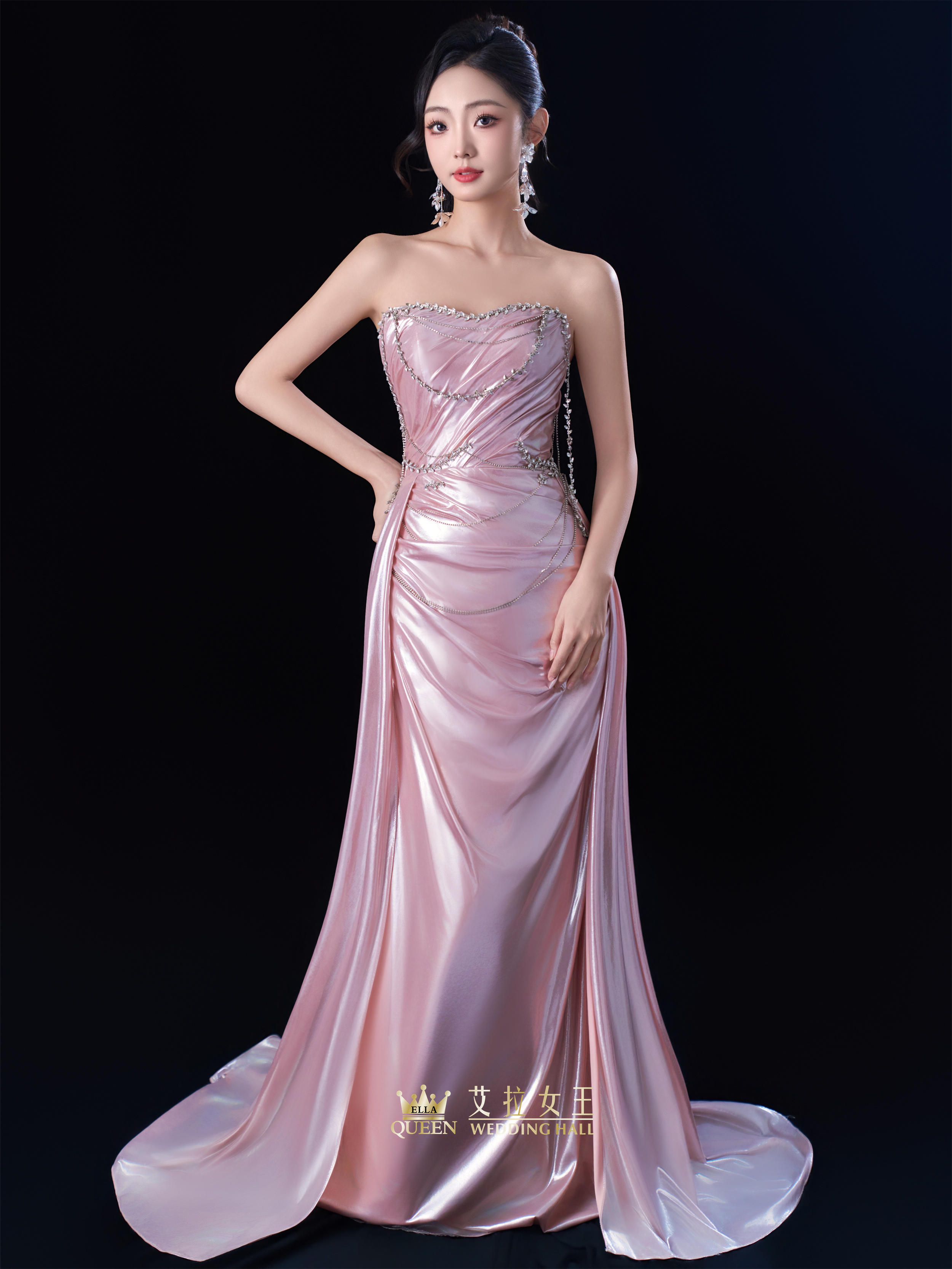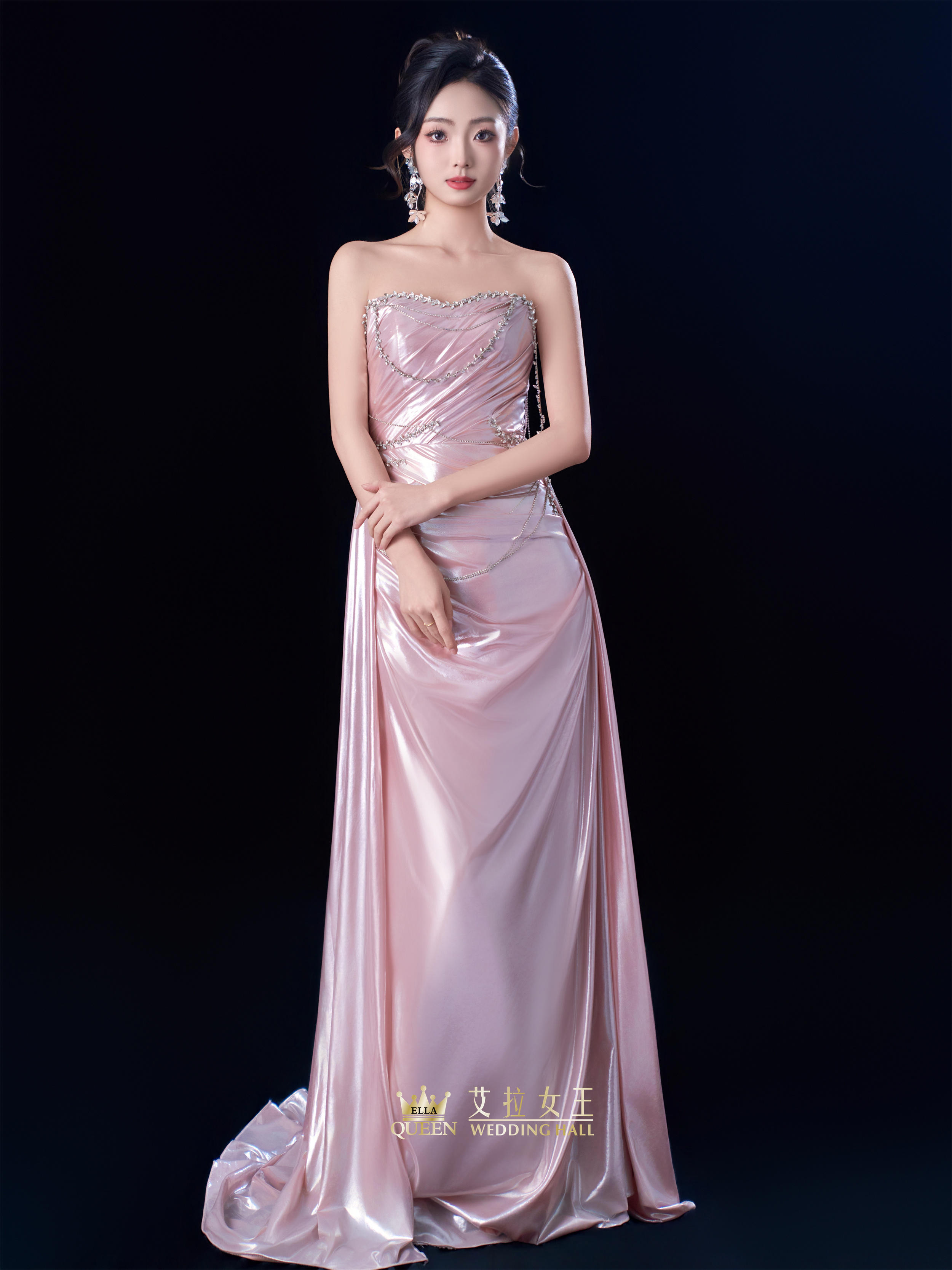 【温柔诗意】粉色流光缎面礼服裙