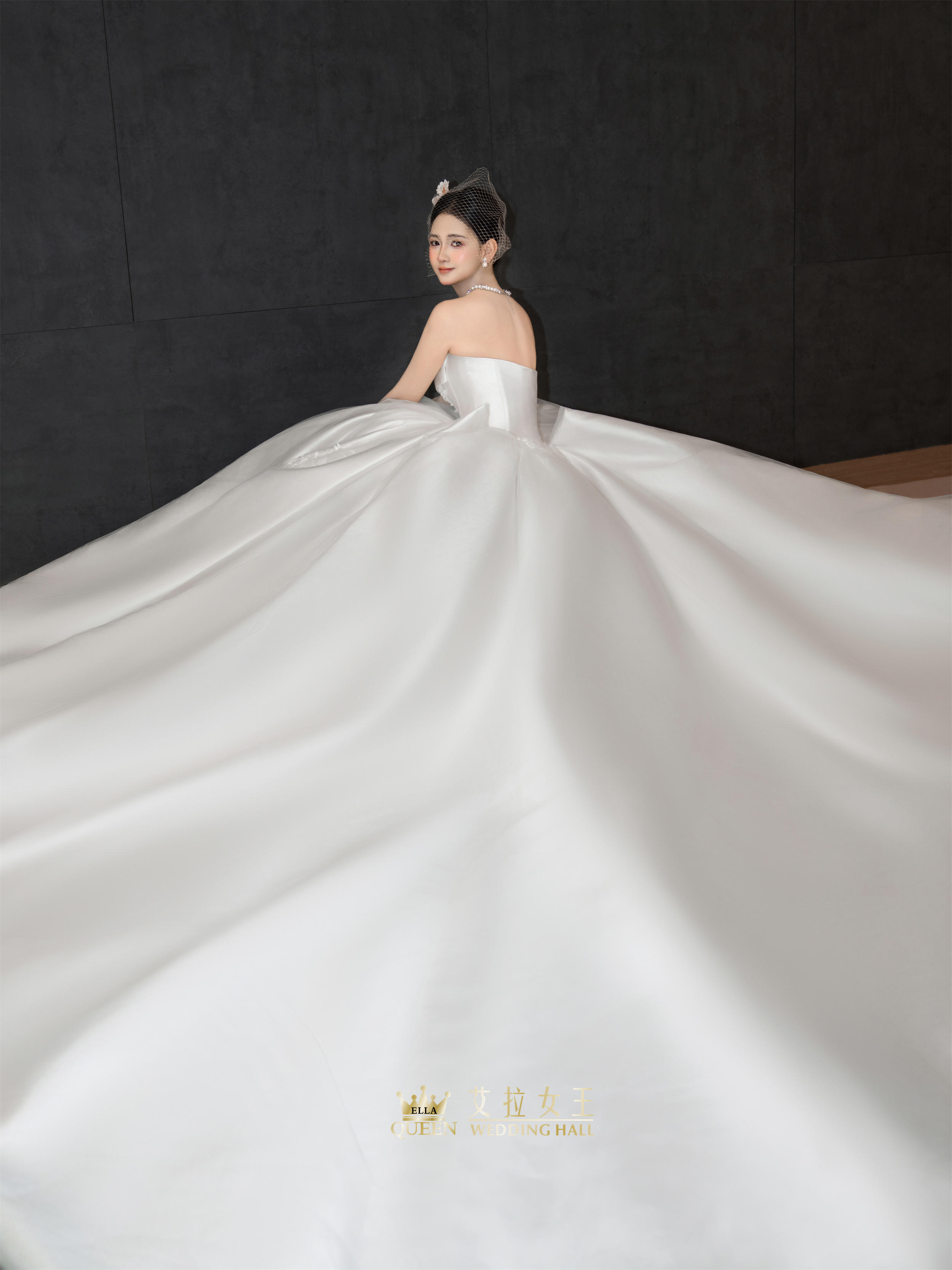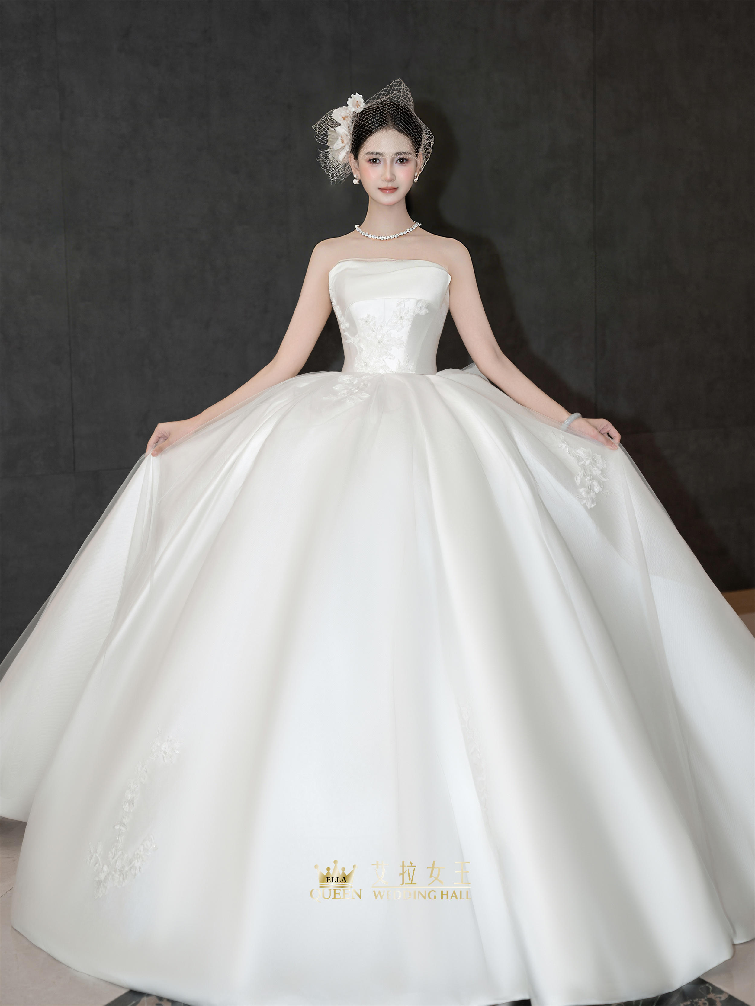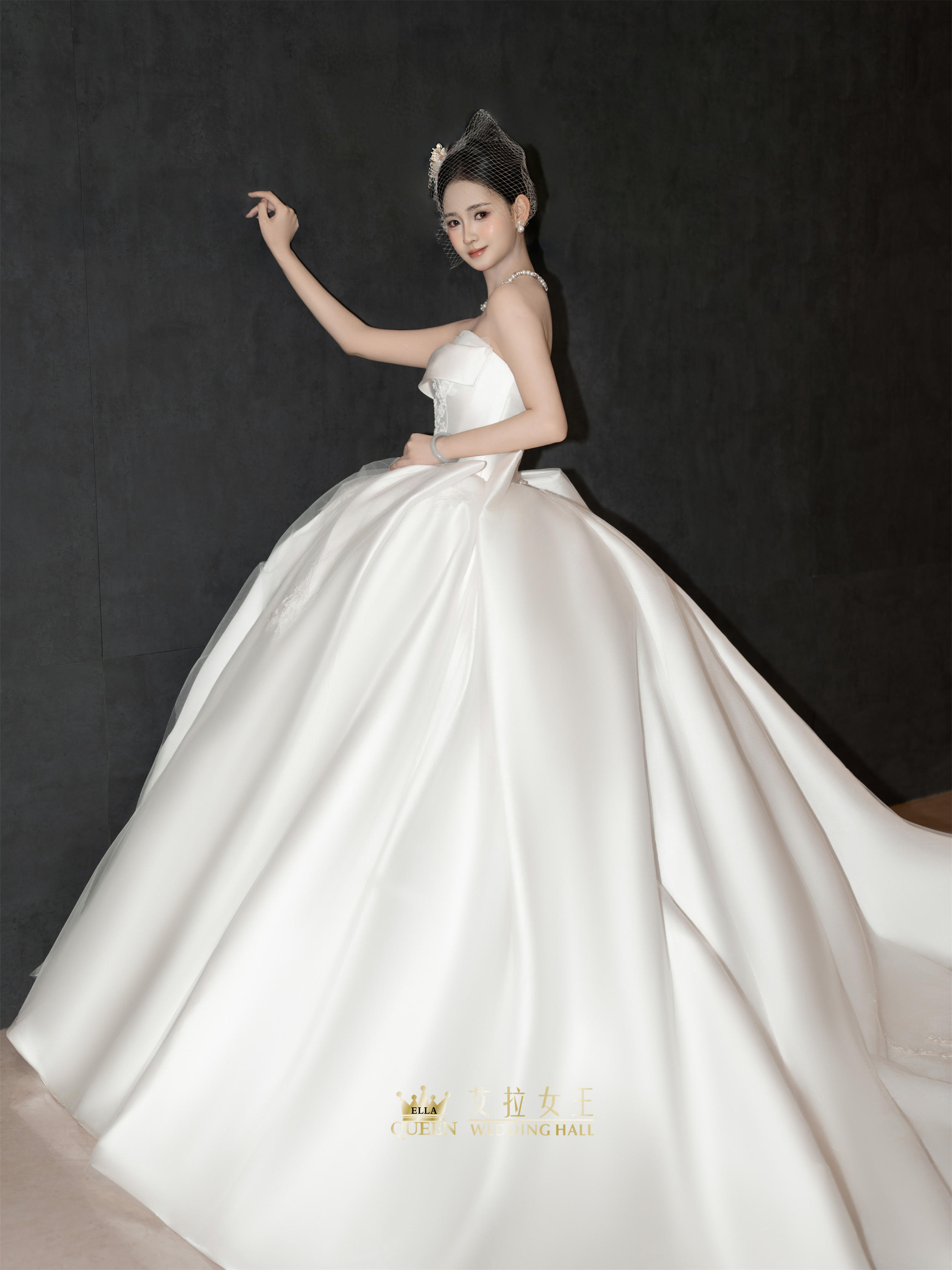 【重工新款】抹胸缎面拖尾婚纱