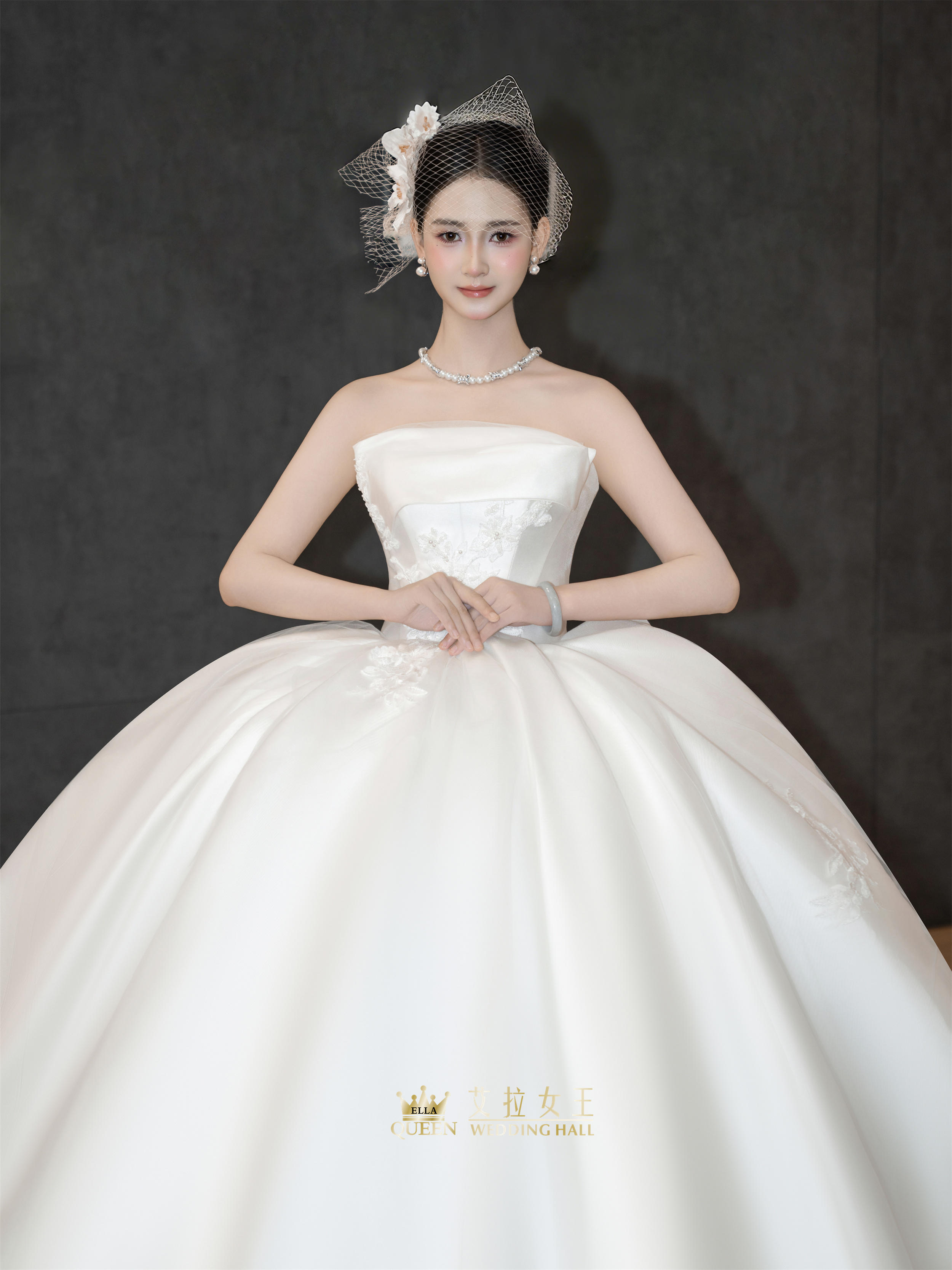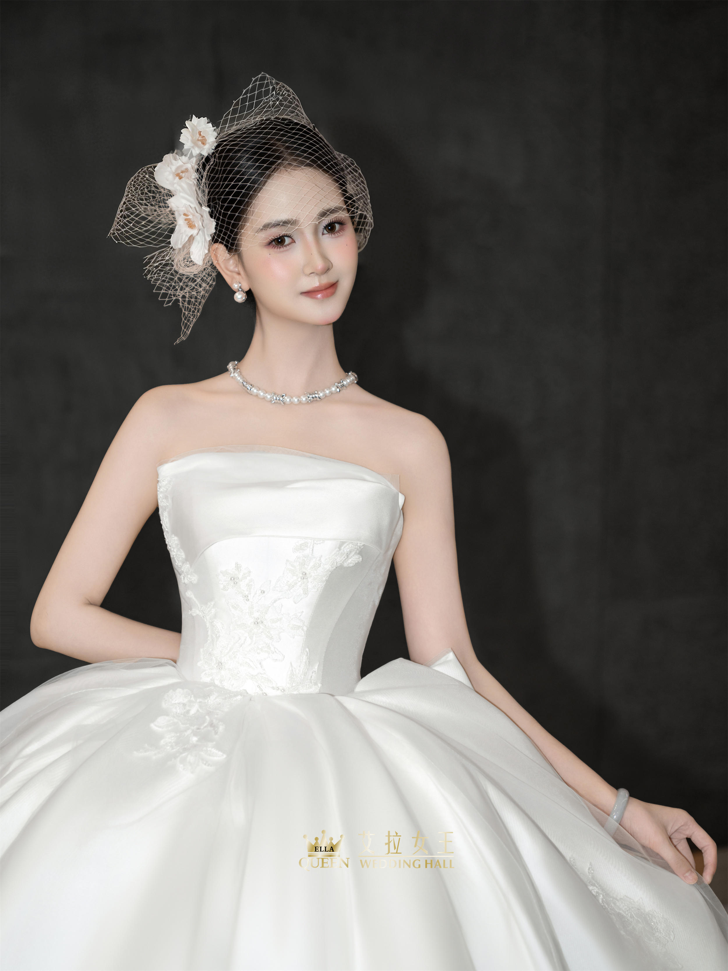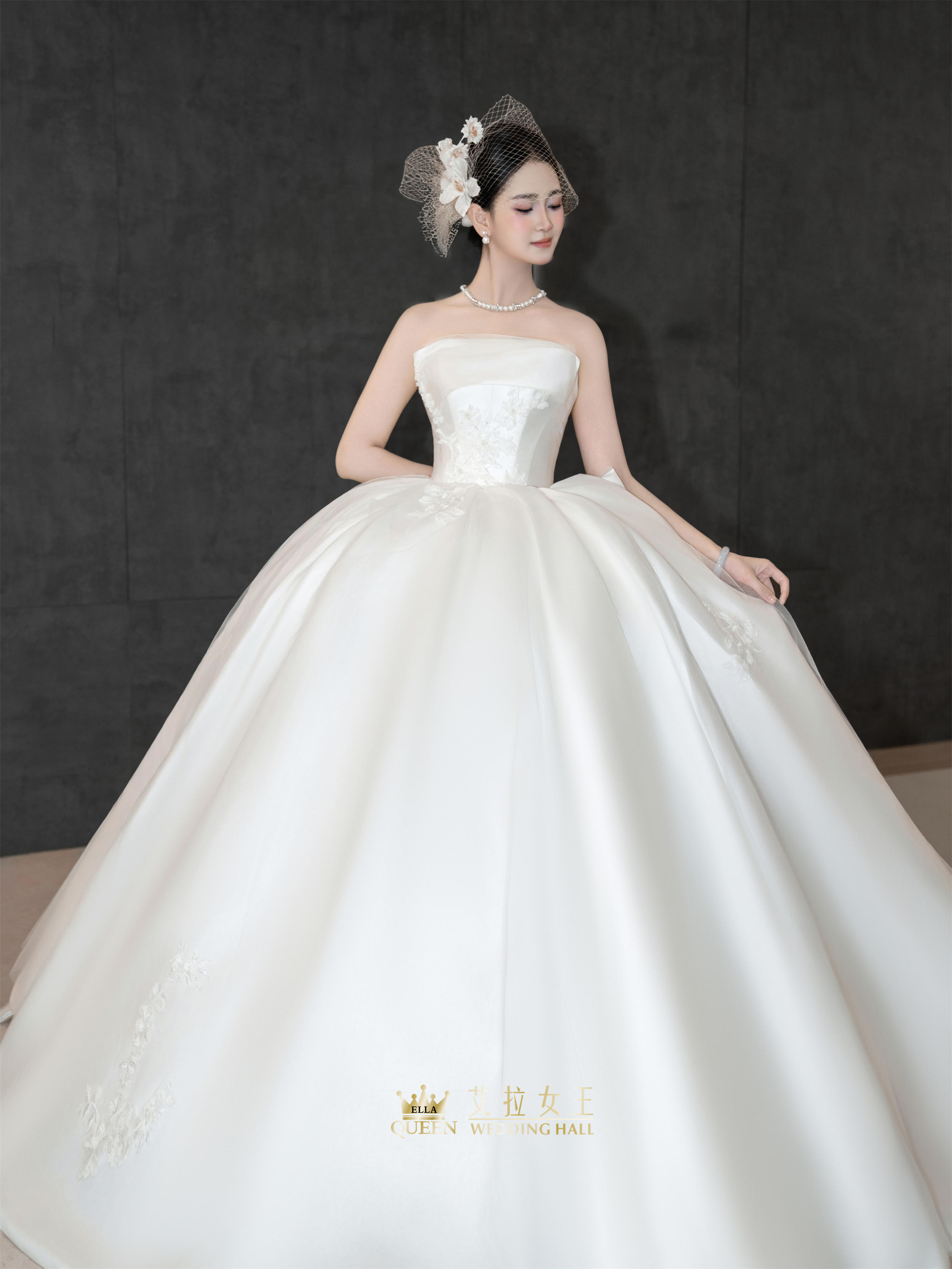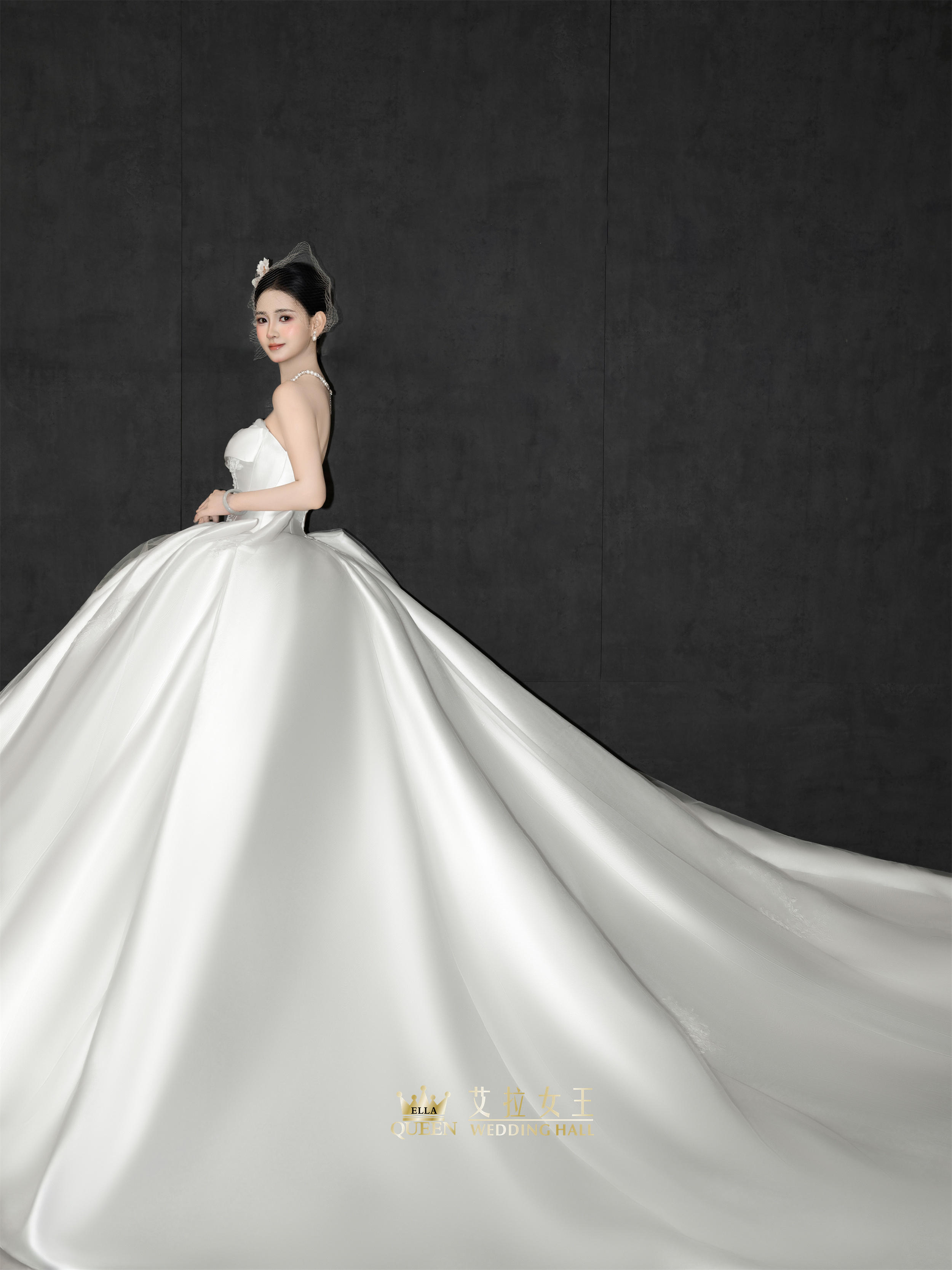 【重工新款】抹胸缎面拖尾婚纱