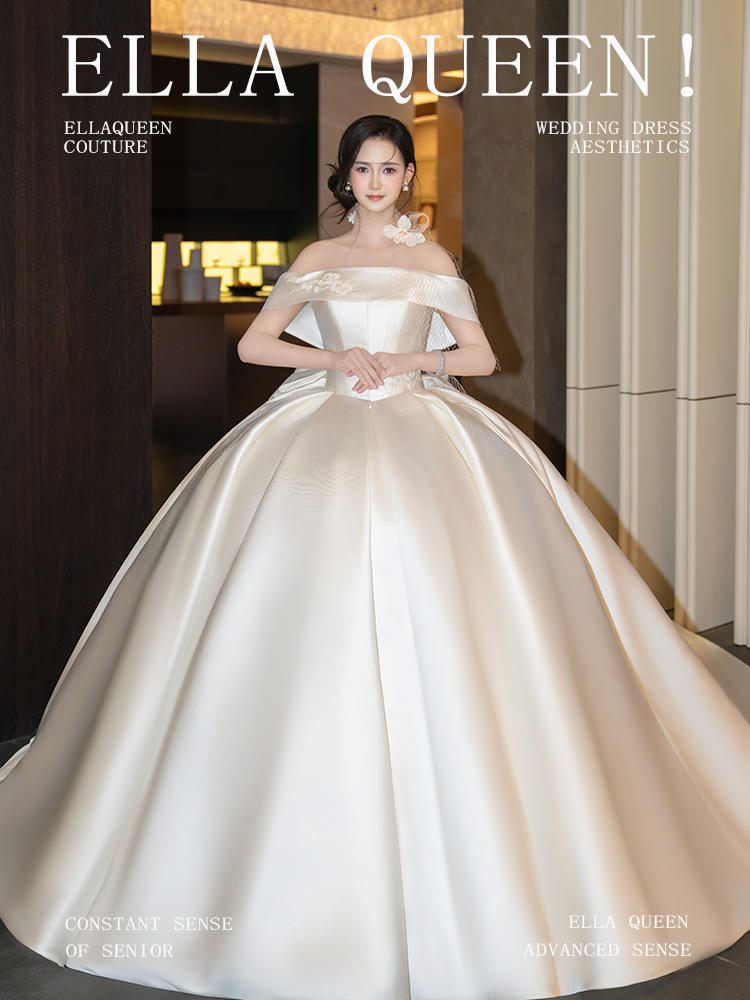 【仪式感】香槟色缎面一字肩婚纱