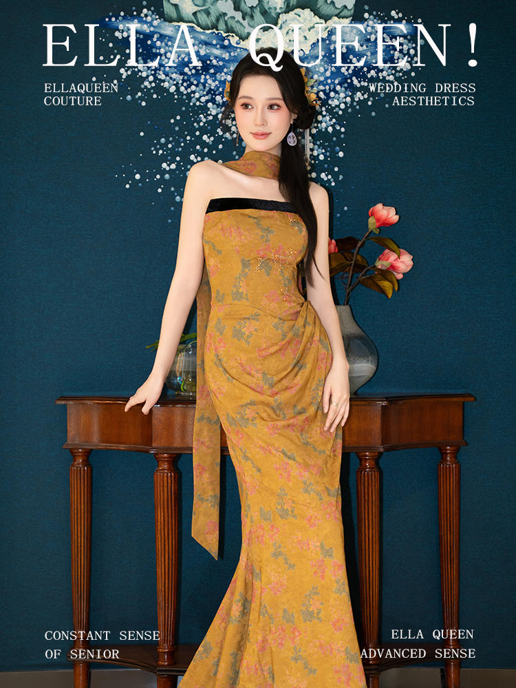 【新中式】国风抹胸飘带订婚礼服