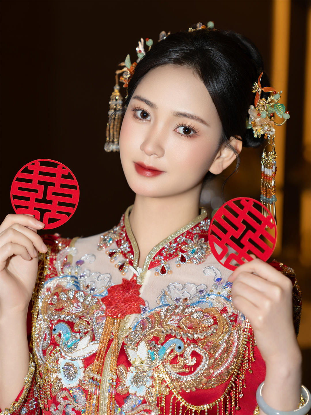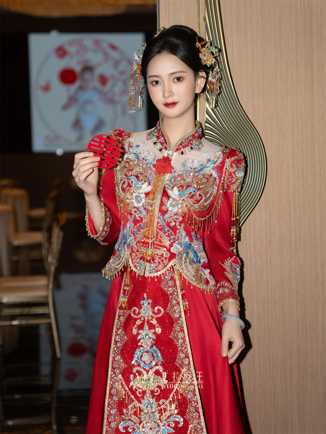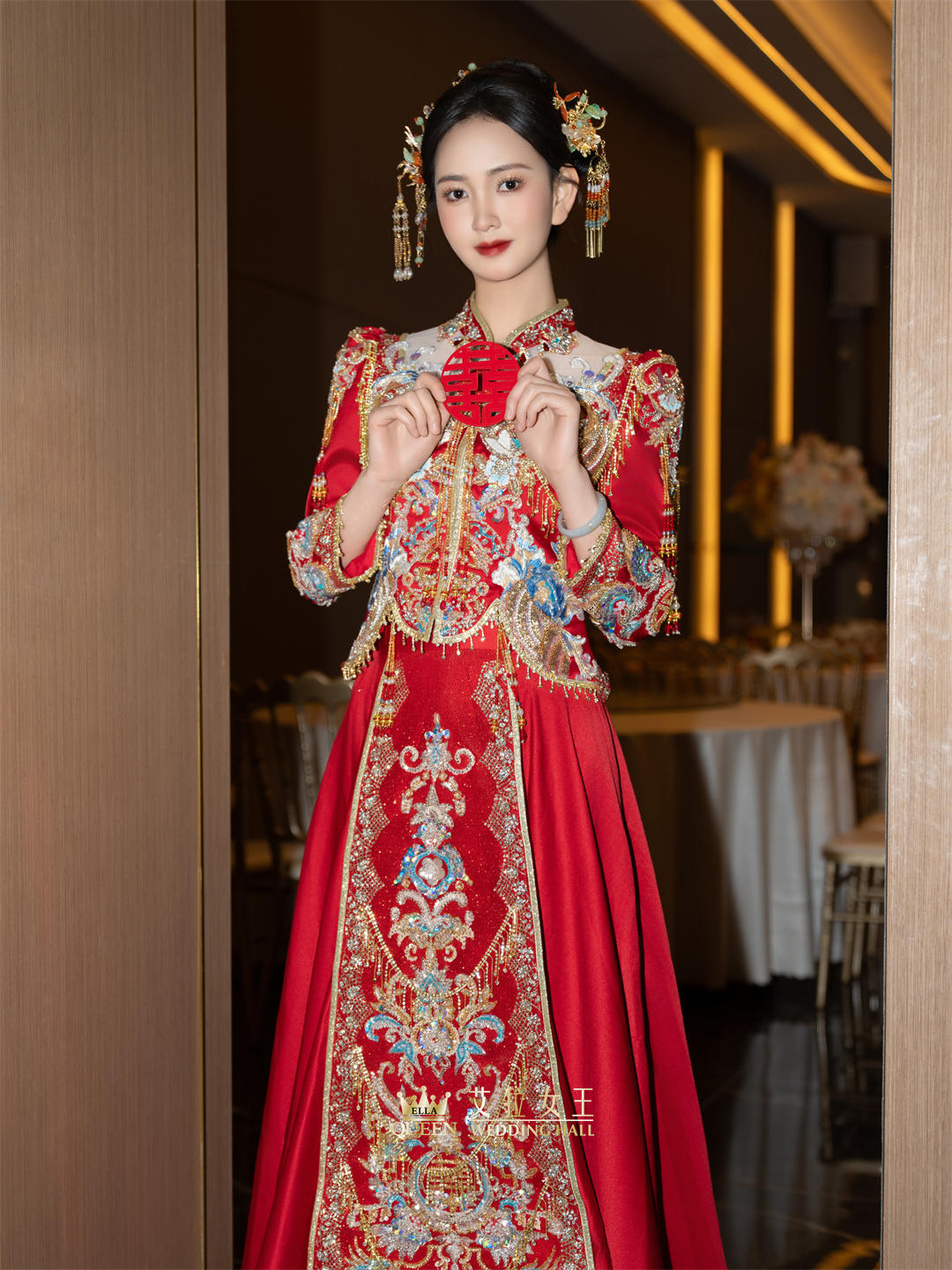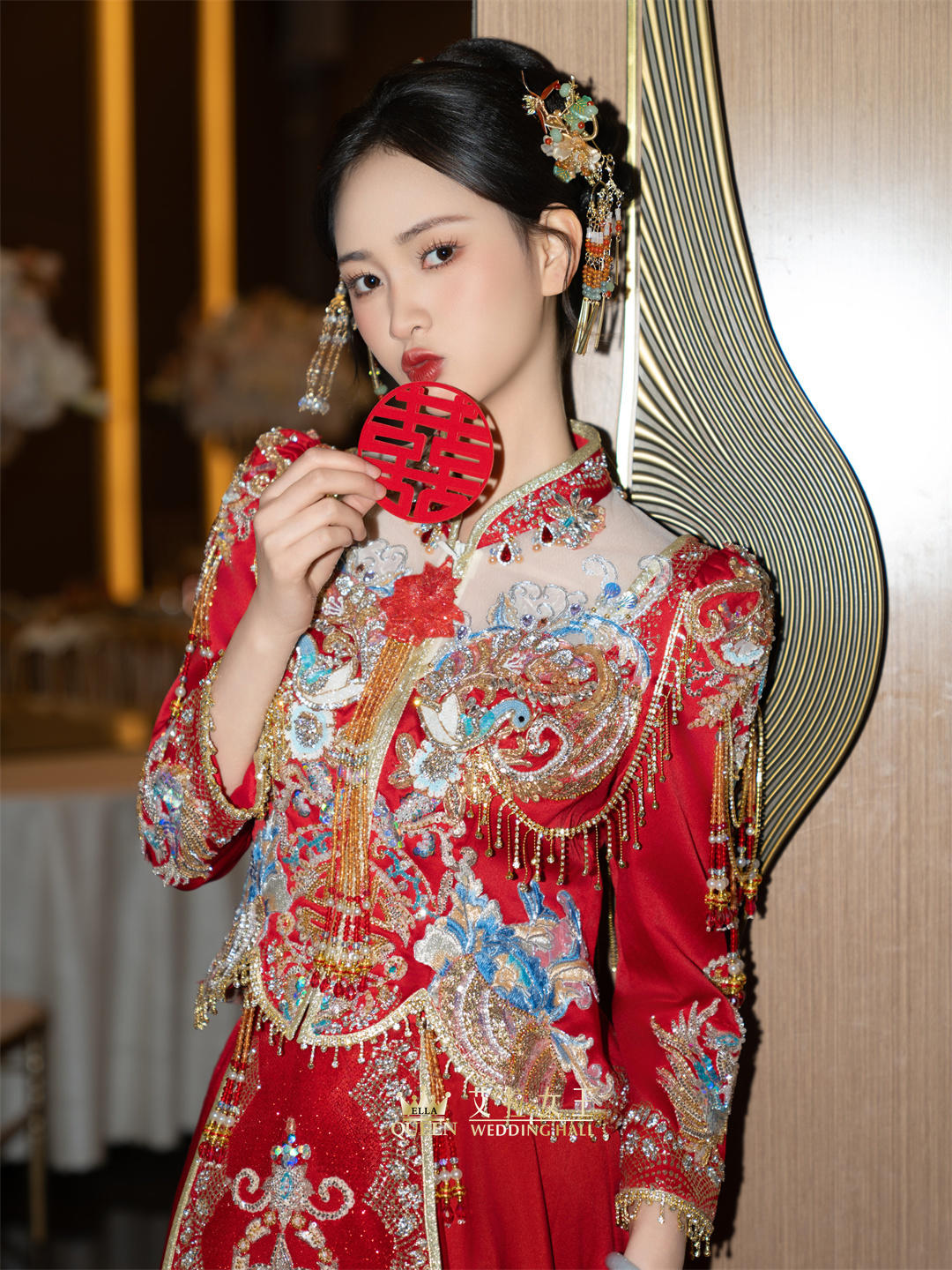 【新款】新中式红蓝撞色流苏秀禾服
