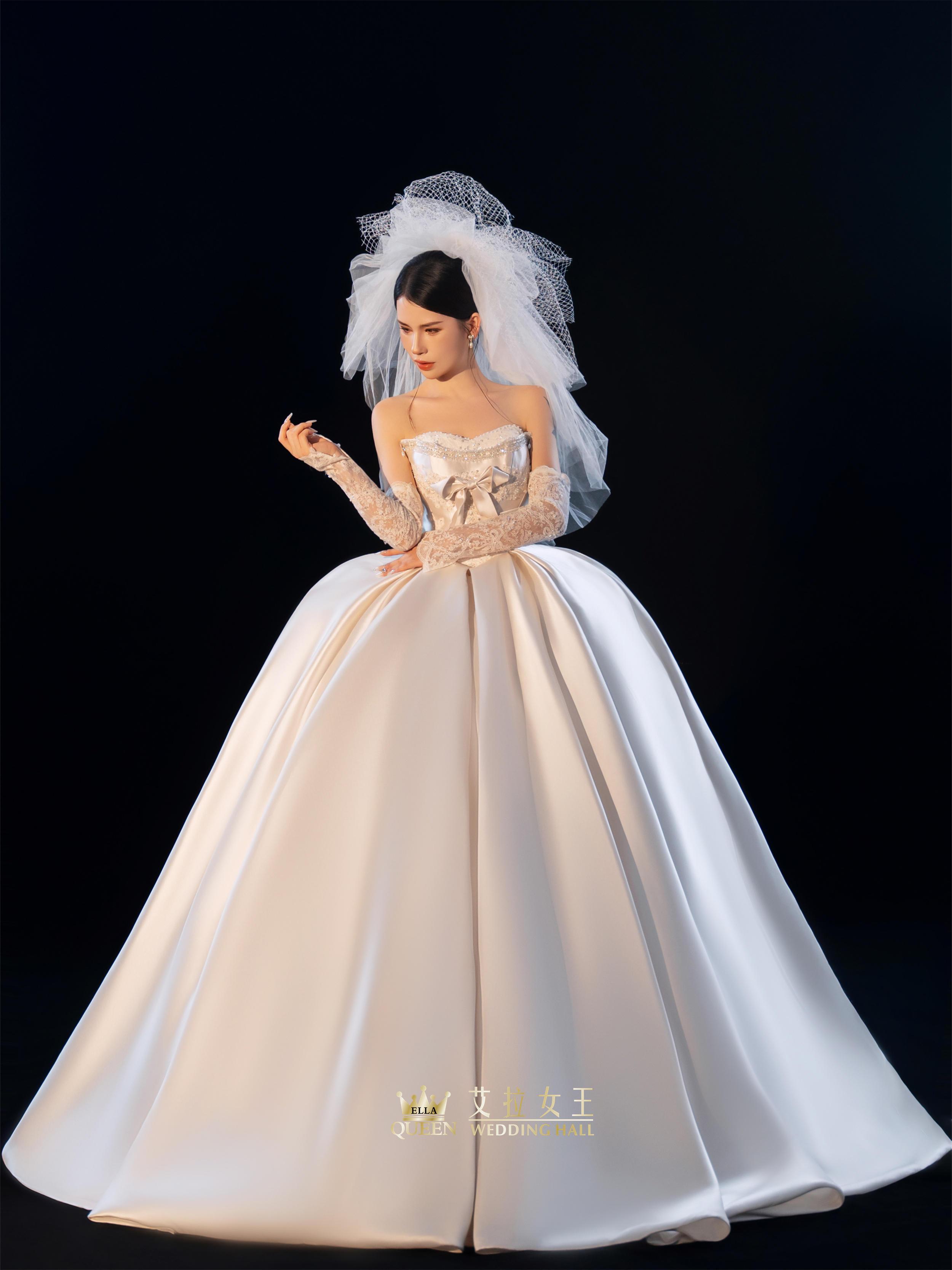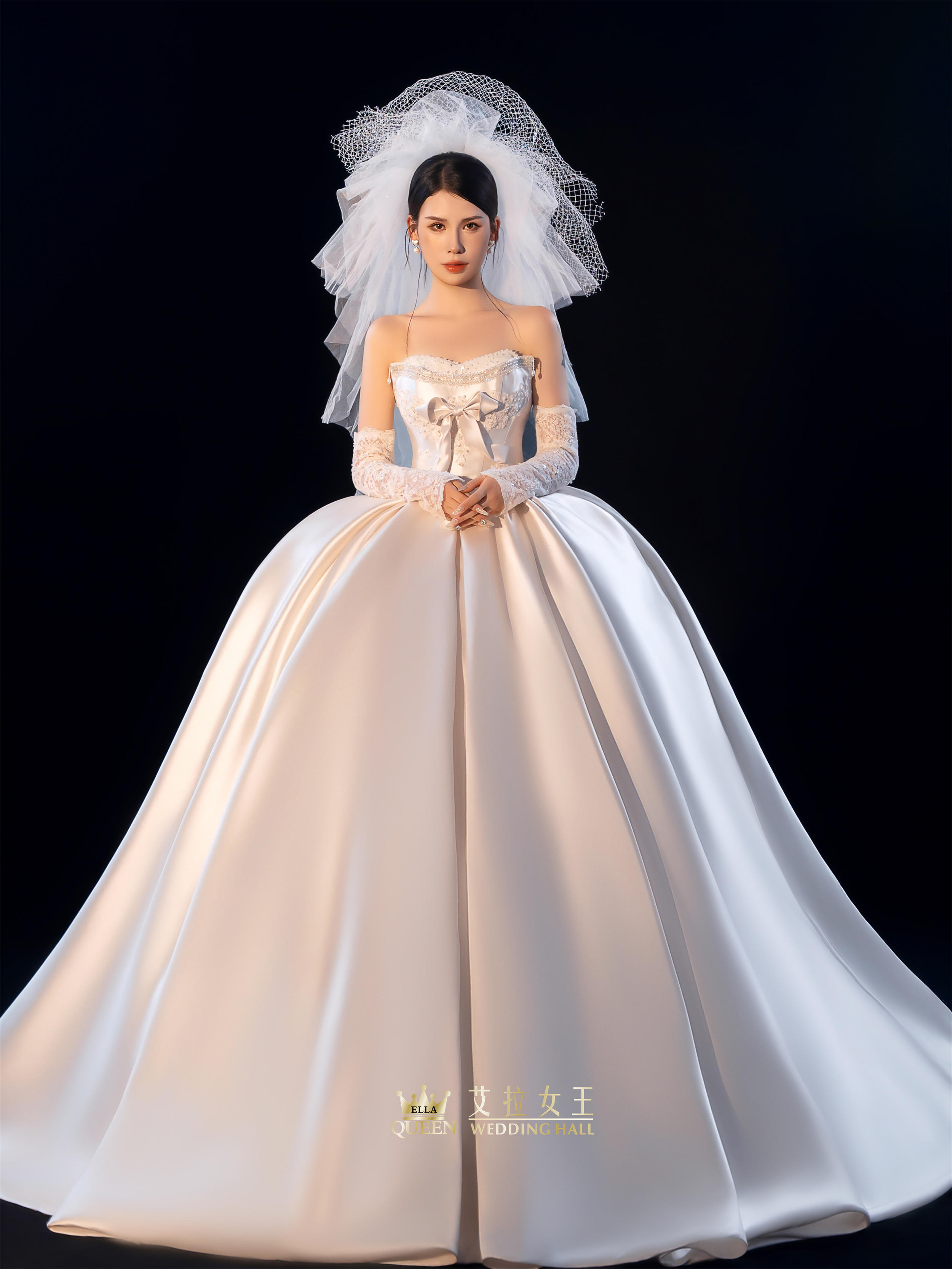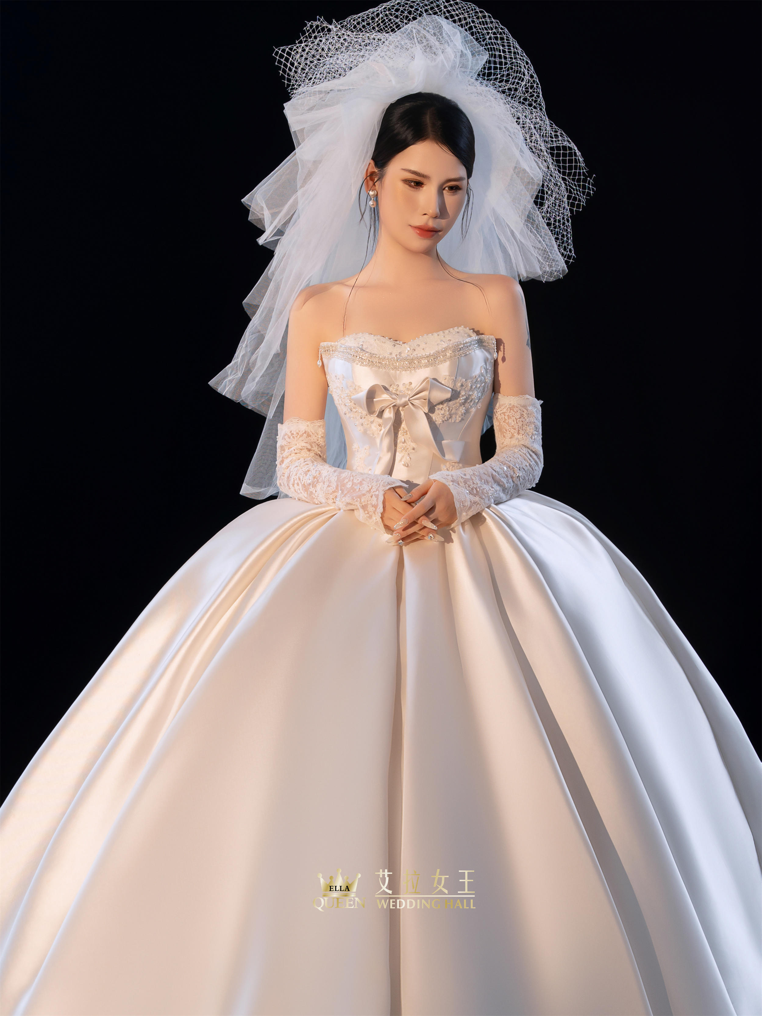 【甜美公主风】抹胸蝴蝶结缎面婚纱