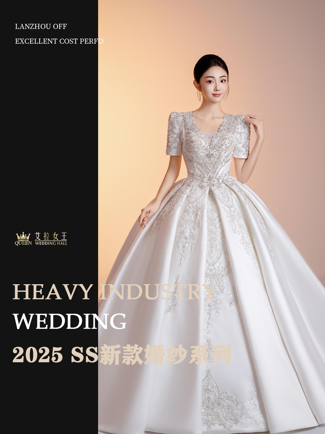 【一眼沦陷】短袖V领缎面拖尾婚纱