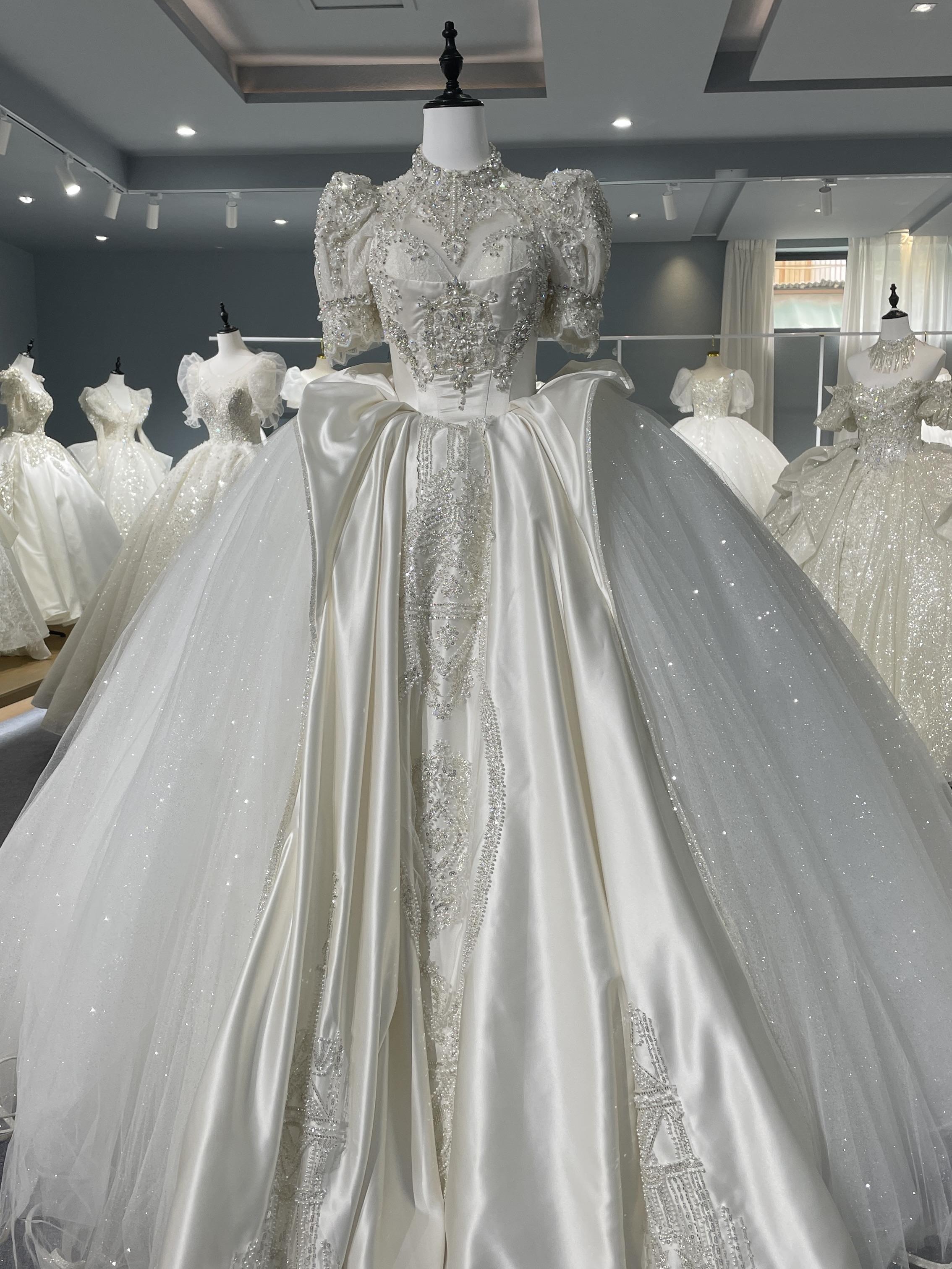 珠光亮片重工长拖尾婚纱