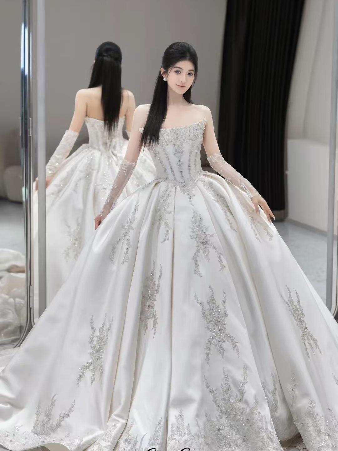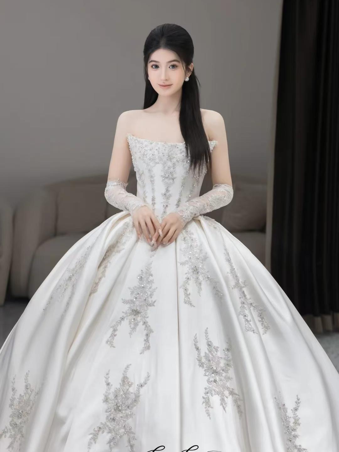 【白芷婚纱】抹胸缎面婚纱