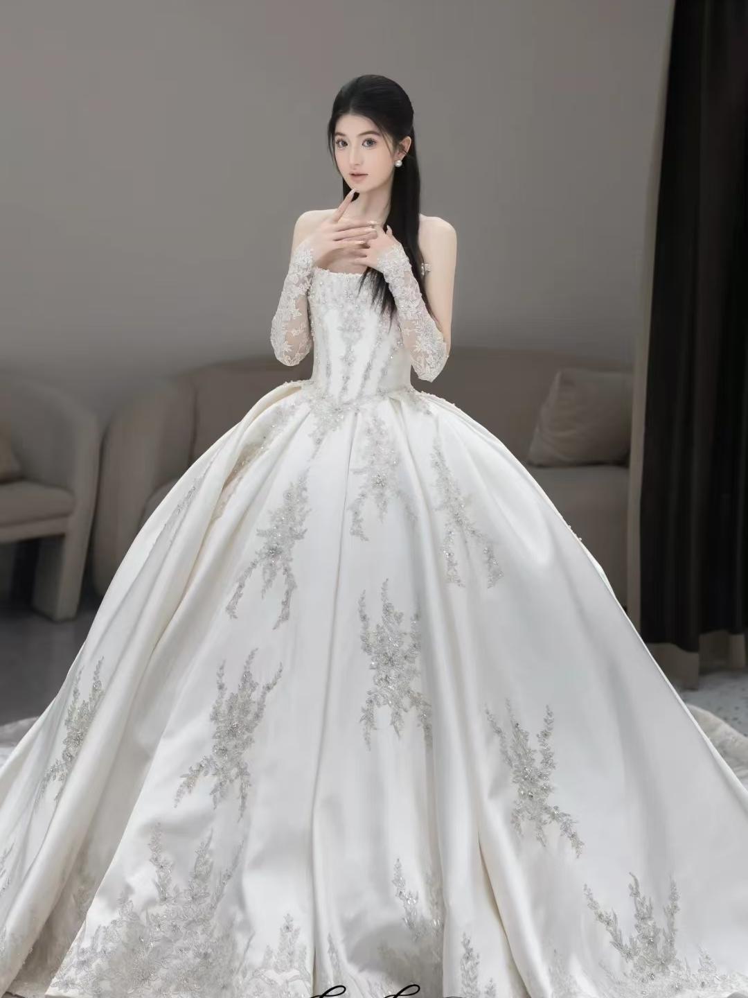 【白芷婚纱】轻奢风缎钻主纱