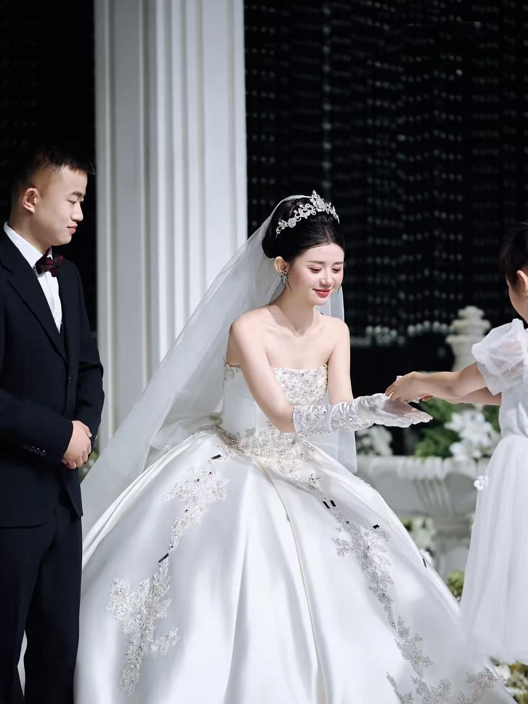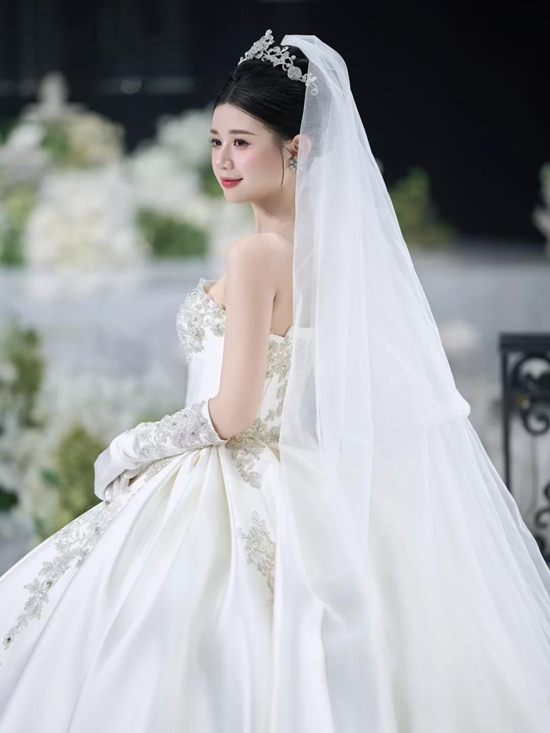 【白芷婚纱】重工缎钻抹胸主纱
