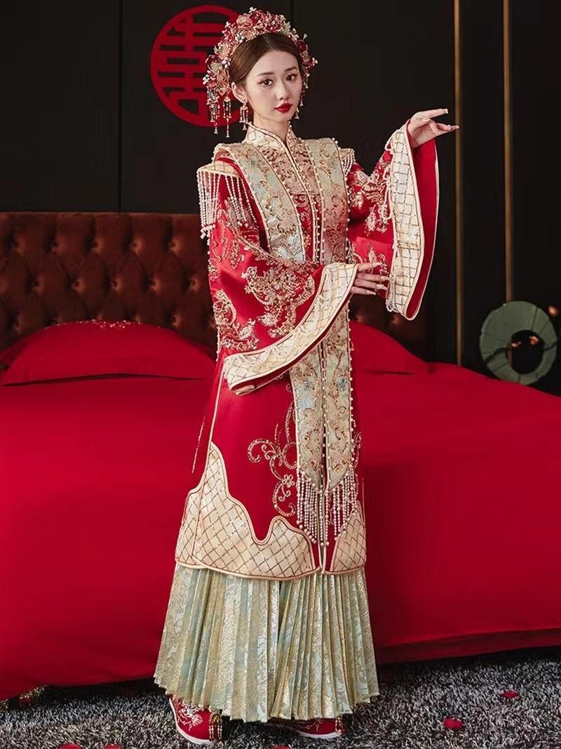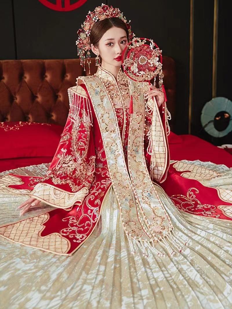 菲雅婚纱手工刺绣中式秀禾