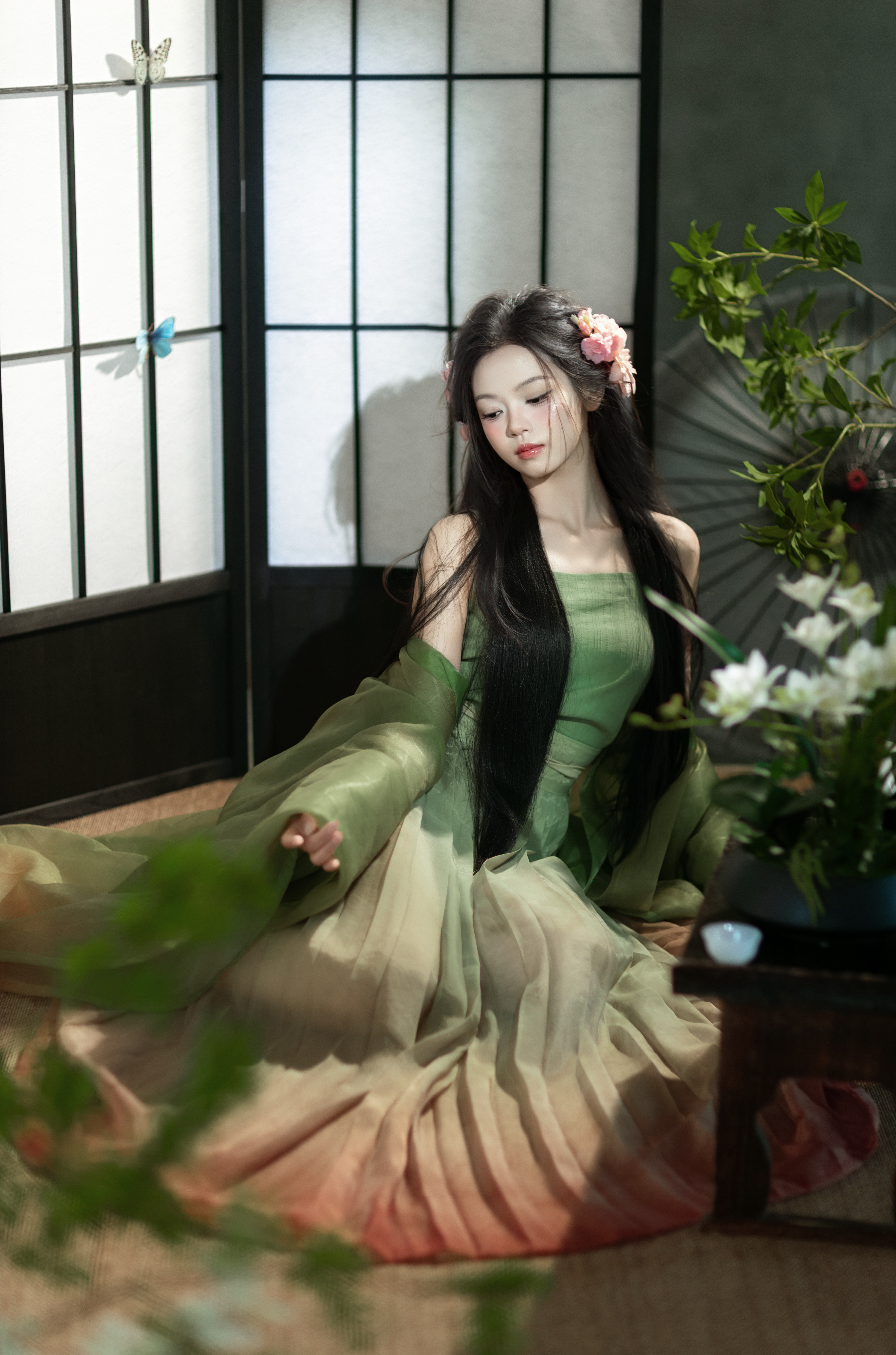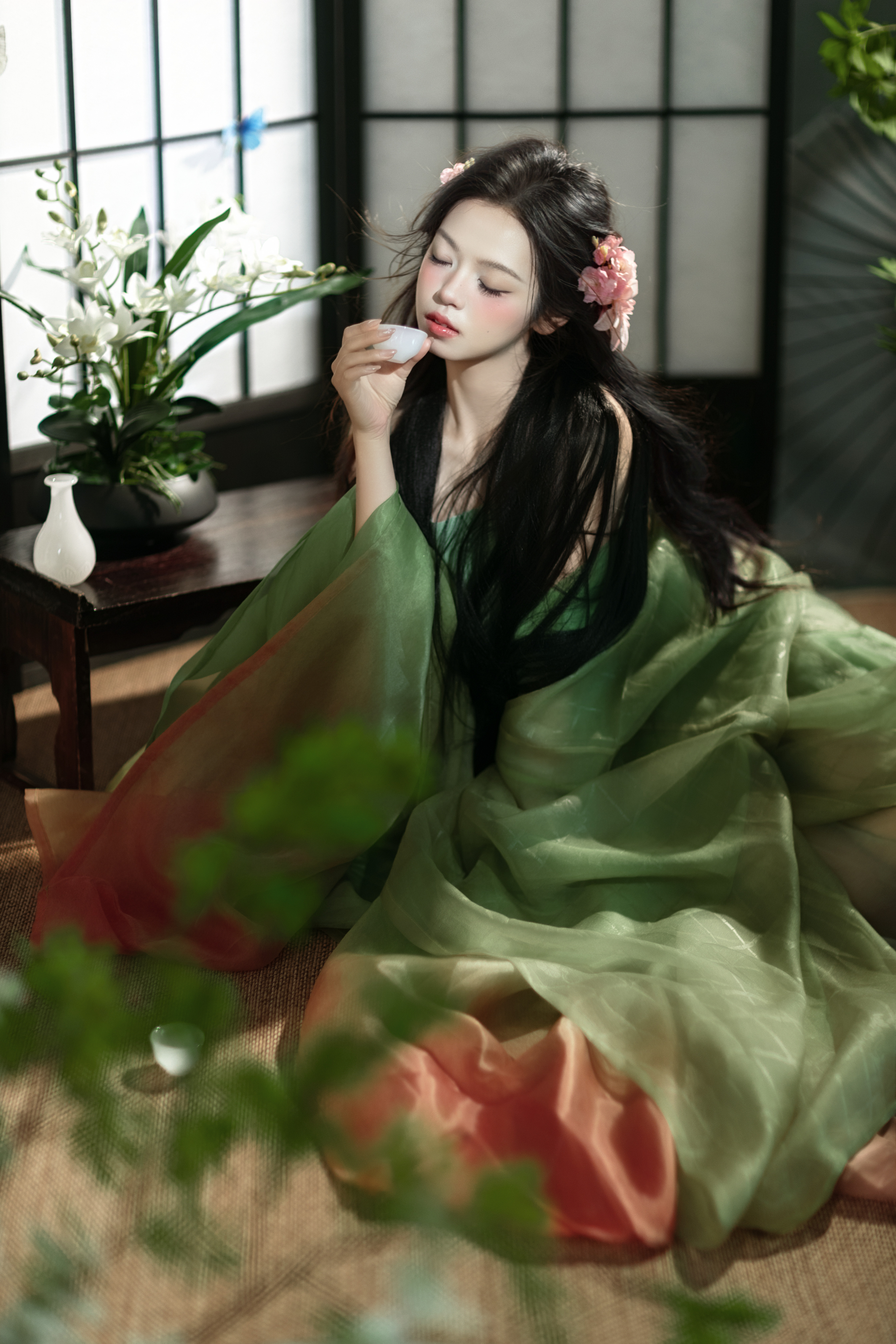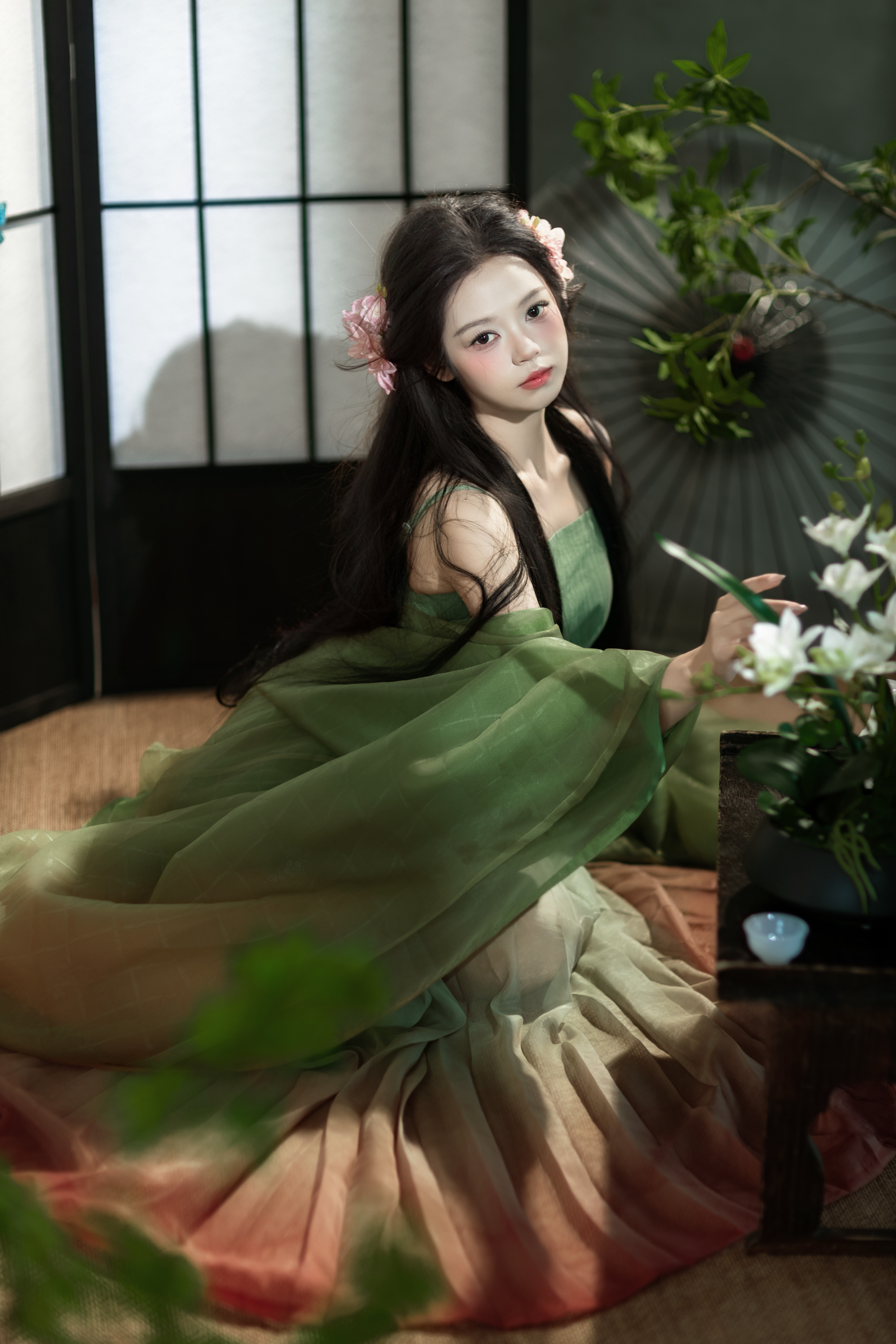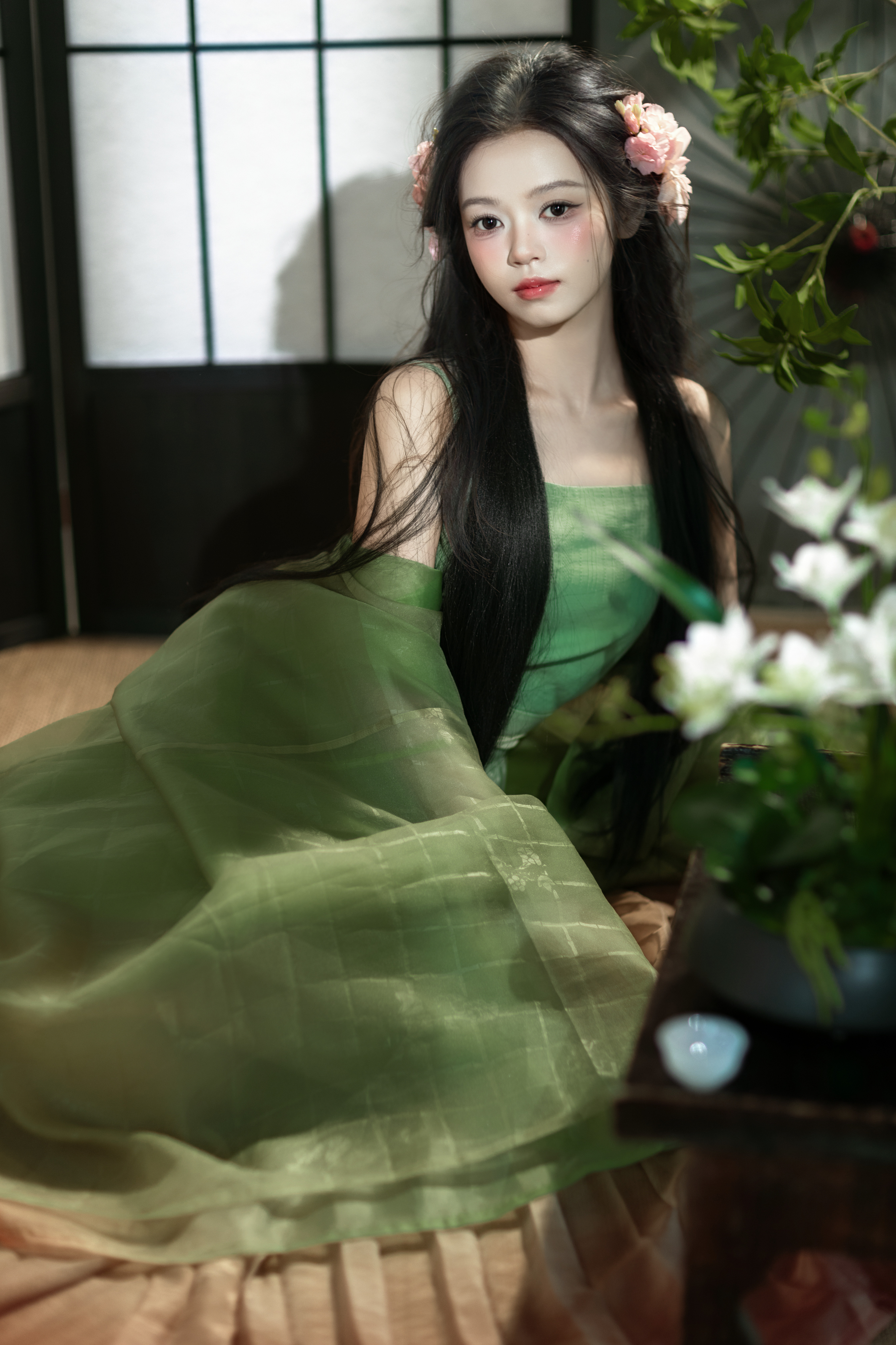 新中式汉服清冷绿