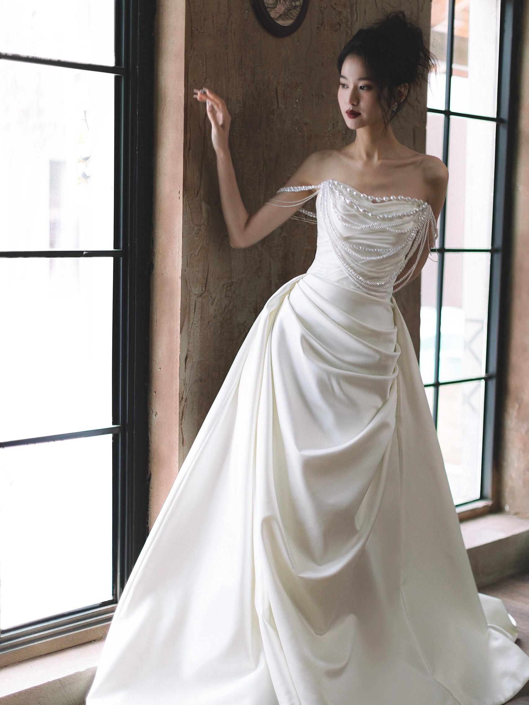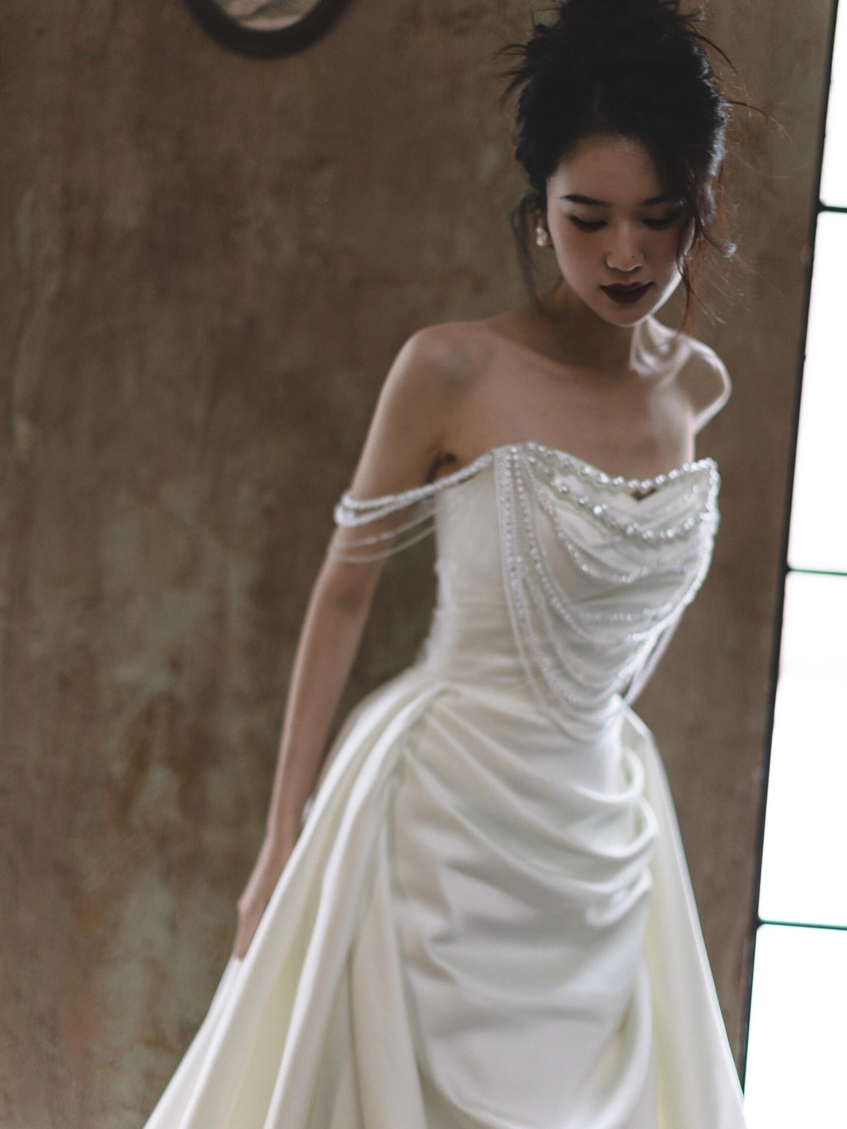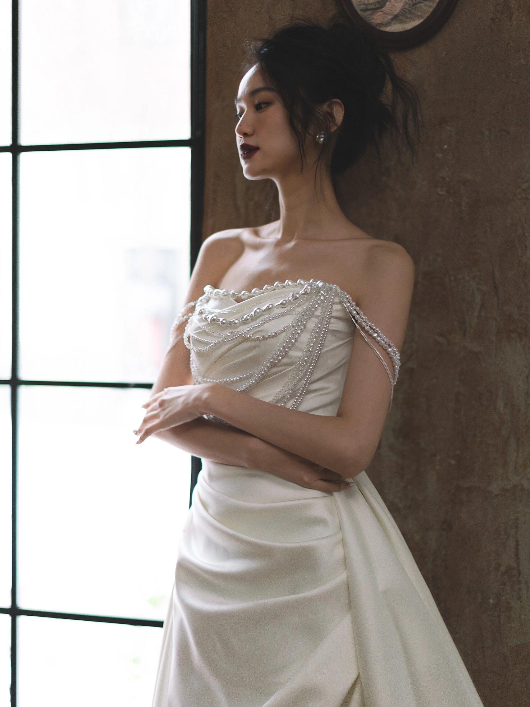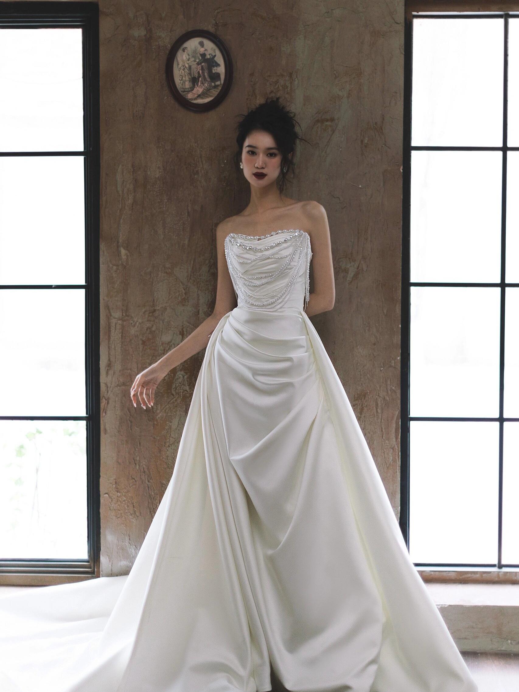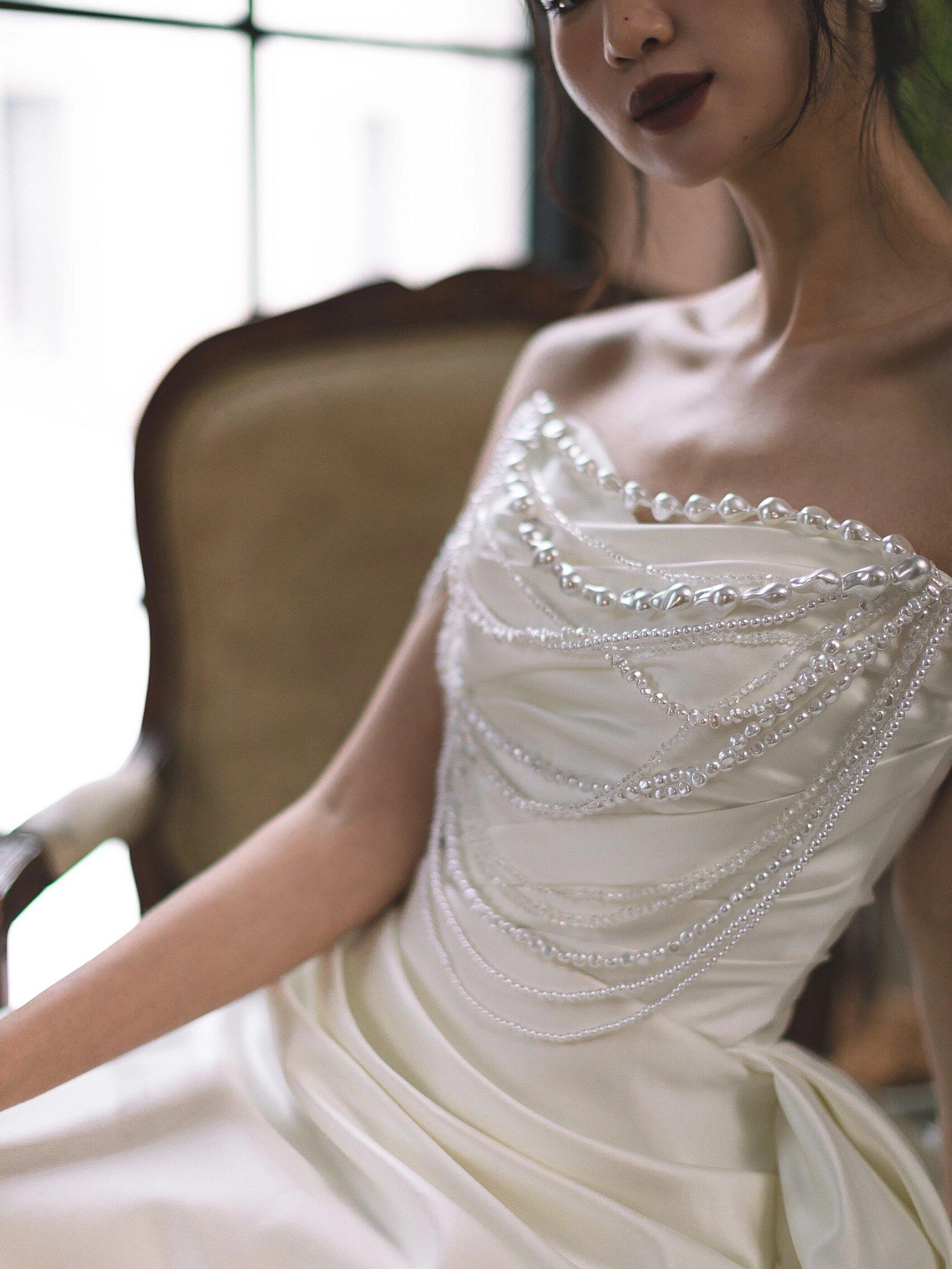 法式缎面珍珠轻纱