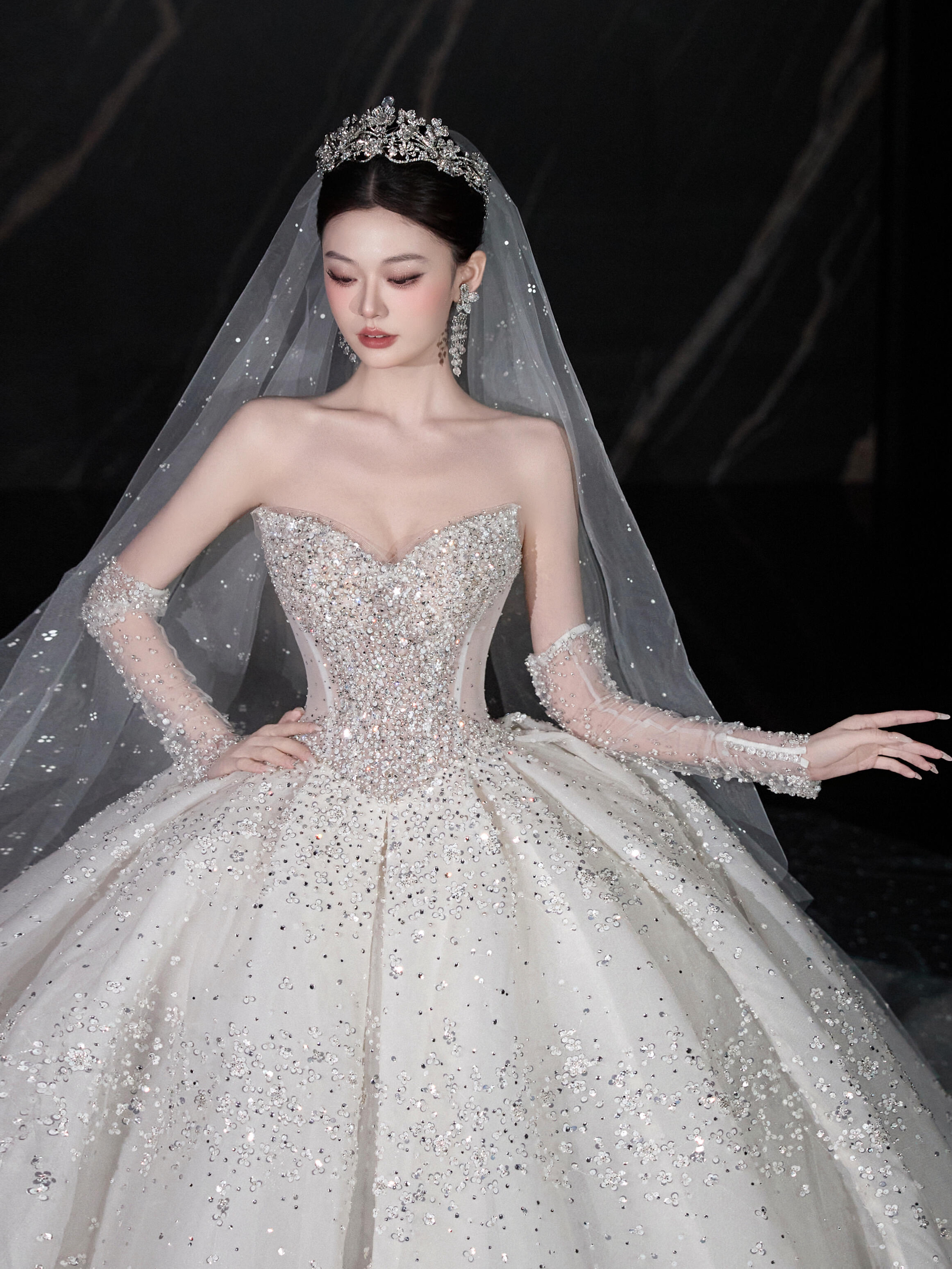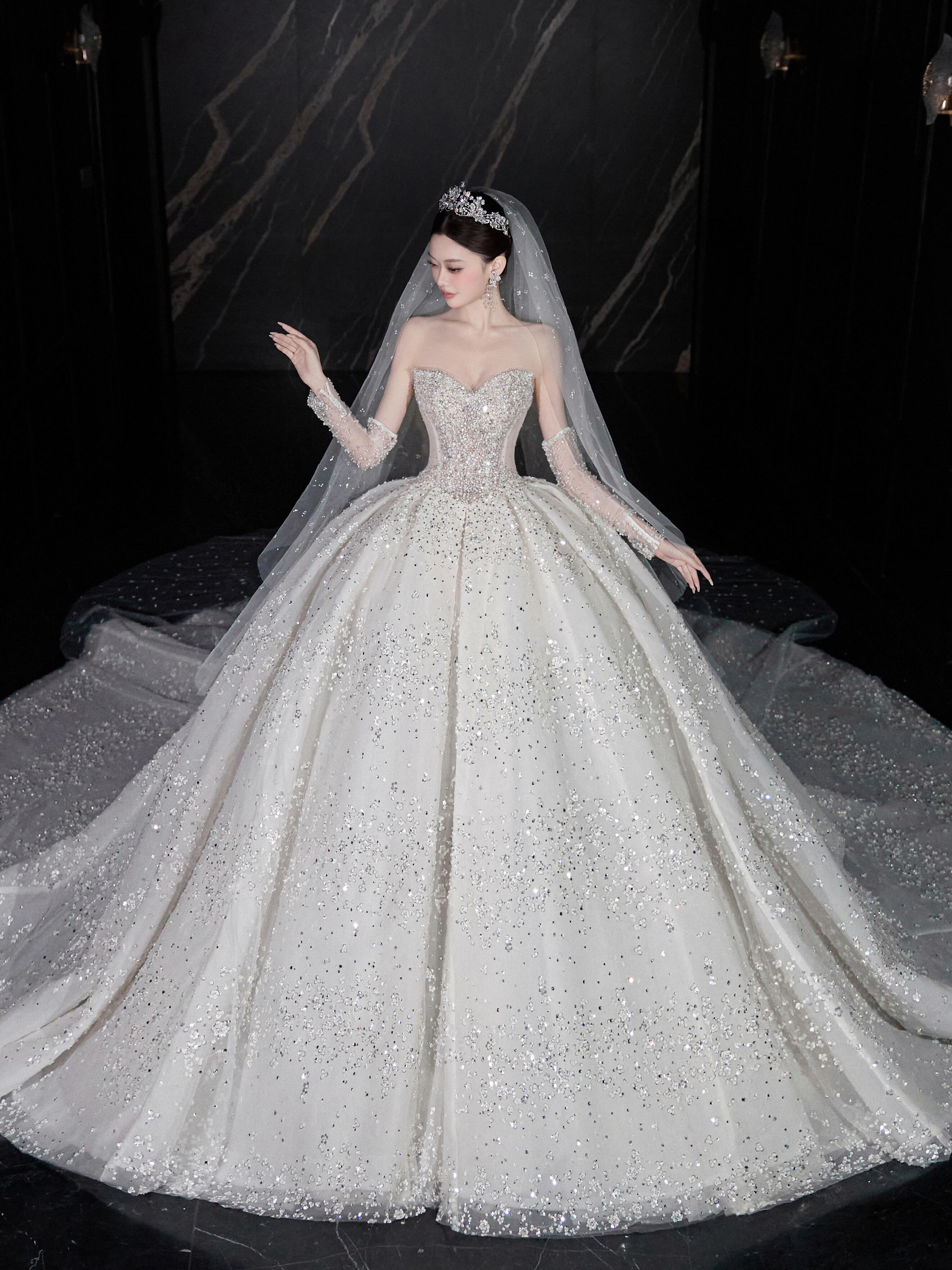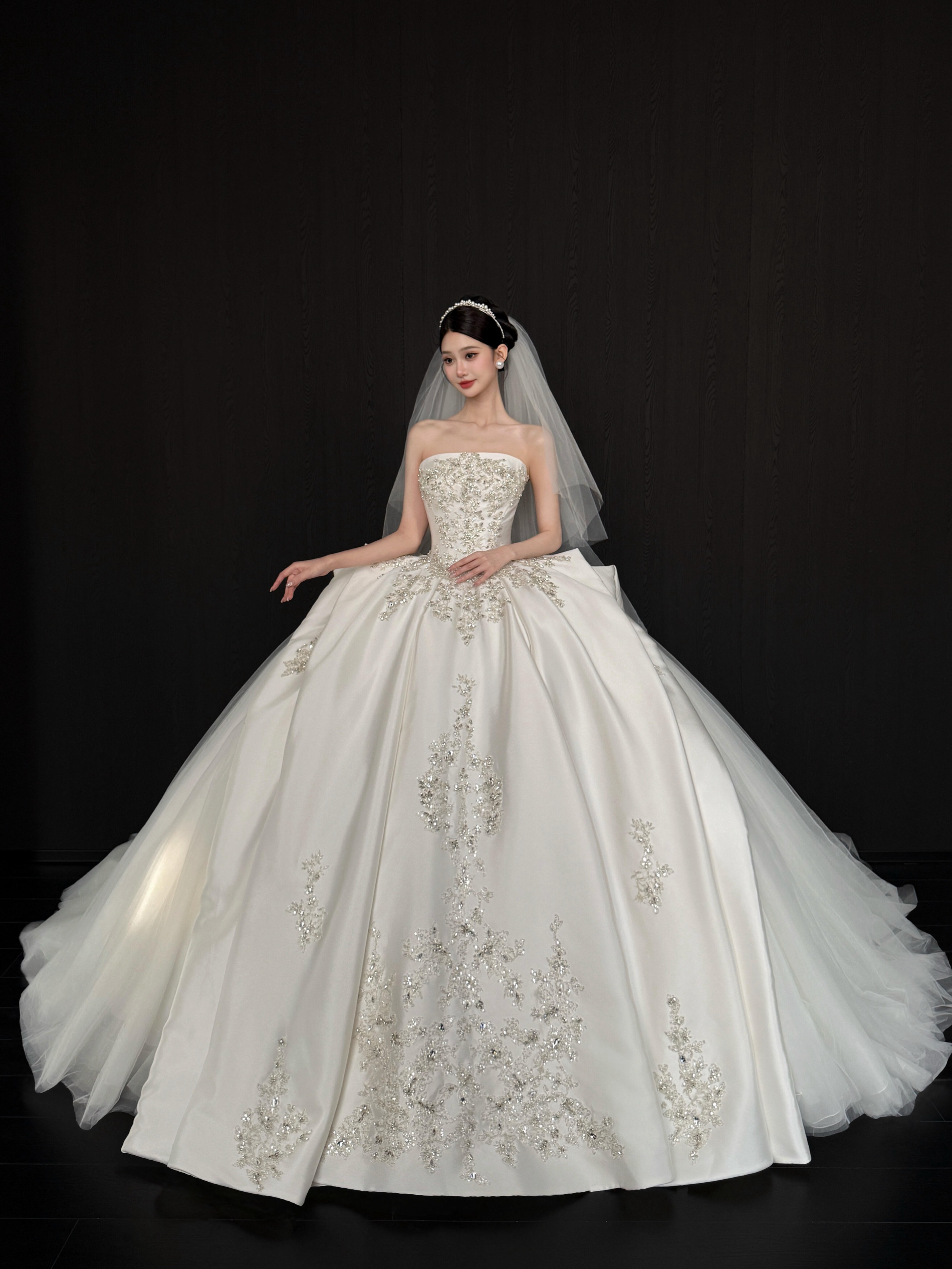 被这件缎面婚纱美到了