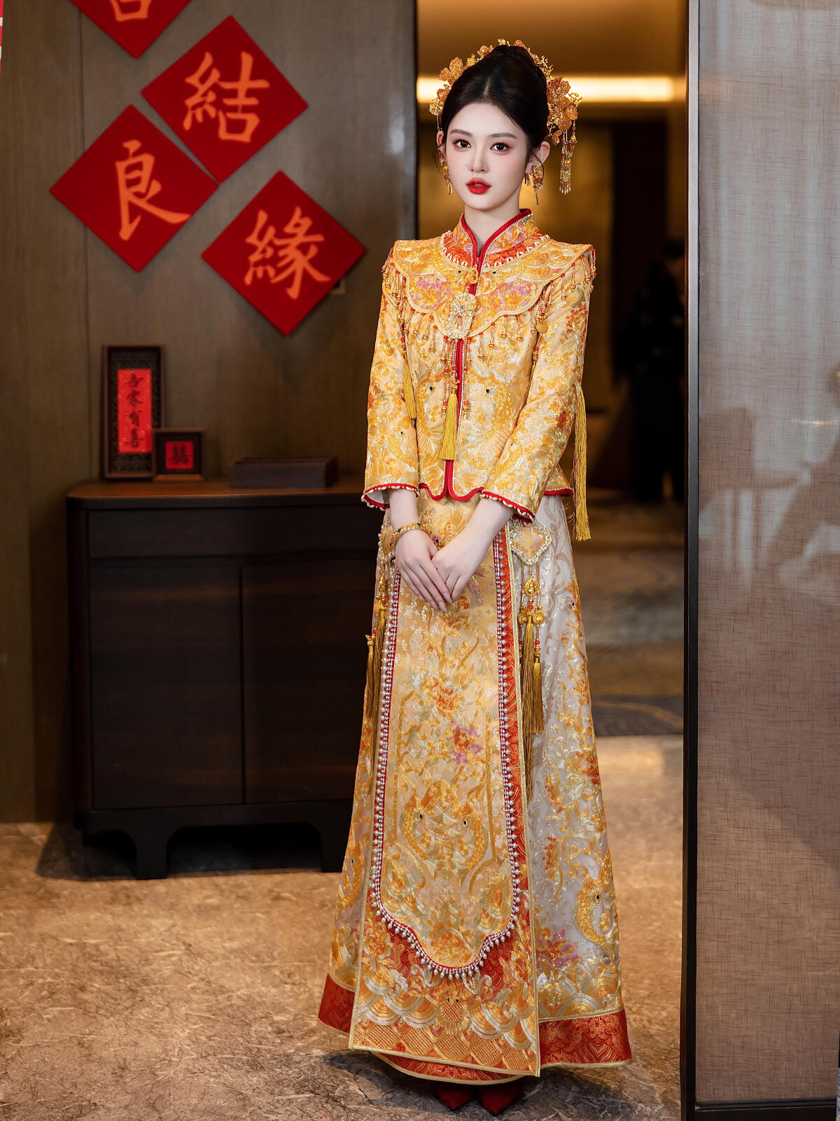 金色刺绣龙凤褂太千金啦
