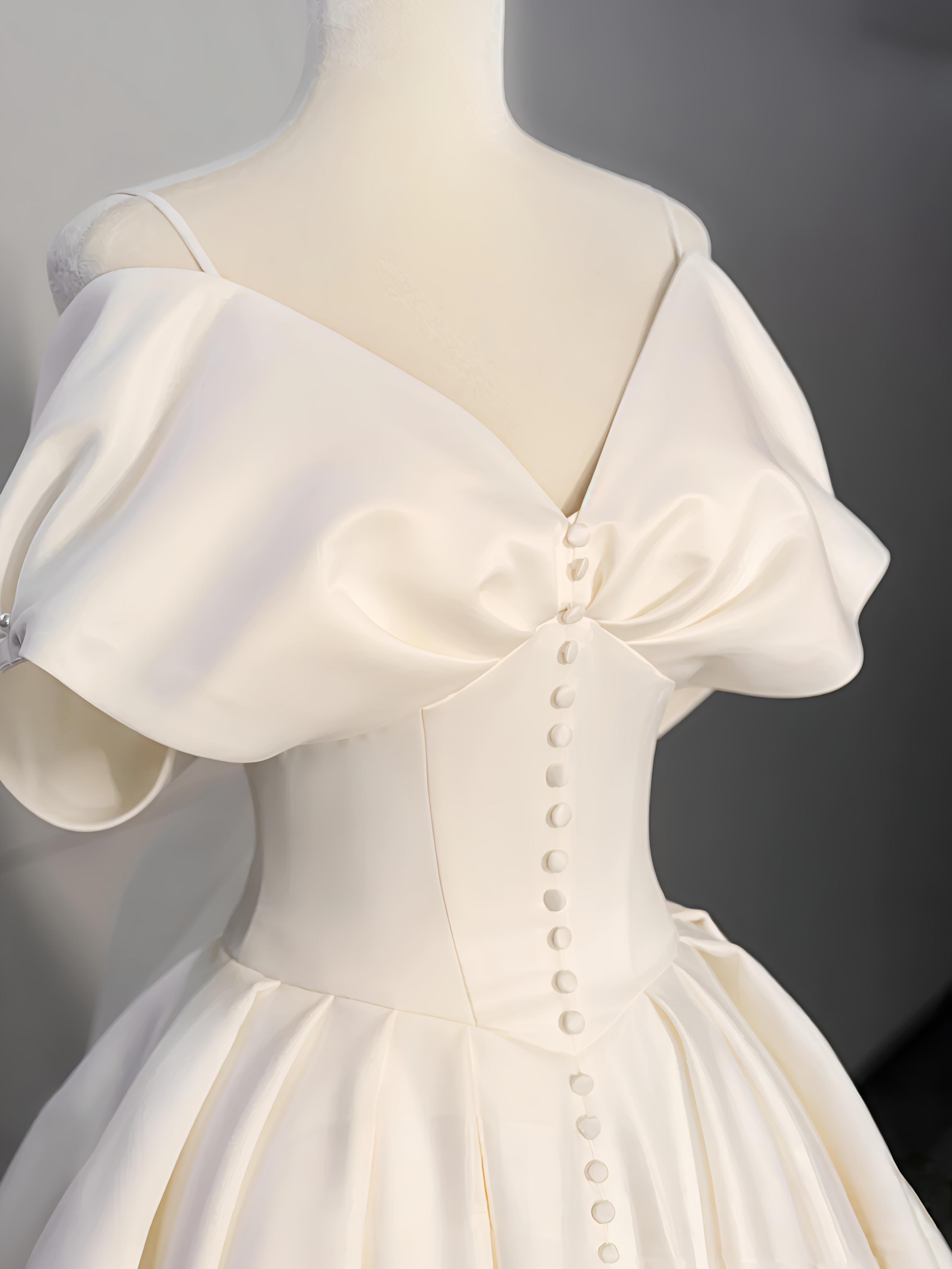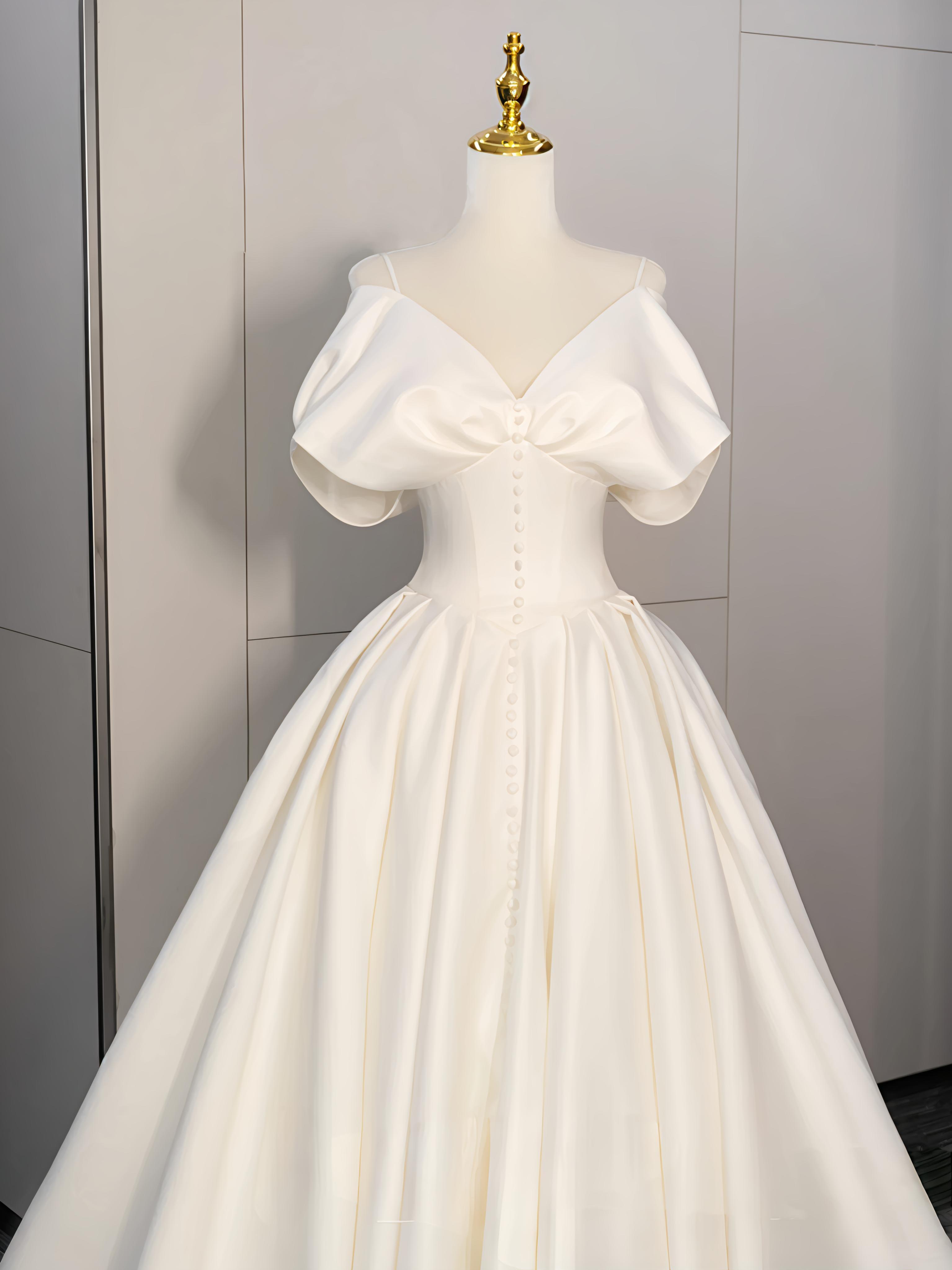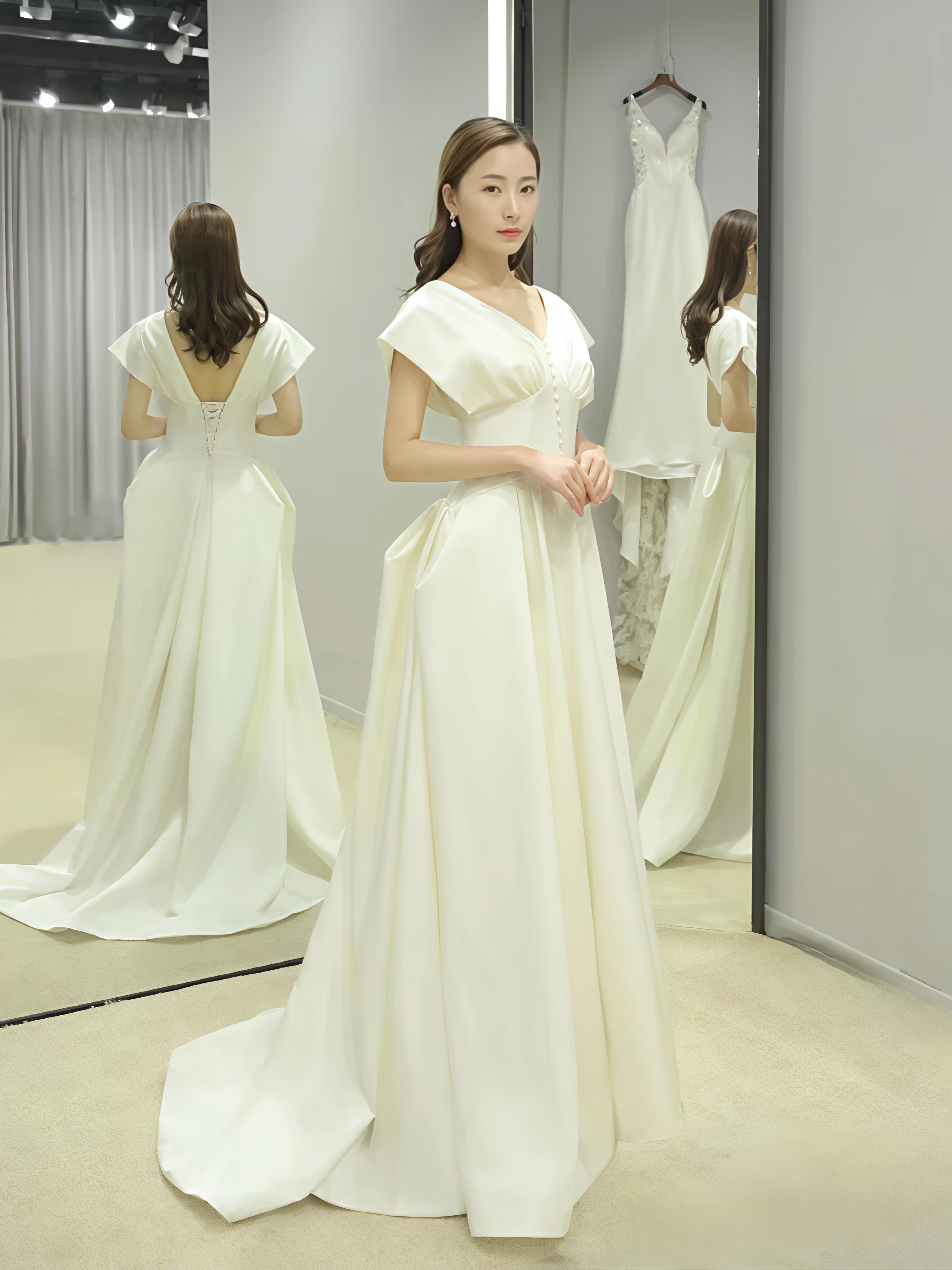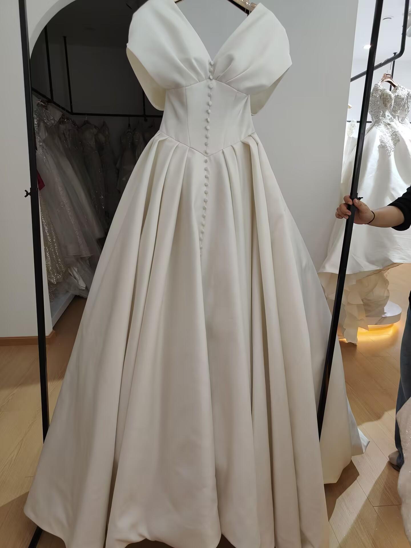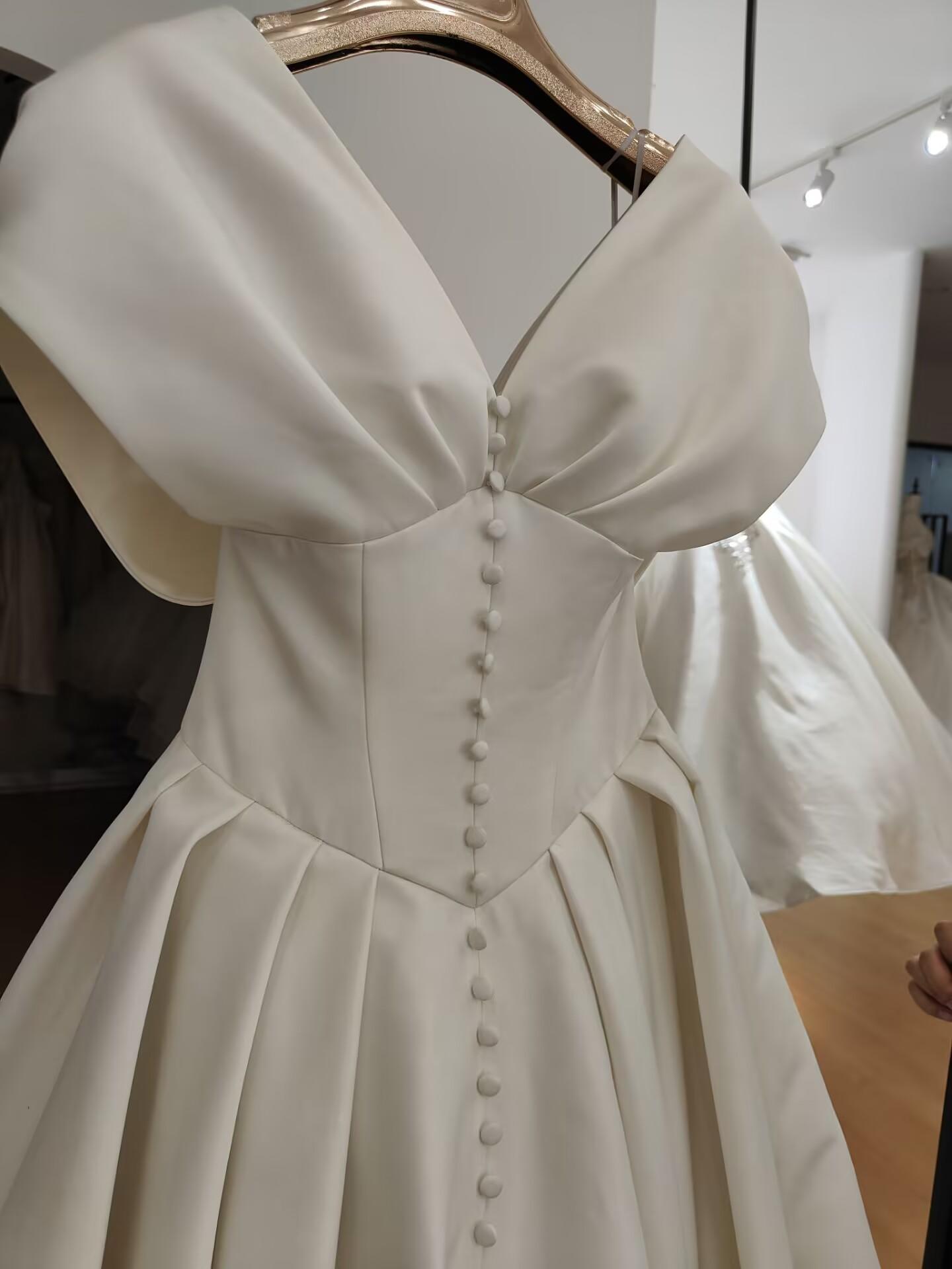 法式缎面手工钻抹胸婚纱