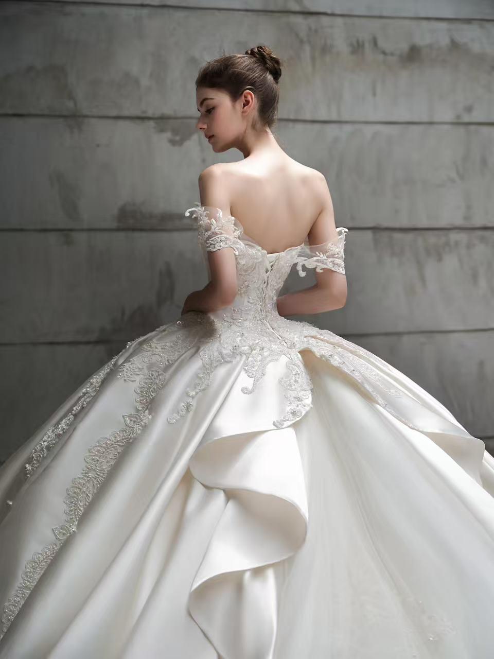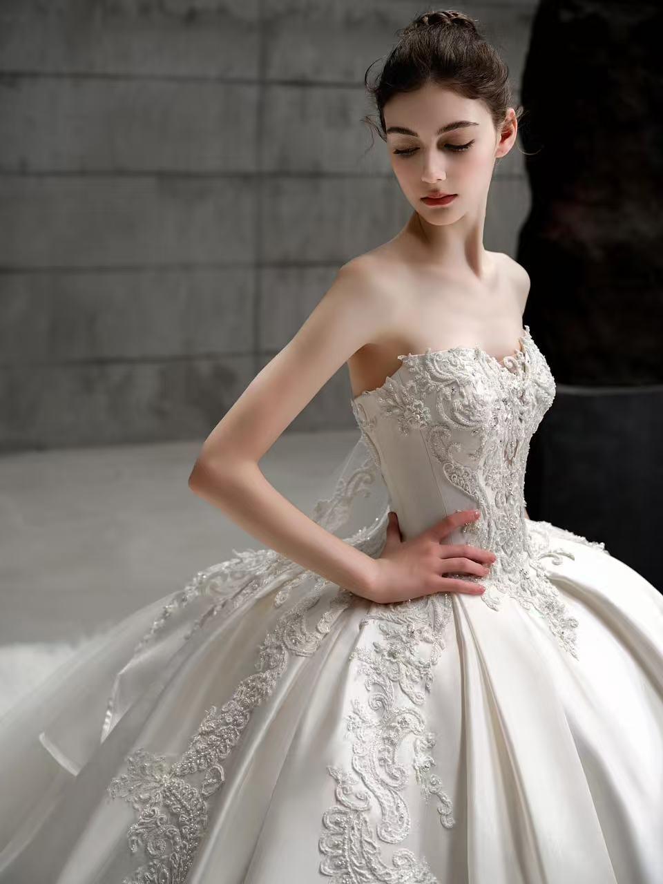 挚爱丨简约齐地缎面主纱
