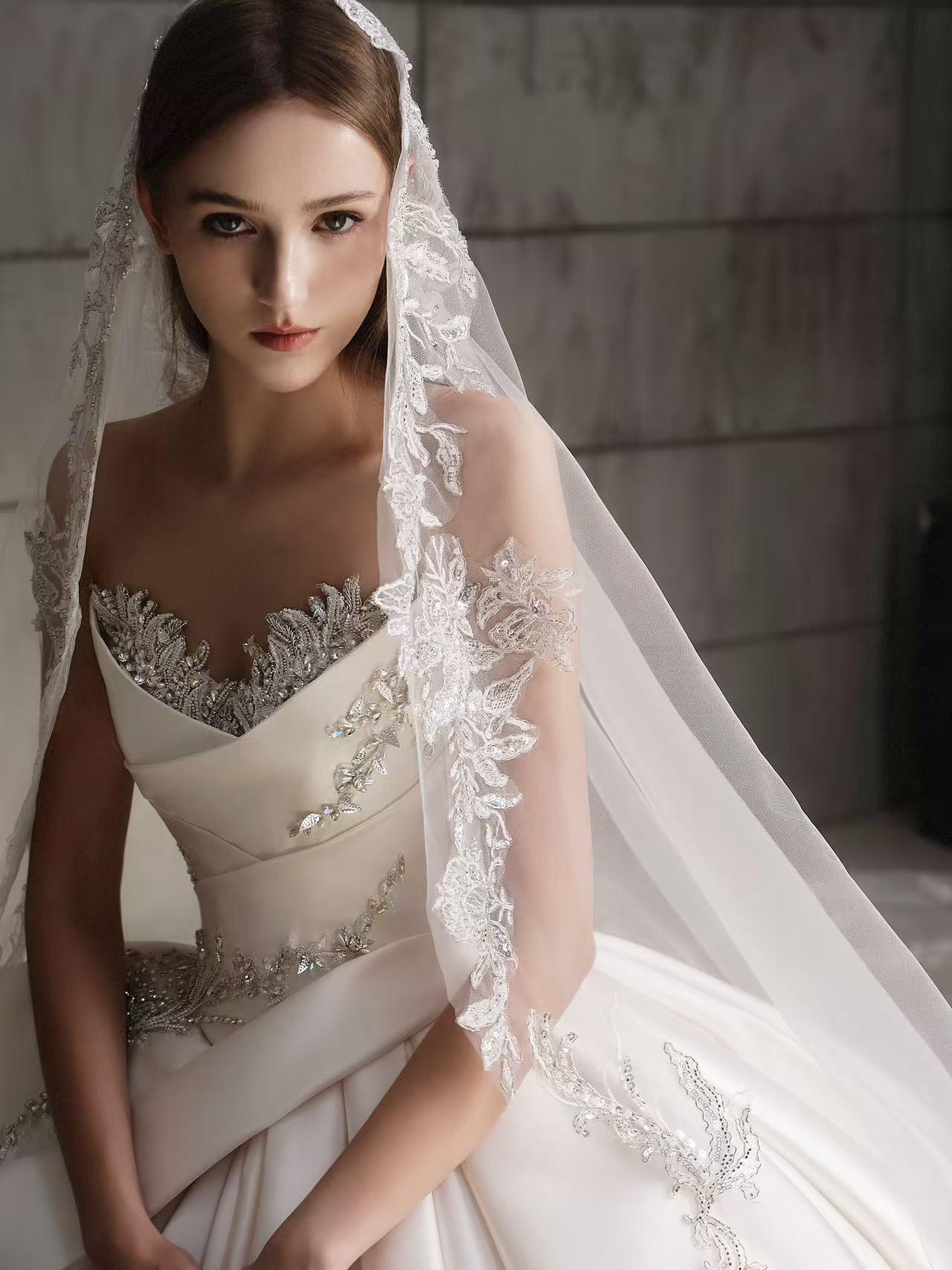 挚爱丨简约齐地缎面主纱