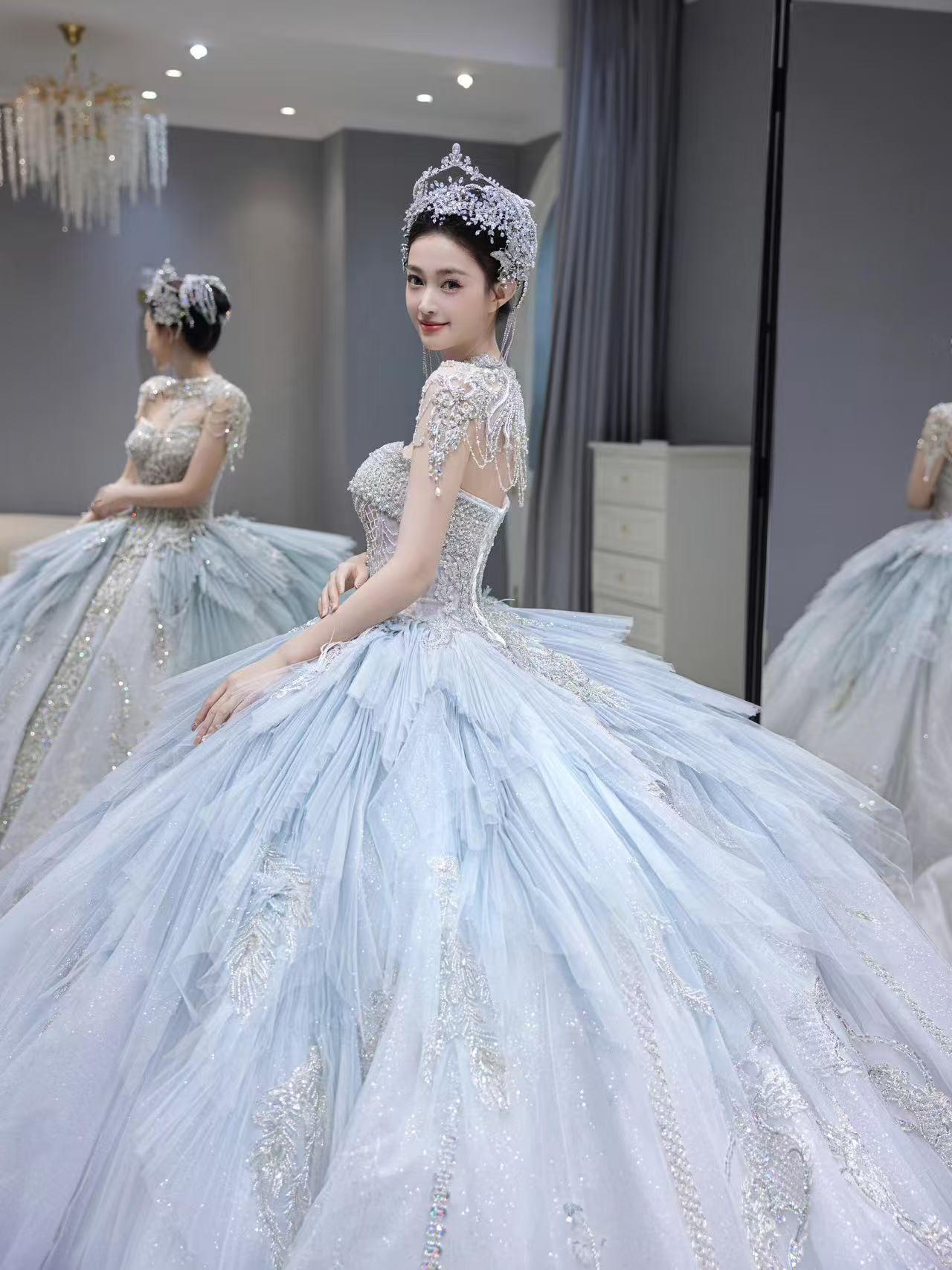 挚爱丨冰蓝色长拖尾公主婚纱