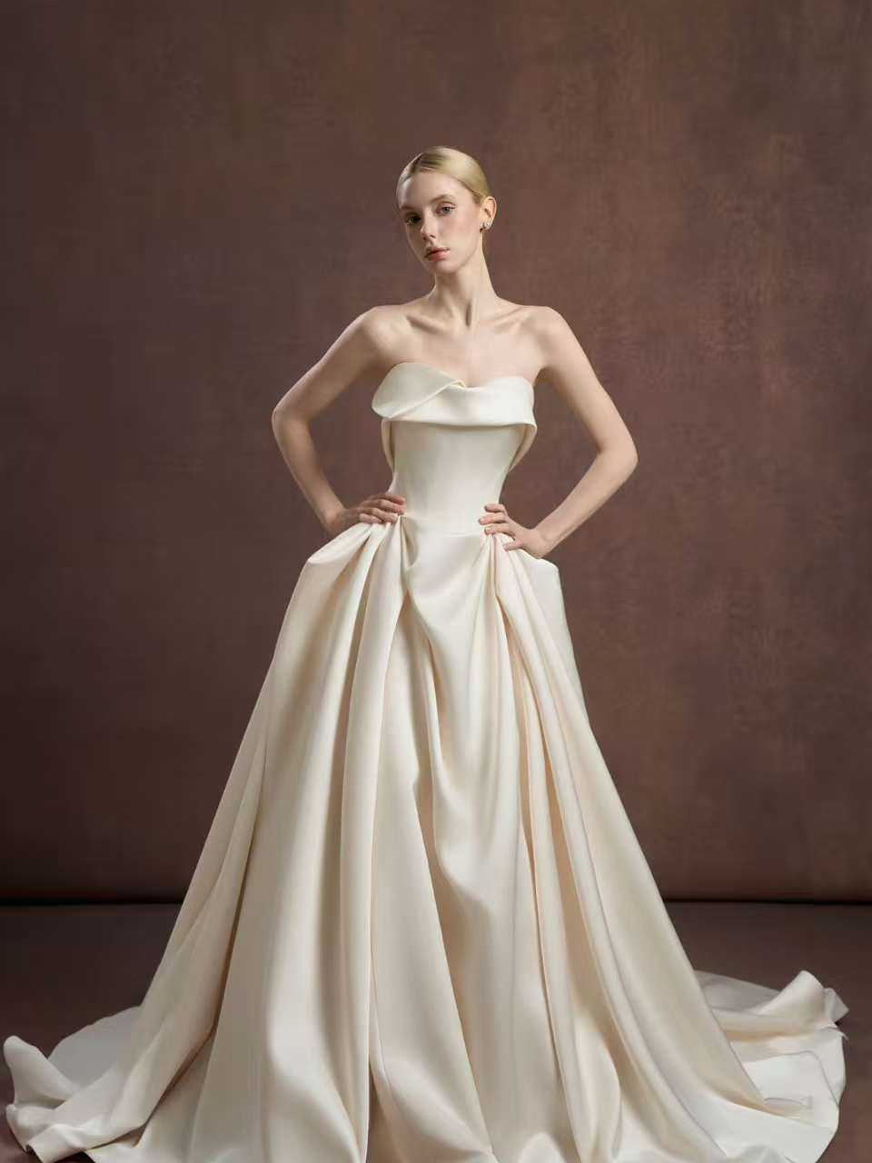 挚爱丨抹胸缎面长拖尾婚纱
