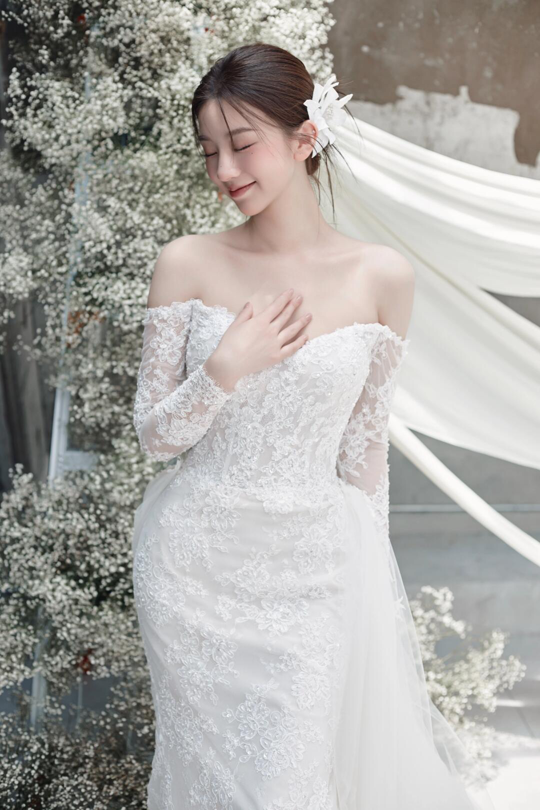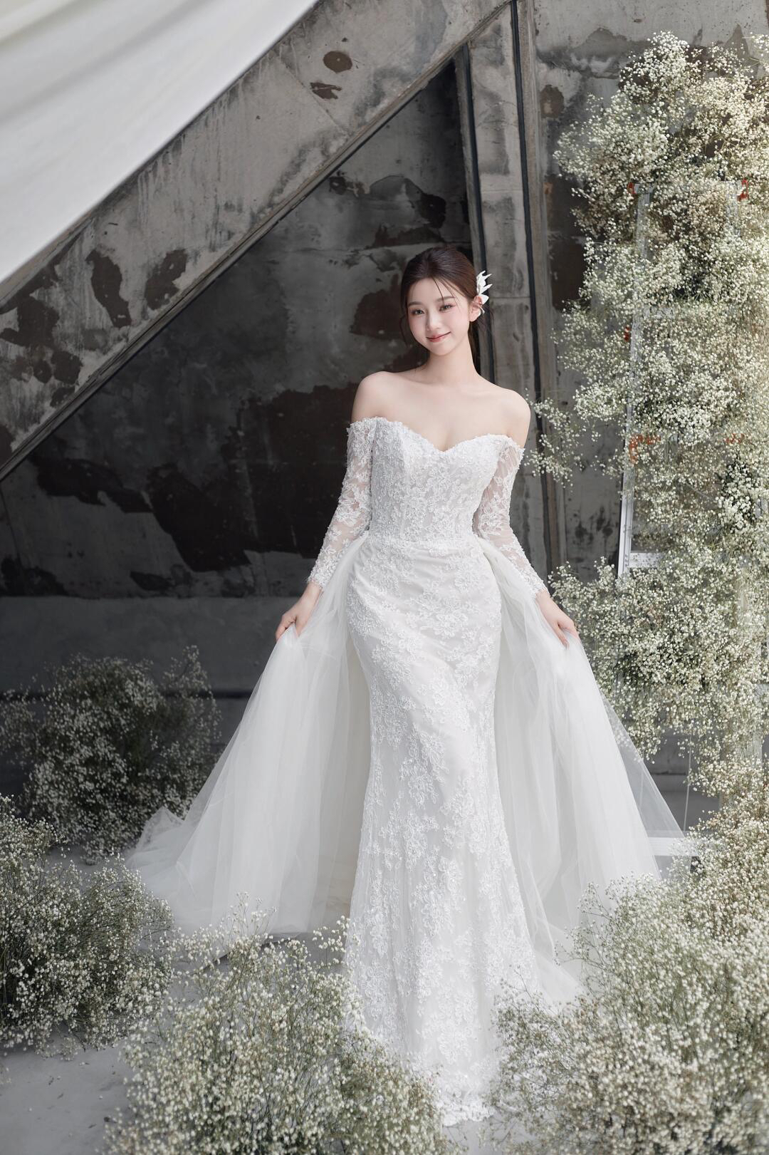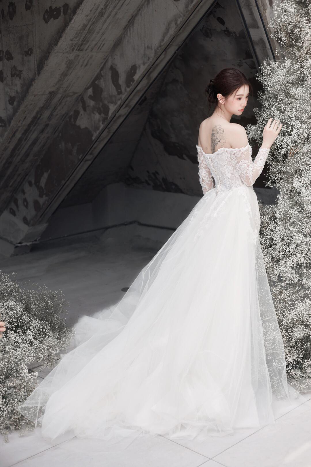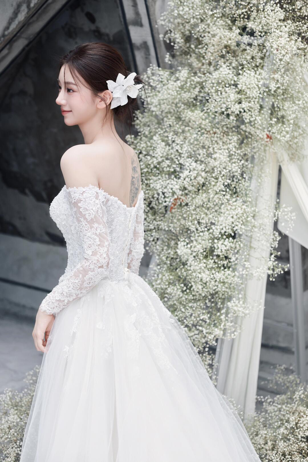 典雅气质一字肩主纱